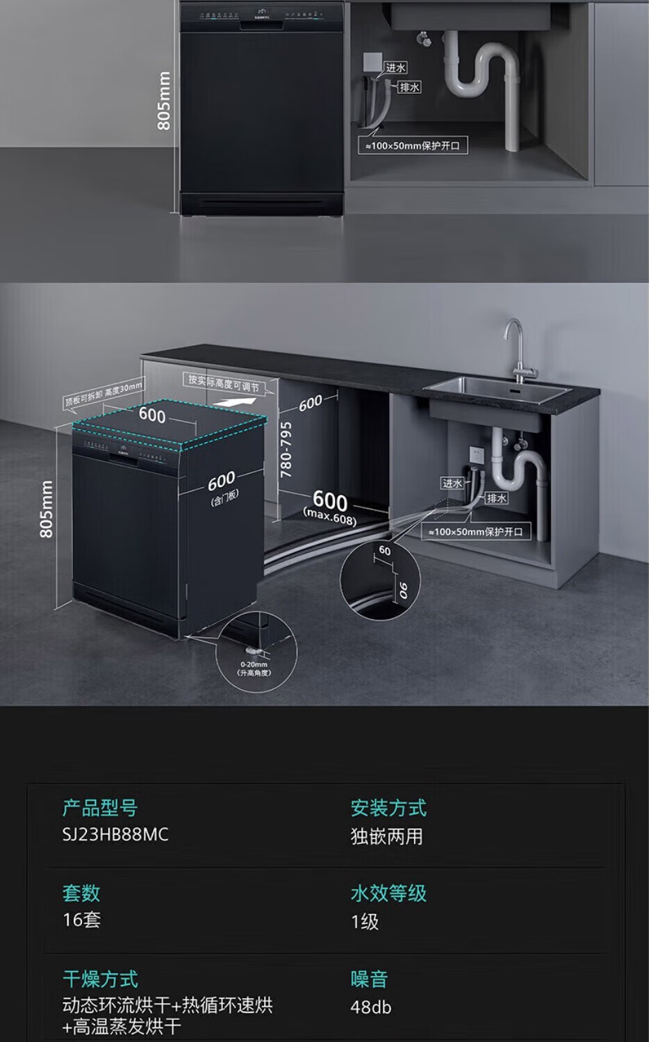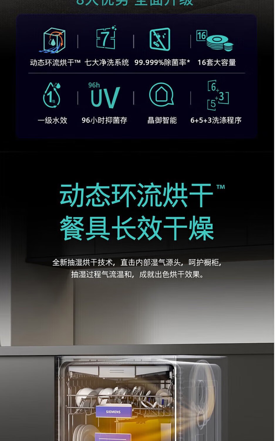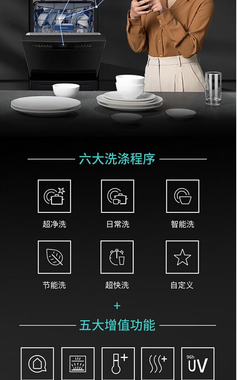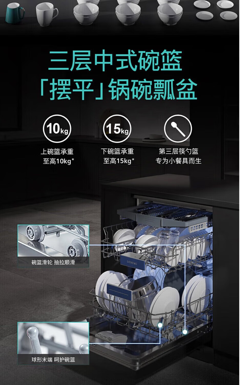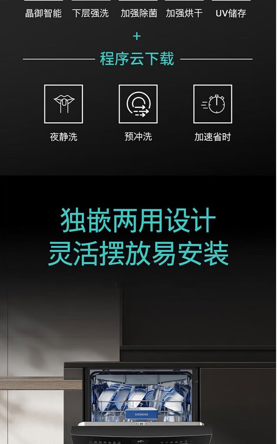 西门子(SIEMENS)【智净魔方】洗碗机灶下15套嵌入式 晶蕾烘干 240小时长效抑菌存 超五星级除菌 SE45ZB25KC