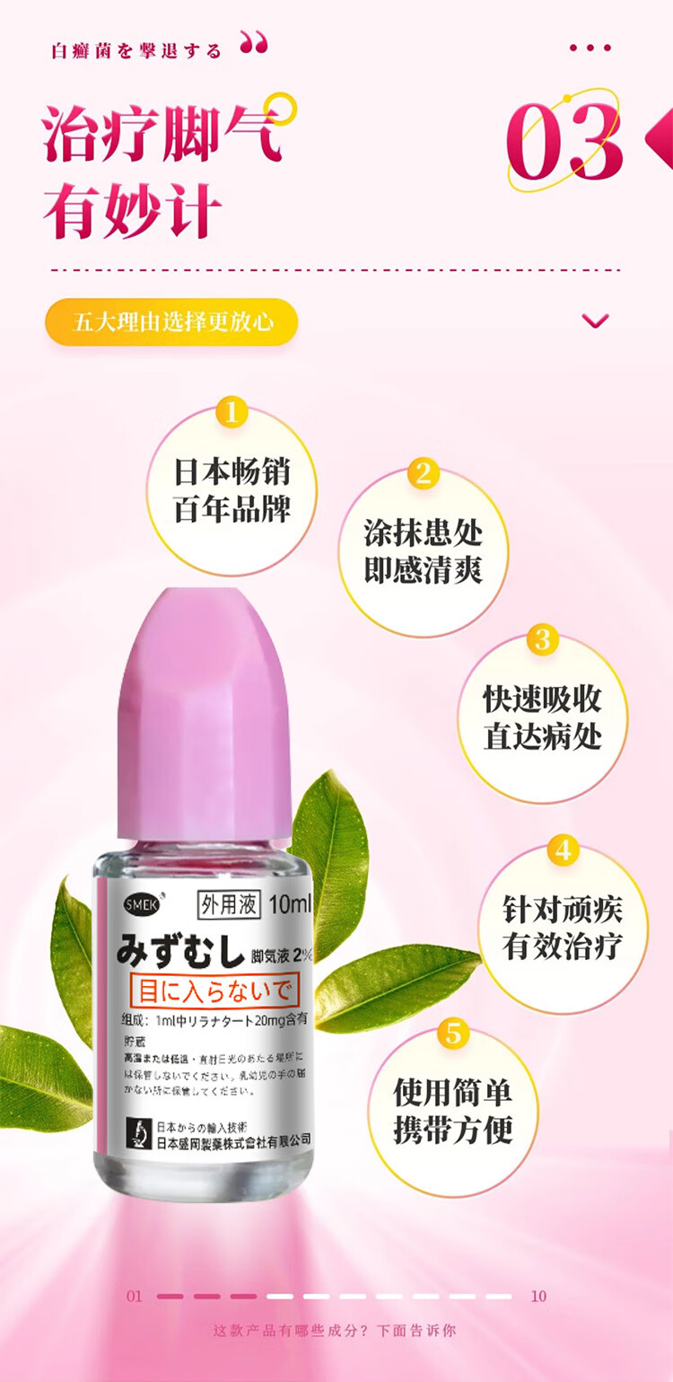 KCHY脚气日本原装进口脚气水多重草本精粹提炼而成小分子易吸收除臭水 1瓶【体验装】 10ml