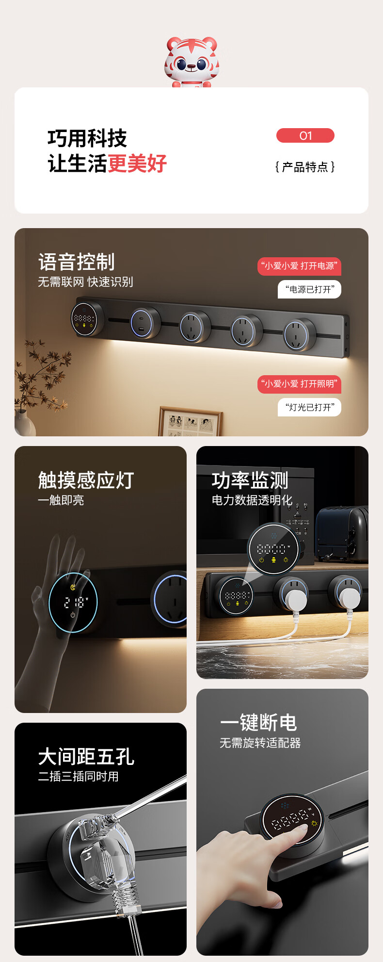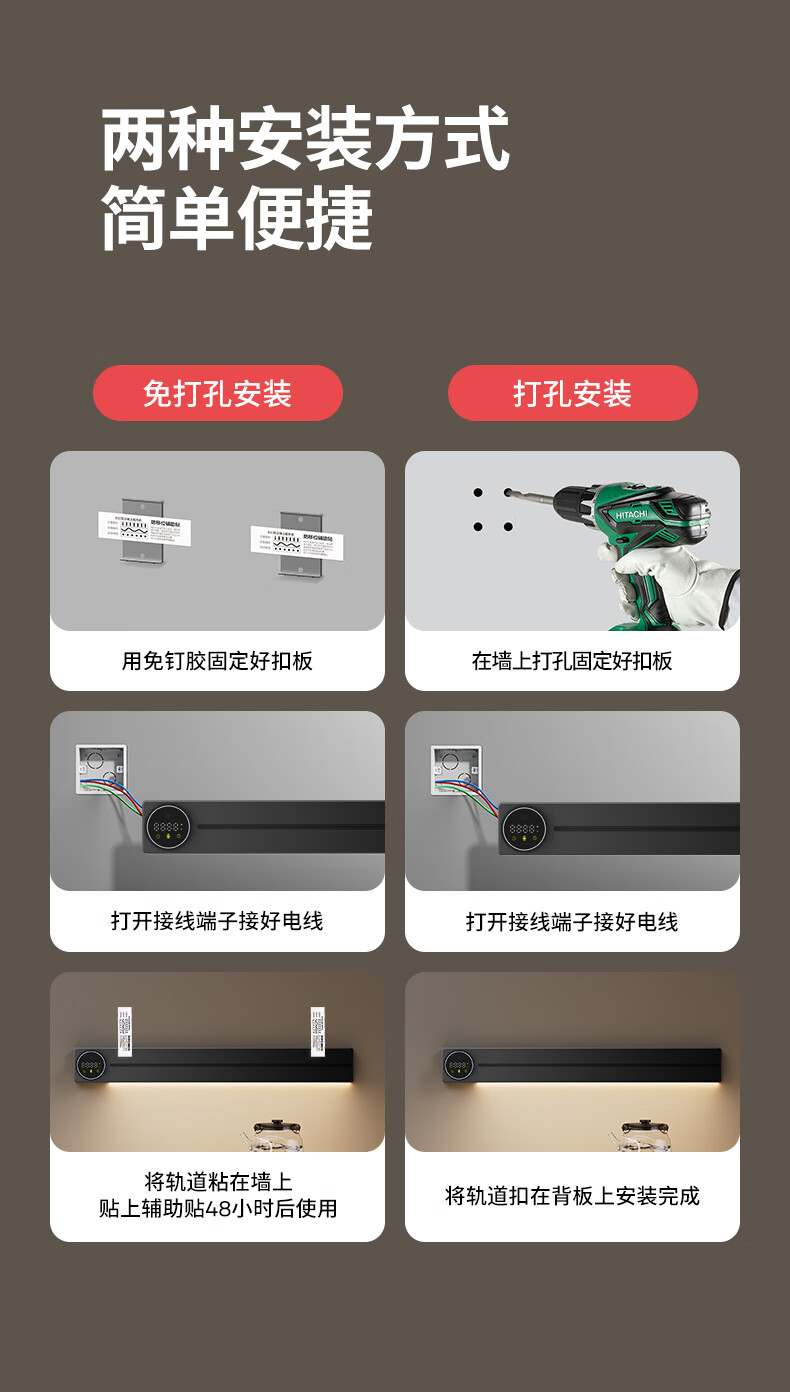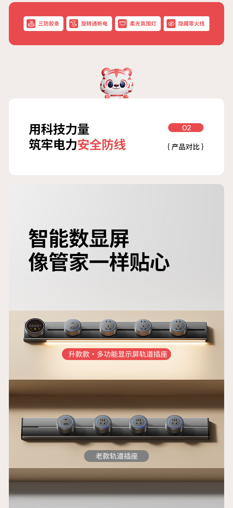 国际电工智能语音数显屏轨道插座带触摸感应灯可移动滑轨家用明装电力导轨 极夜黑 40厘米数显语音款导轨+2个大五孔