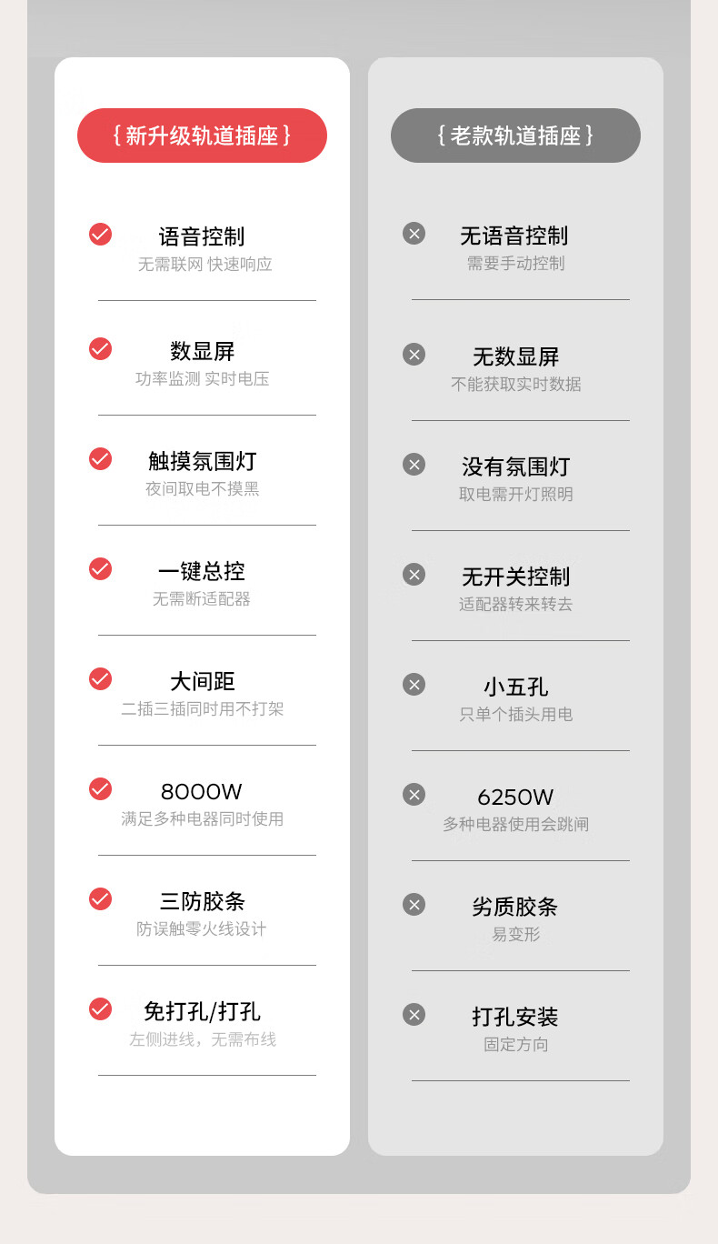 小米部依轨道插座德国品质电工可移动轨道插座明装式电力滑动导轨电源客厅 灰色60cm轨道(五孔-带灯*4)