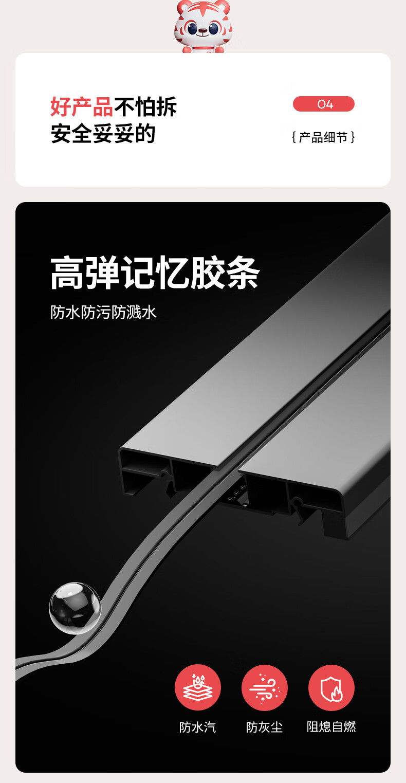 小米有品轨道插座德国品质免打孔厨房餐边柜客厅可移动电力滑盖插排插线板 黑色40公分轨道+4个五孔
