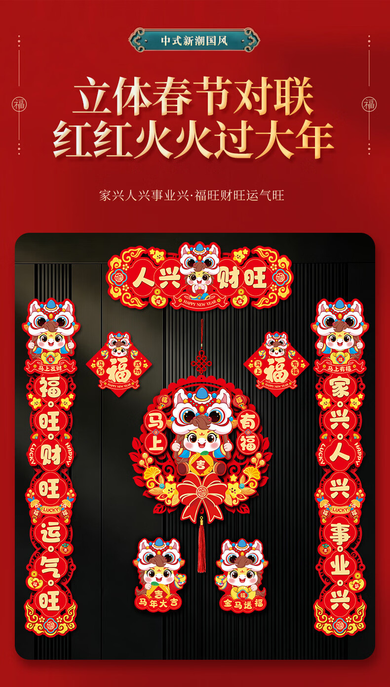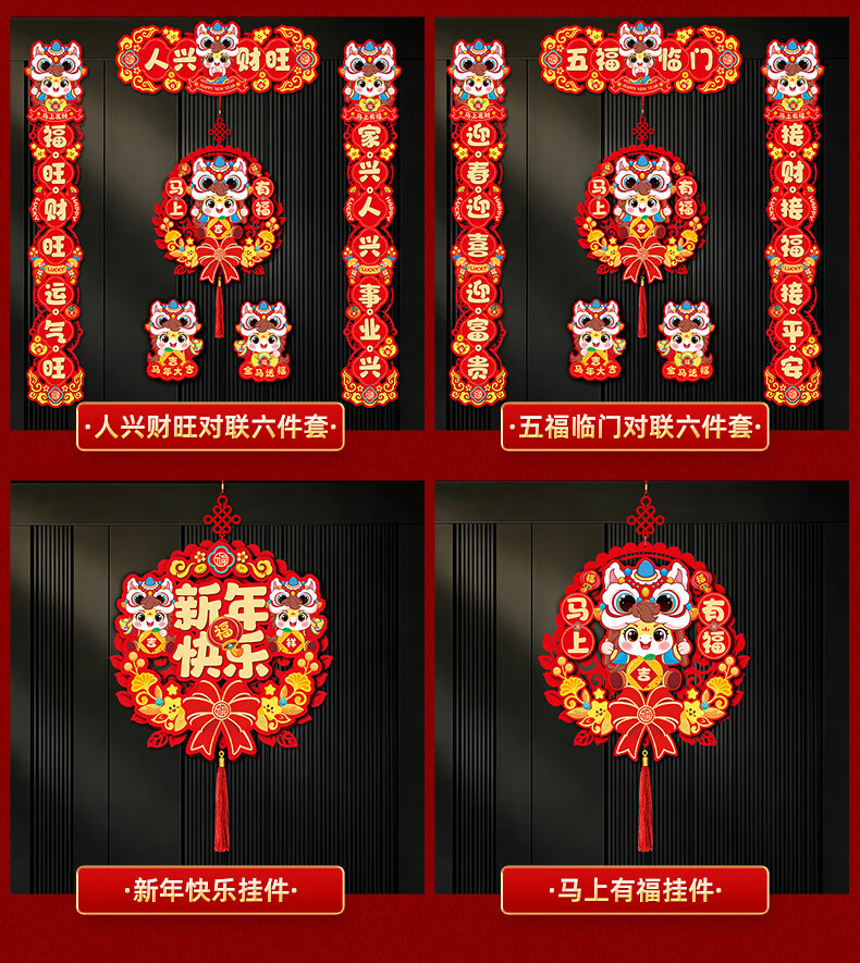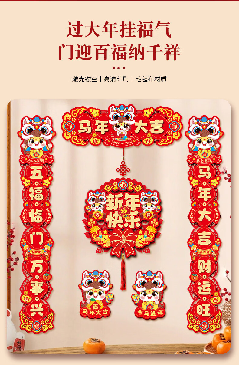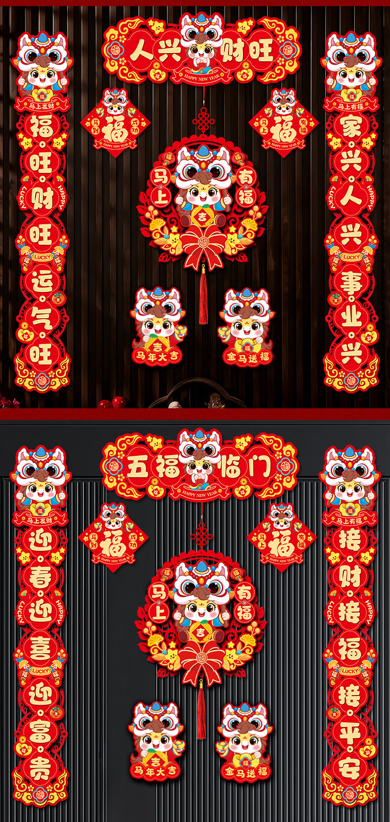 【京东电器专享】2026新款磁吸对联卡通新年马年春联春节大门福字门贴过年挂件装饰 八方来财对联大套装