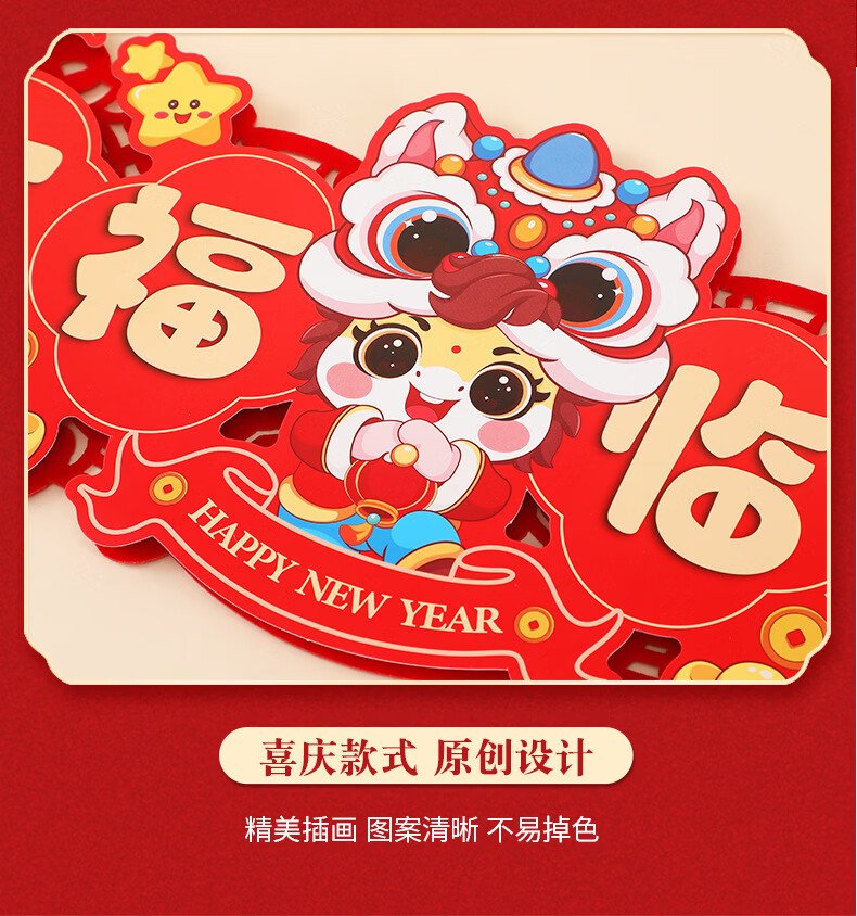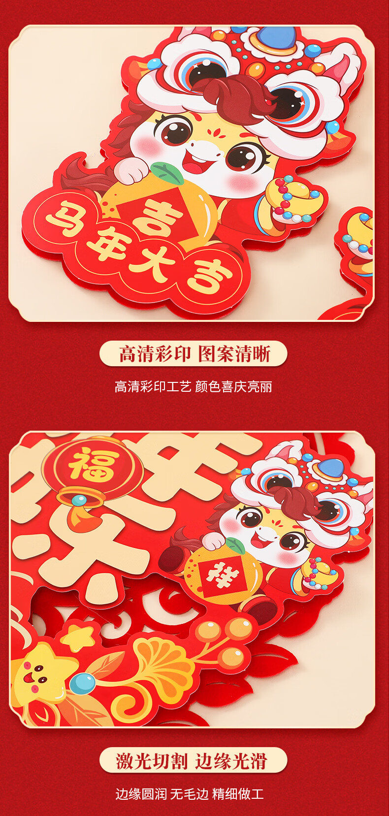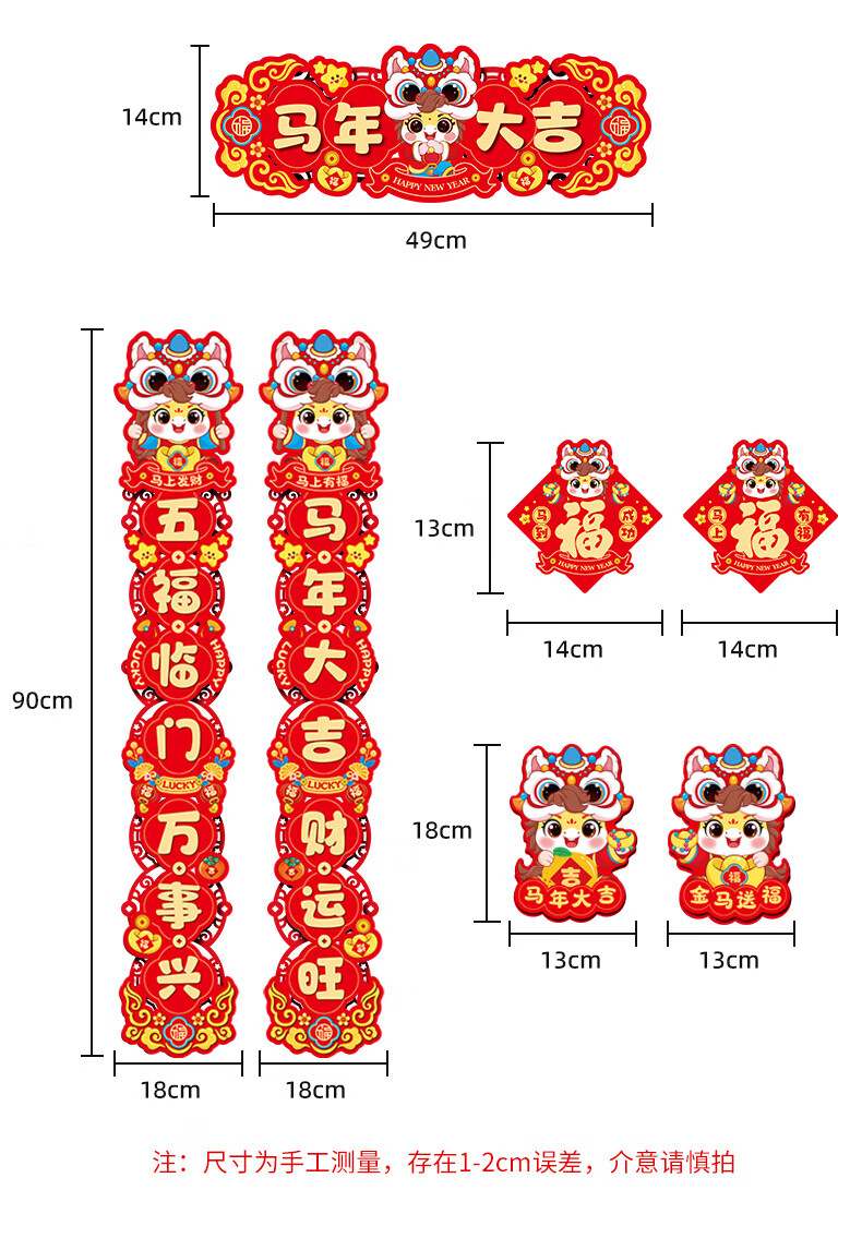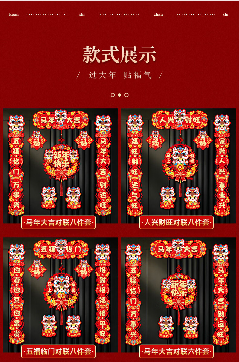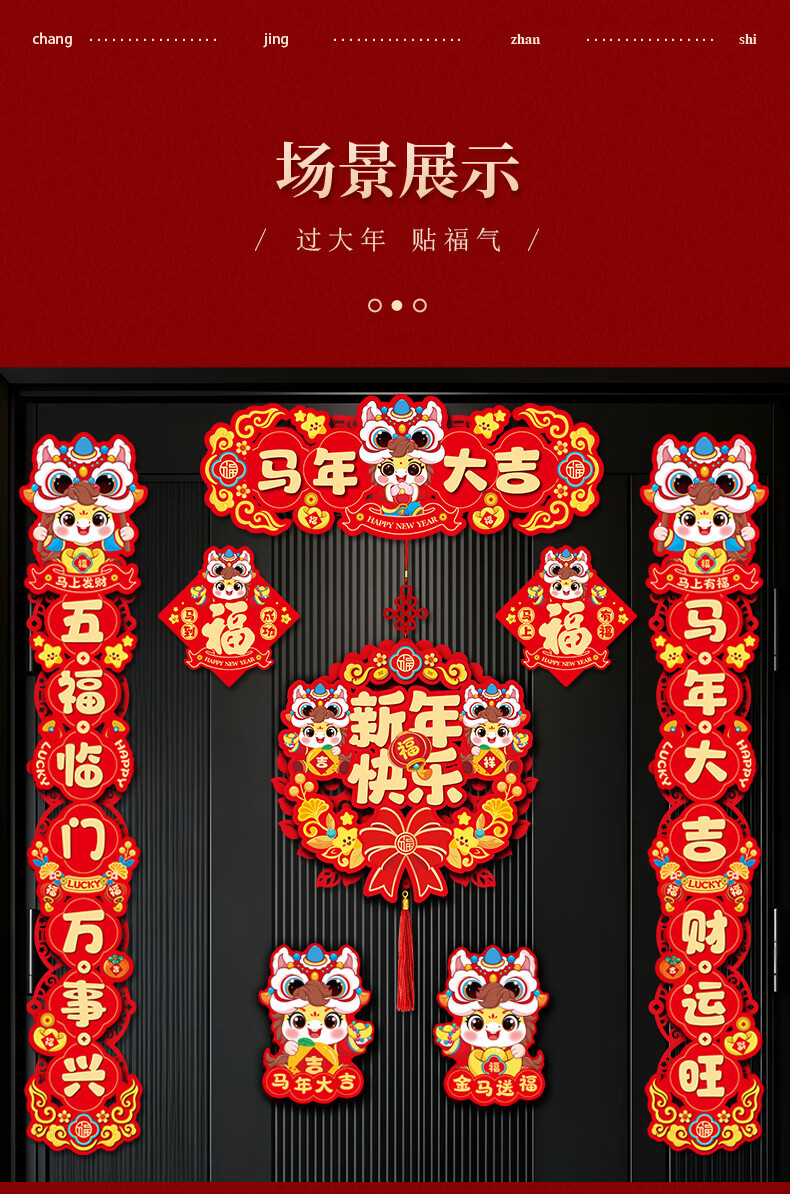 【京东电器专享】2026新款磁吸对联卡通新年马年春联春节大门福字门贴过年挂件装饰 八方来财对联大套装