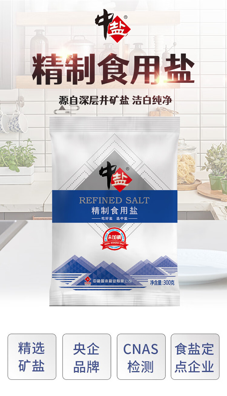 中盐精制食用盐未加碘300g*9袋无碘盐家庭食盐井矿盐盐巴咸盐整箱批发 精制食用盐(未加碘)300g*9袋
