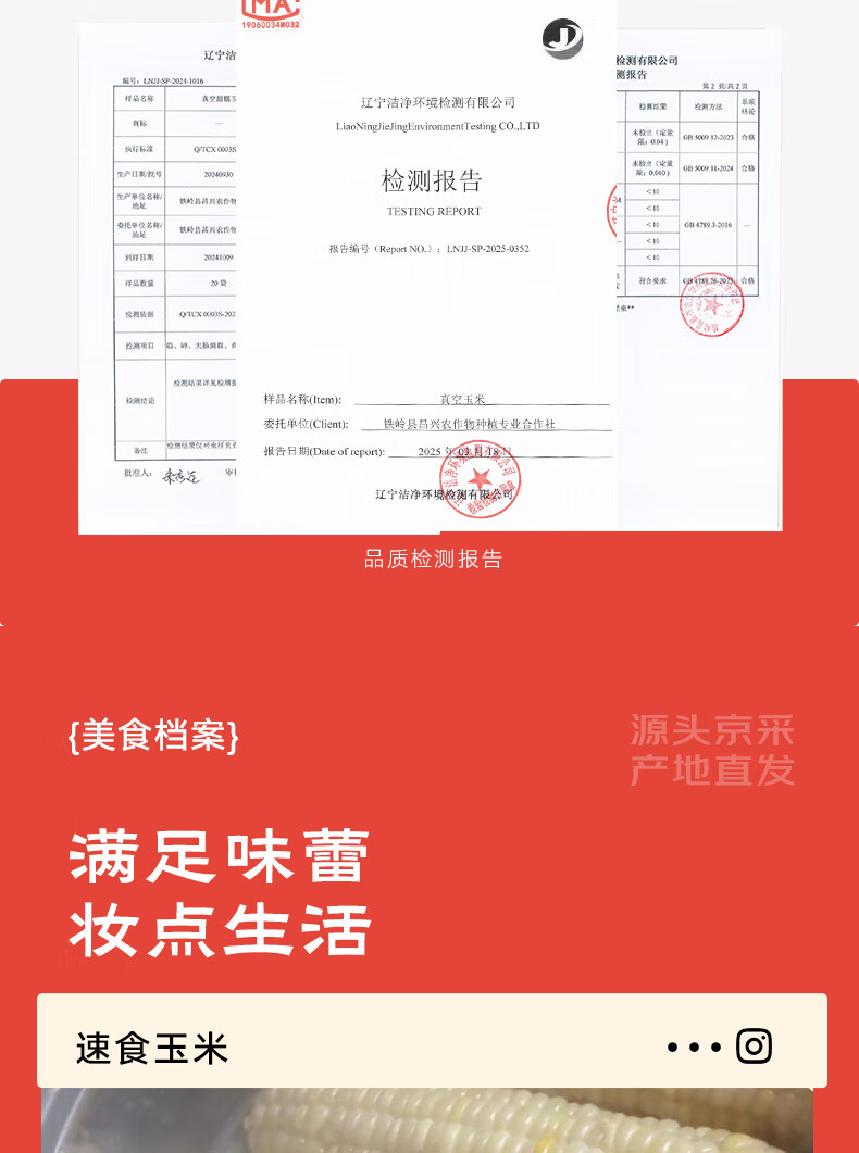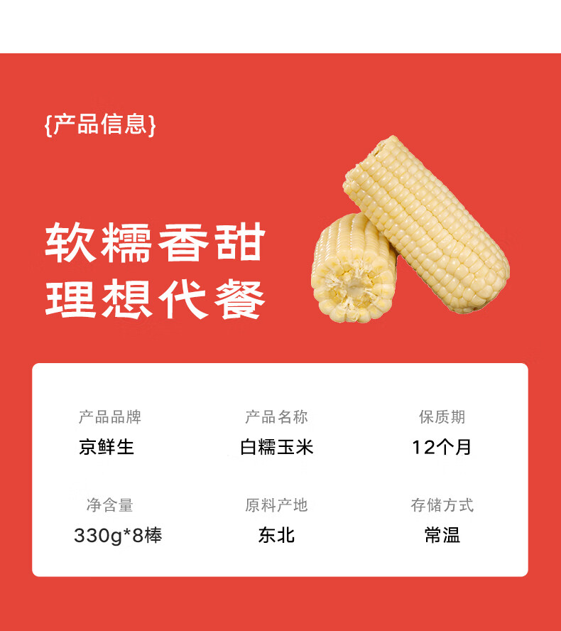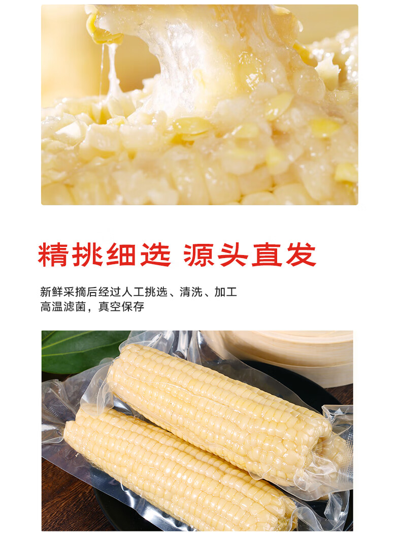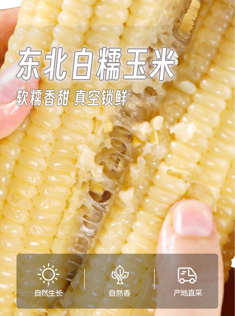 京鲜生东北白糯玉米330g*8根 甜黏玉米低脂早餐代餐粗粮真空装 源头直发
