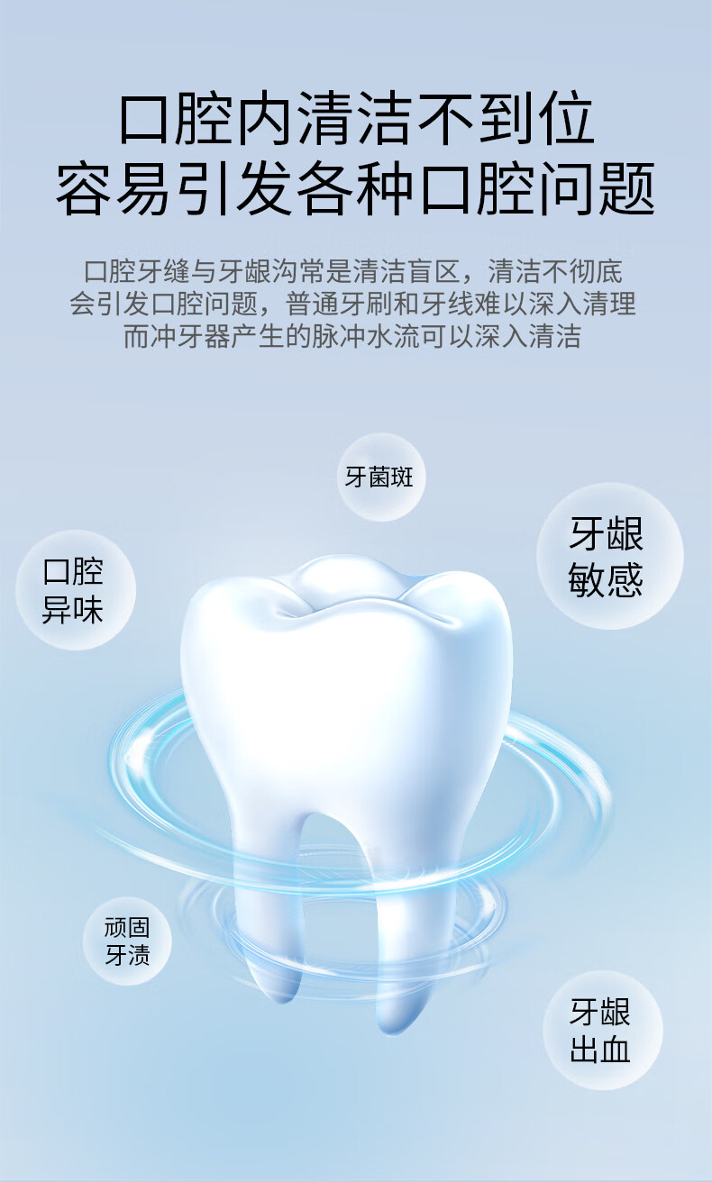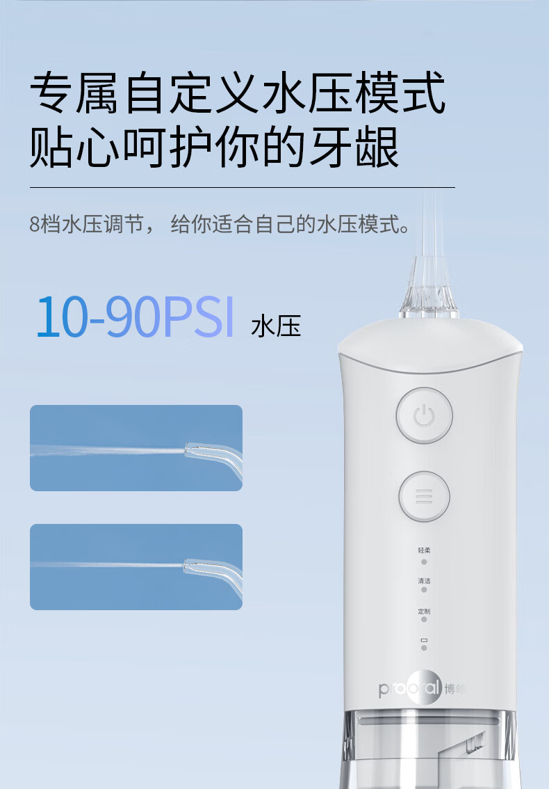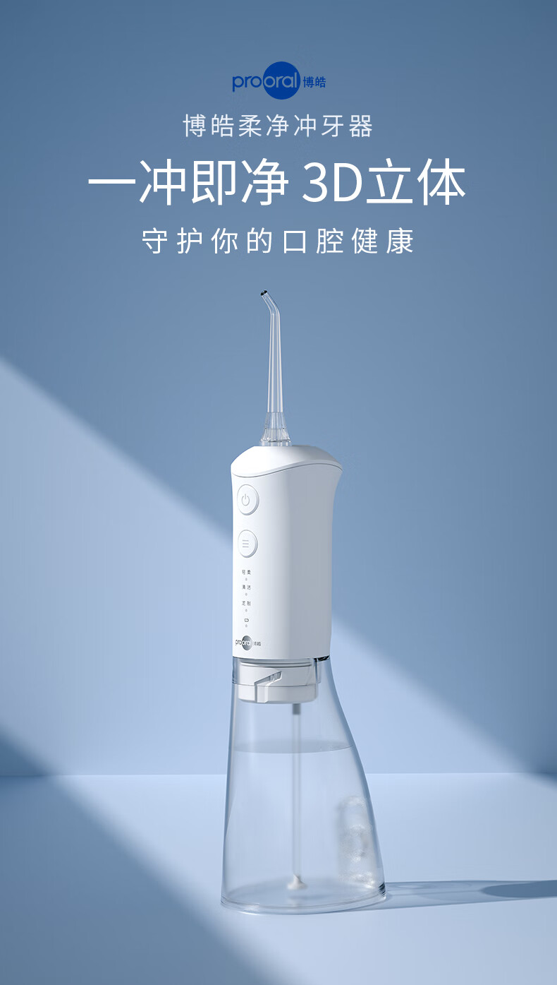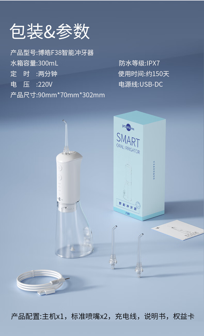 博皓(prooral)电动冲牙器便携式洗牙器家用牙齿冲洗器水牙线正畸专用洁牙器除牙垢清洁器 送父母情侣礼物 F38 白色-标配2支喷嘴