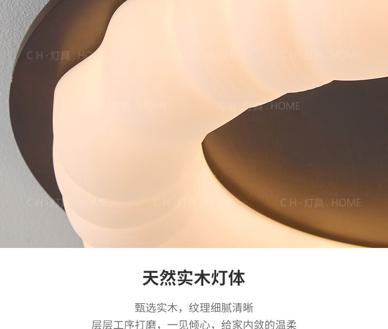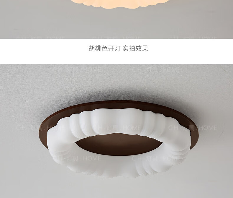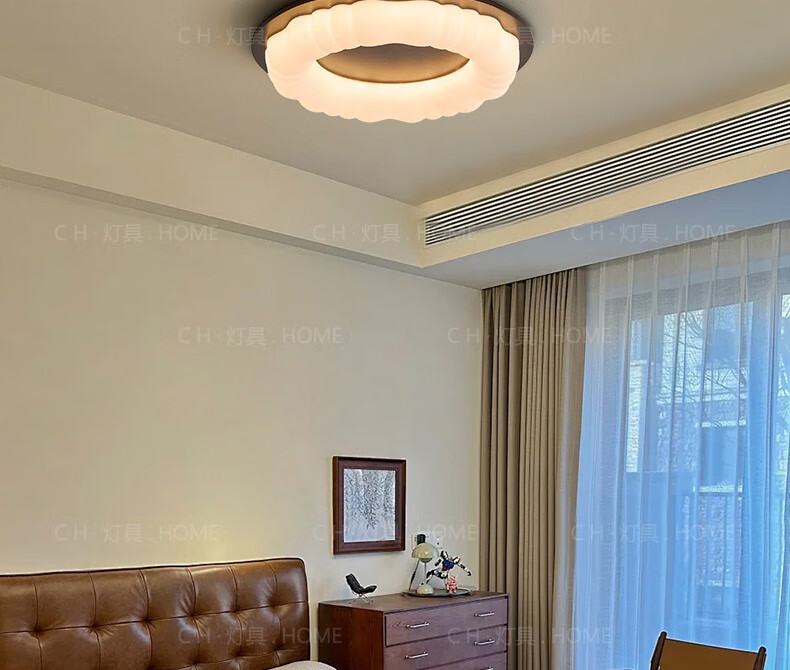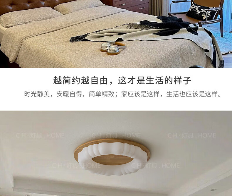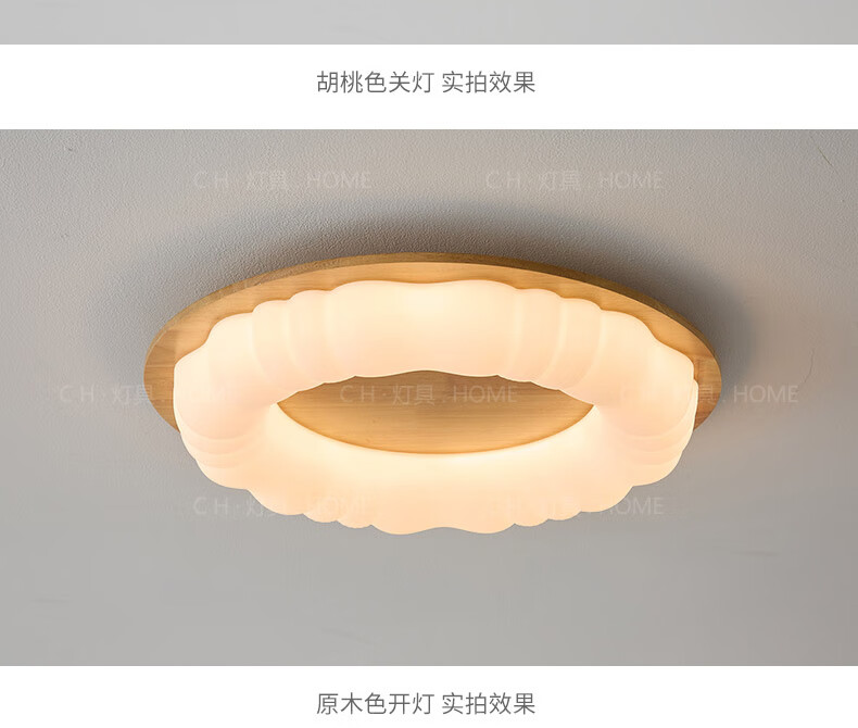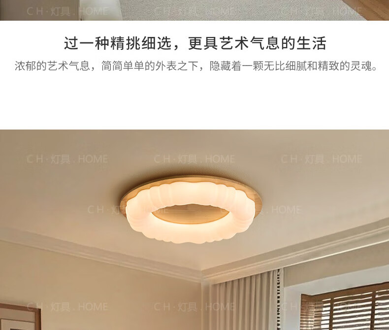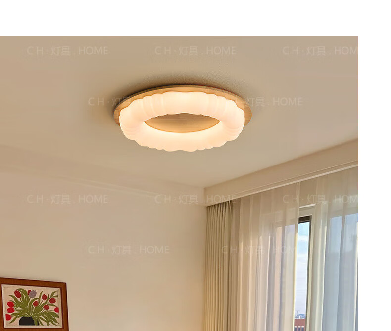 CH奶油风卧室灯日式原木风吸顶灯法式中古复古儿童房护眼主卧书房灯 全光谱【原木色】55CM+三色光