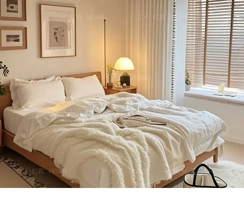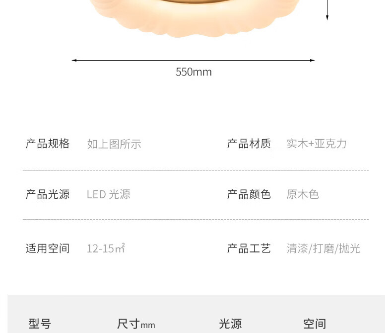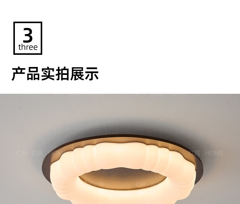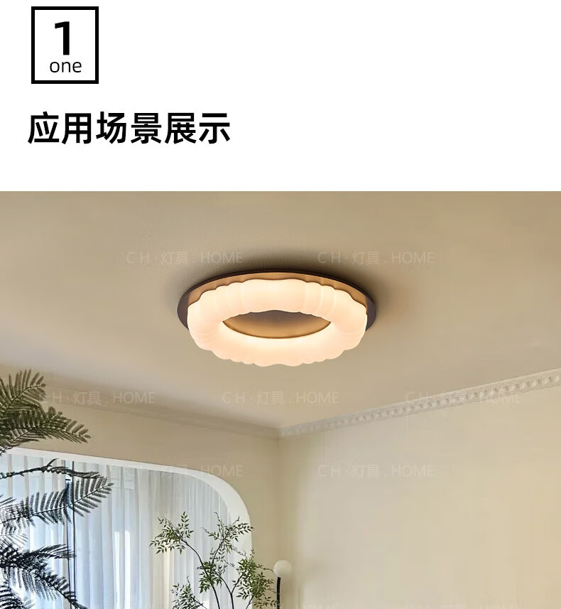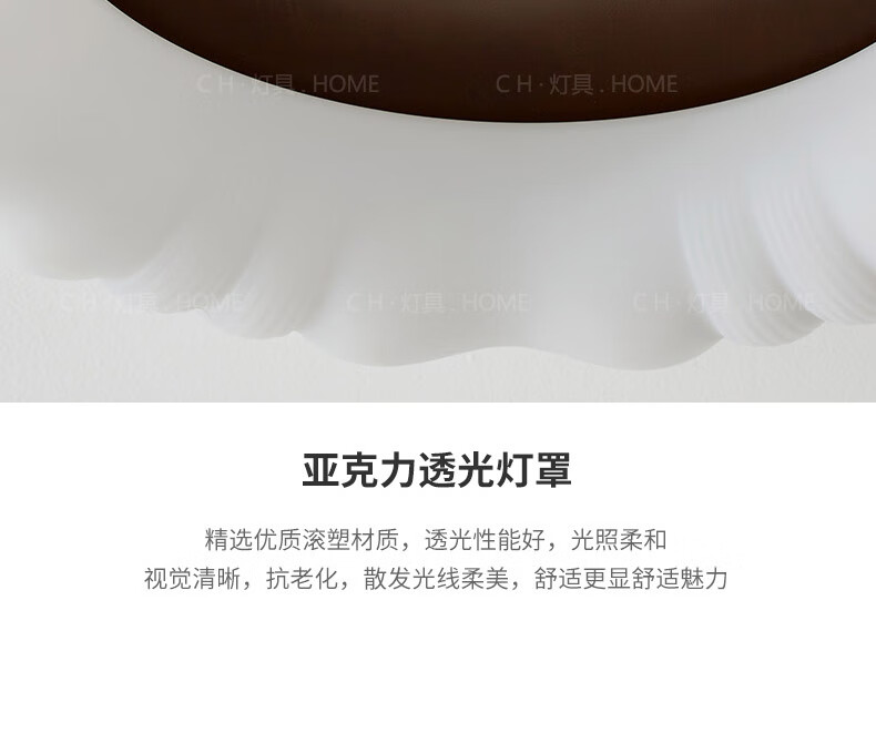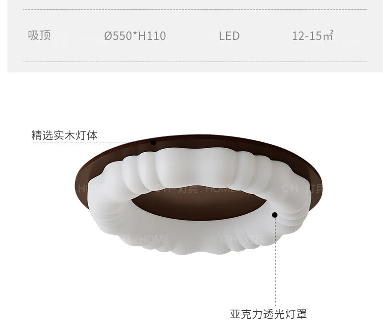 CH奶油风卧室灯日式原木风吸顶灯法式中古复古儿童房护眼主卧书房灯 全光谱【原木色】55CM+三色光