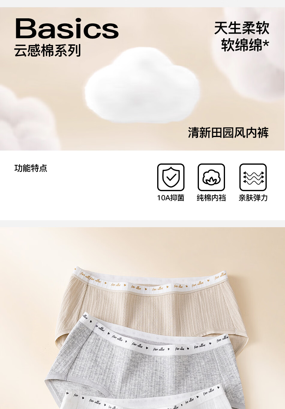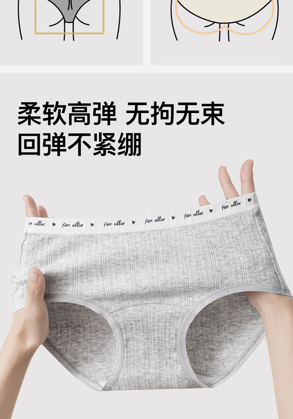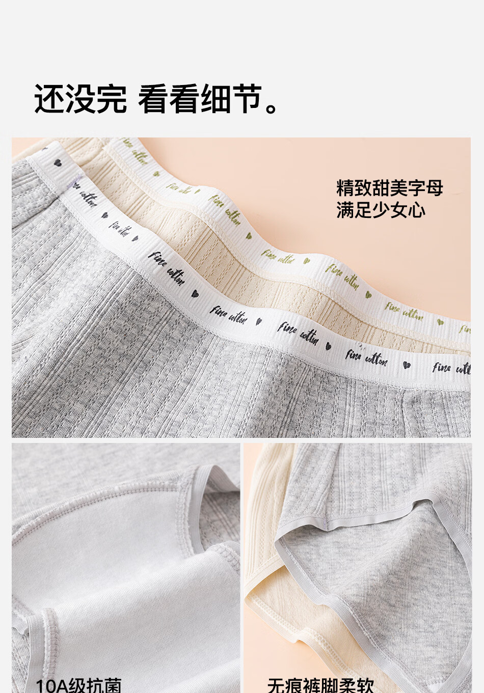 真维斯(Jeanswest)女士内裤女生100%全棉纯棉抗菌裆透气少女中腰三角裤底裤头 【4条】黄油奶昔+浅花灰+赫本白+浅绿灰 L 80-110斤