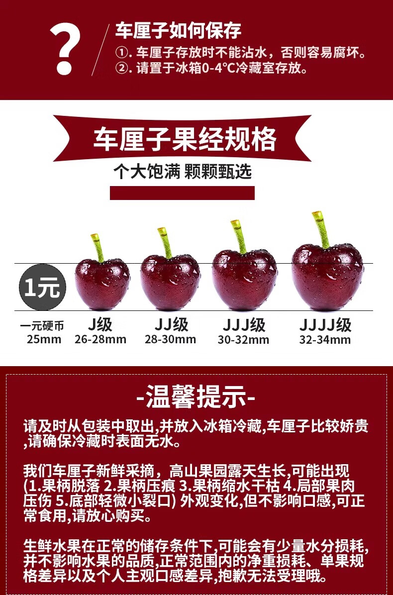 京地达智利进口车厘子4J级特大果3斤 单果32-34mm 新鲜水果礼盒源头直发