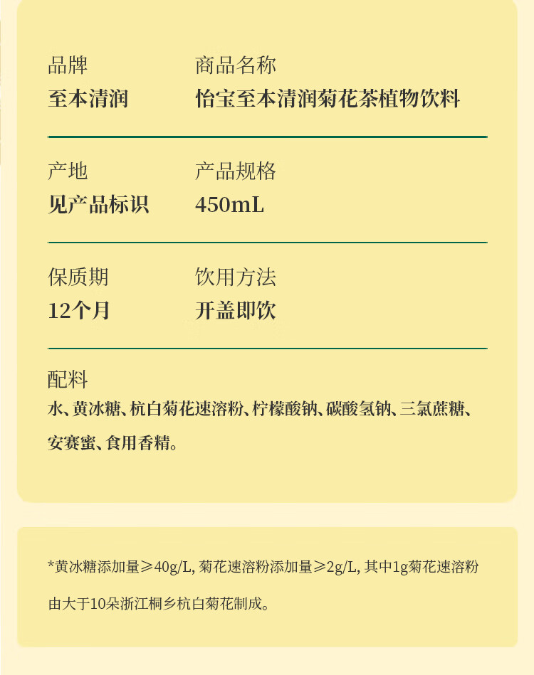 怡宝原味菊花植物饮料450ml*15整箱装
