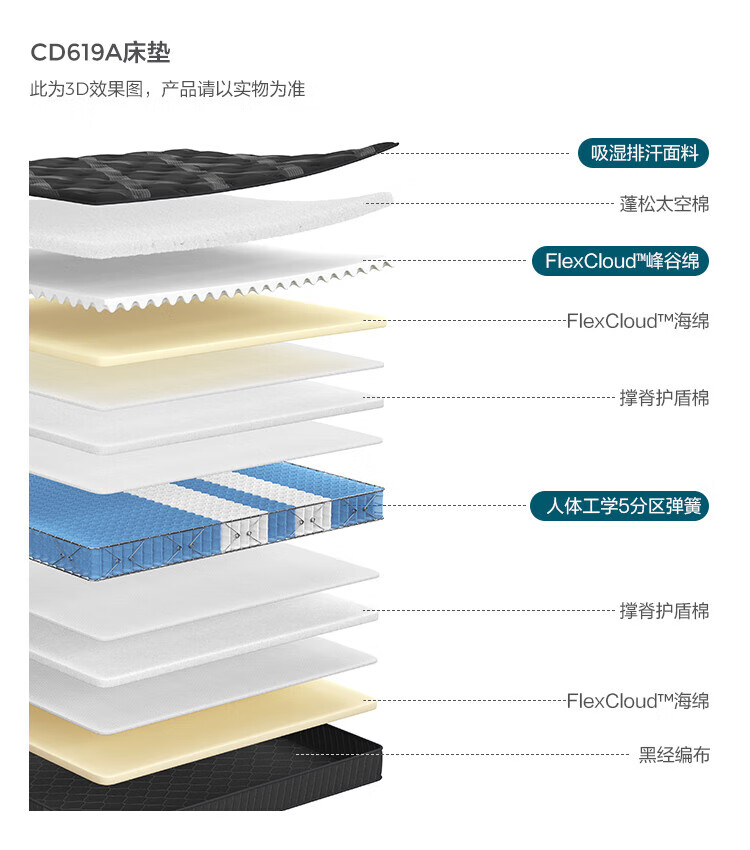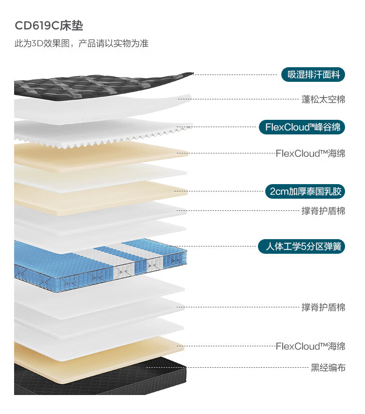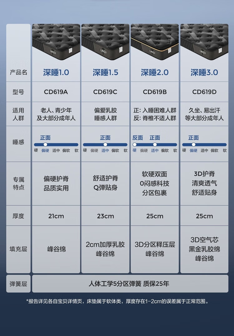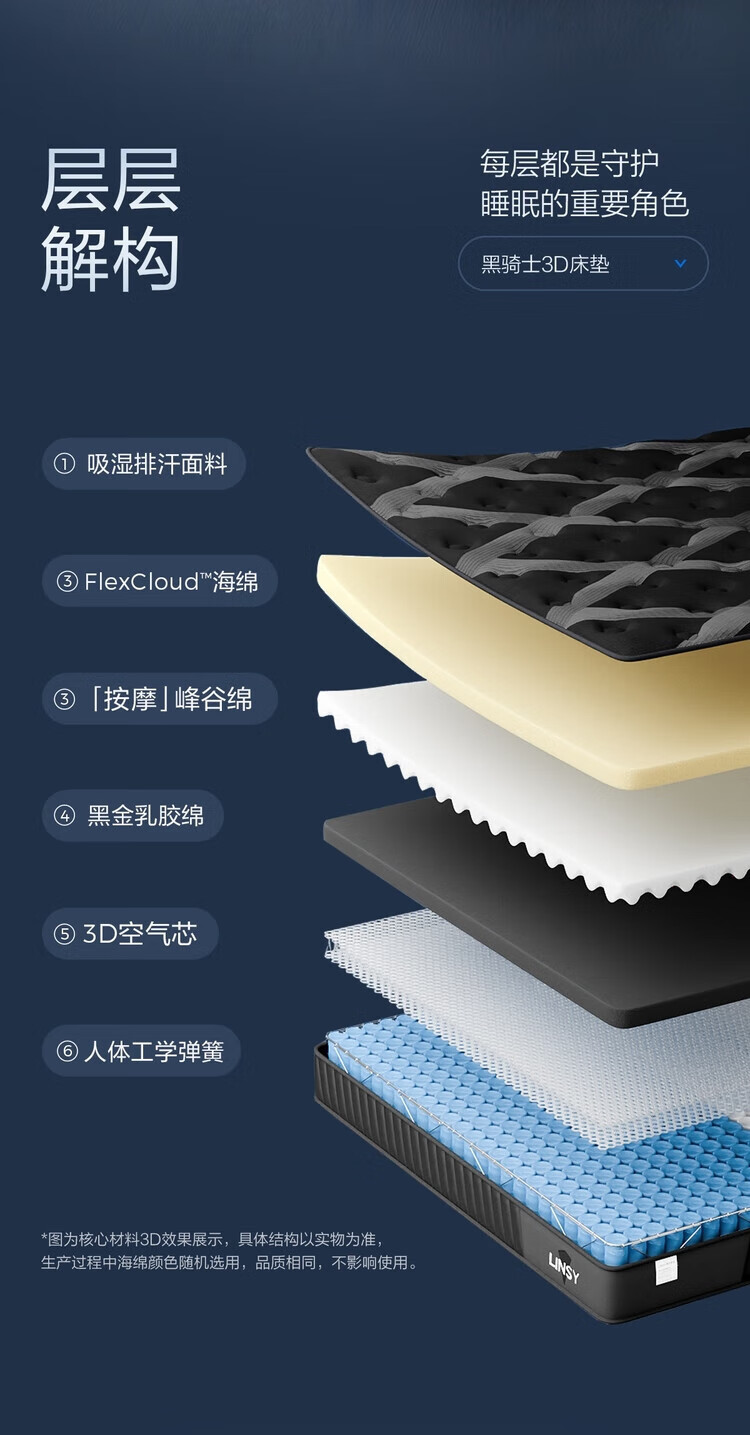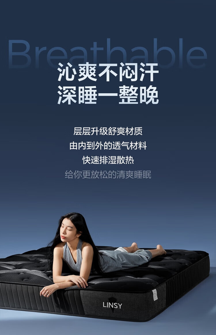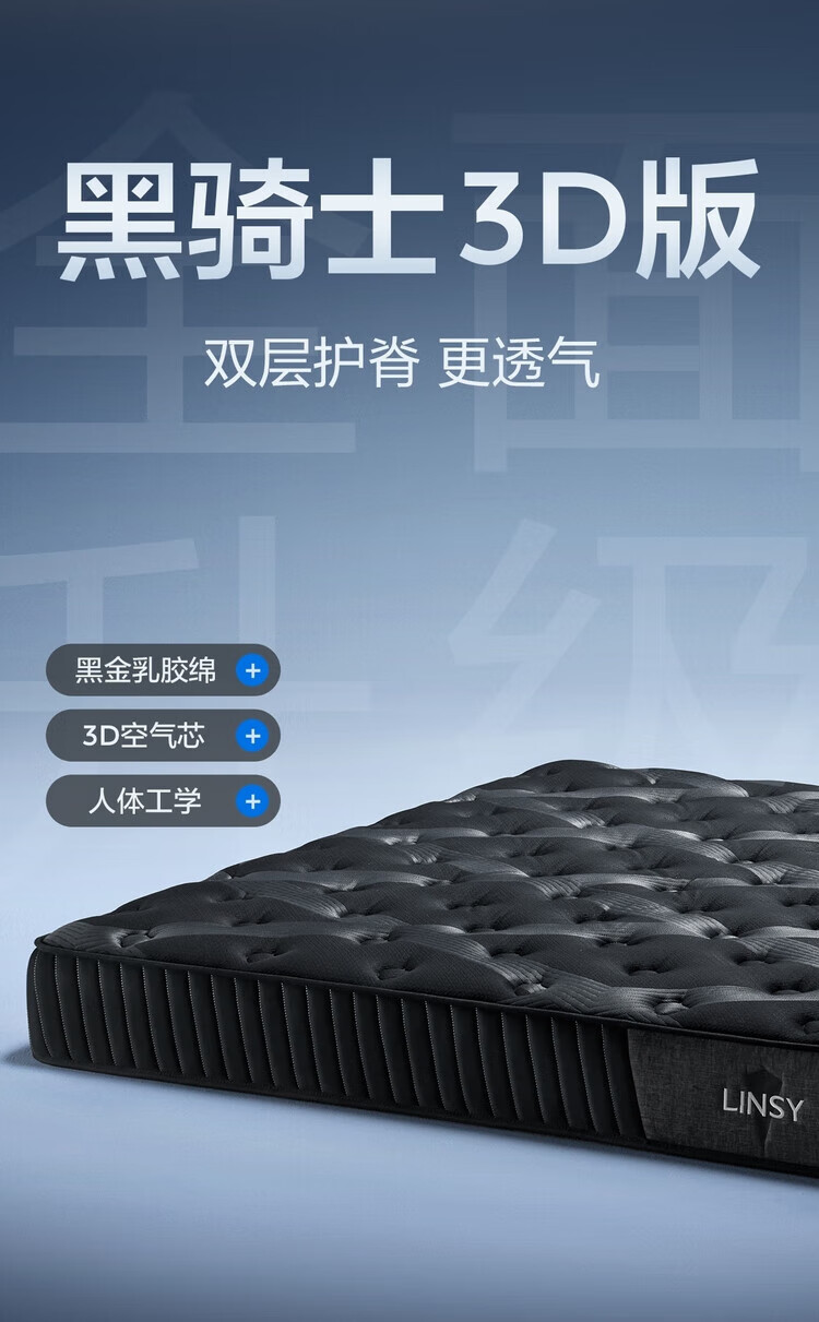 LINSY KIDS林氏家居黑骑士乳胶床垫透气酒店家用席梦思弹簧加厚硬垫CD619 深睡1.5|Q弹乳胶 自然防螨|23cm 1800*2000mm