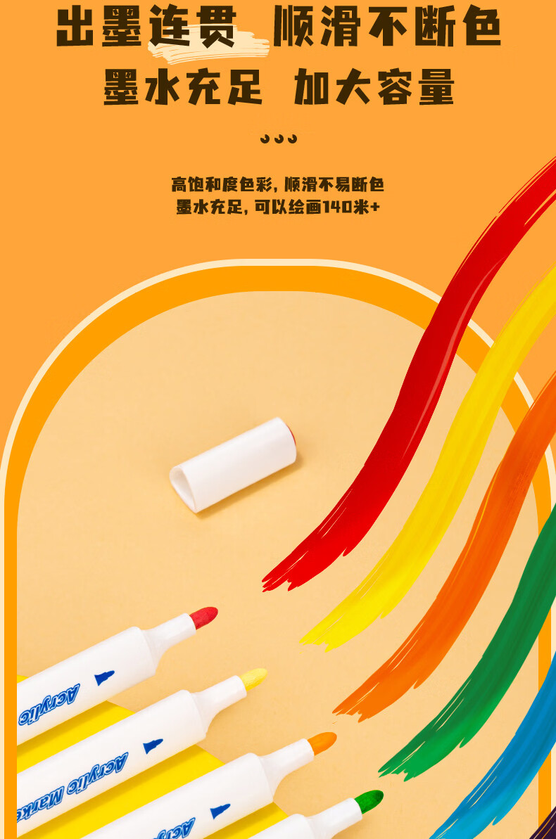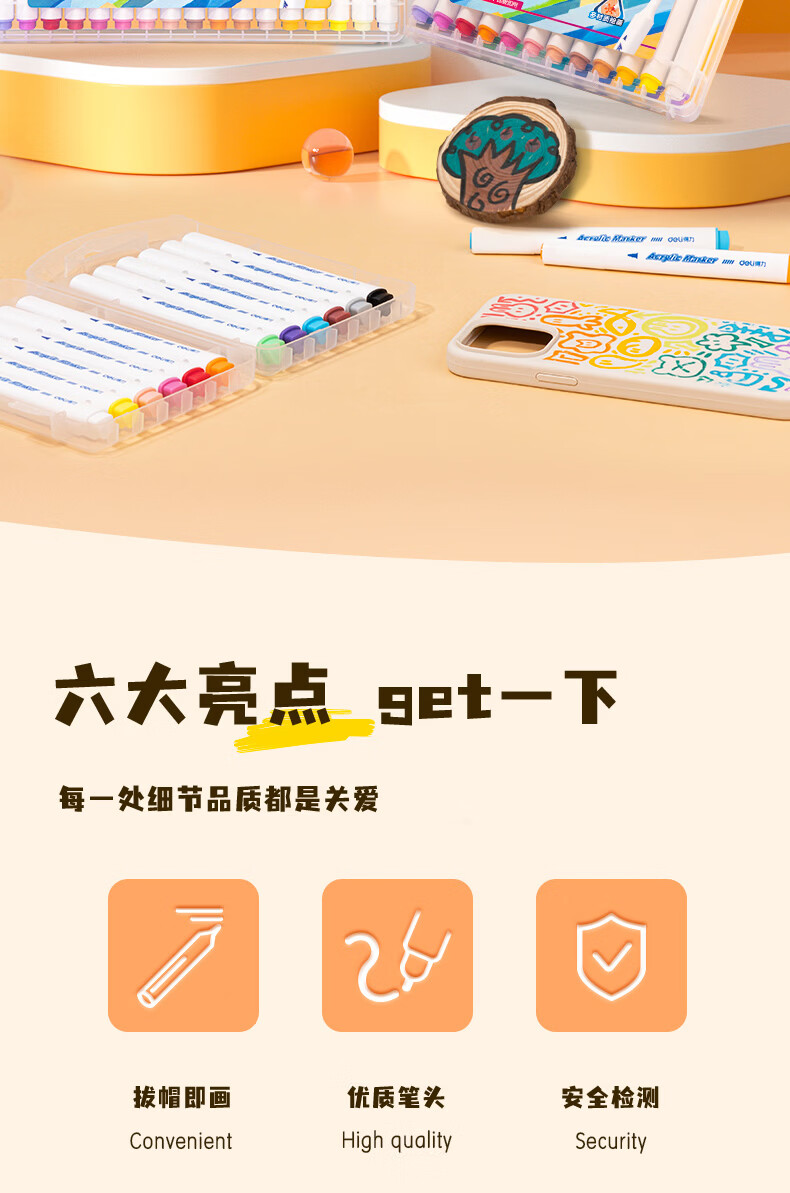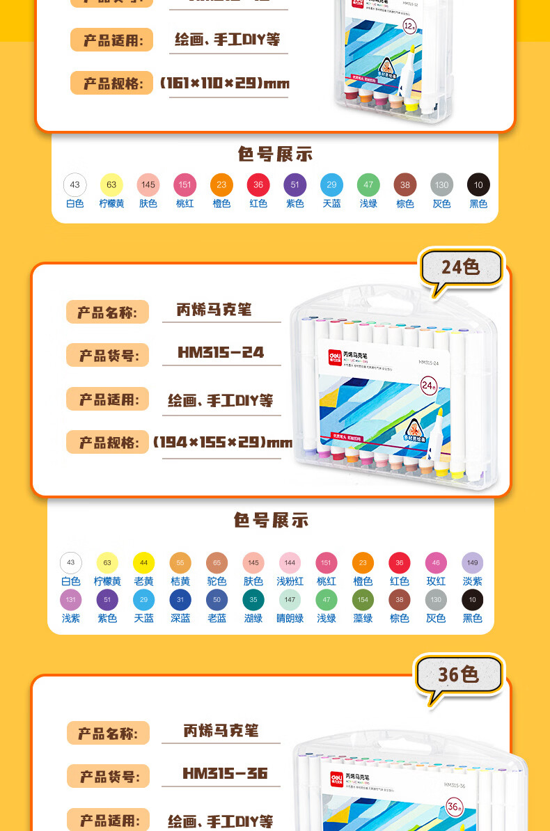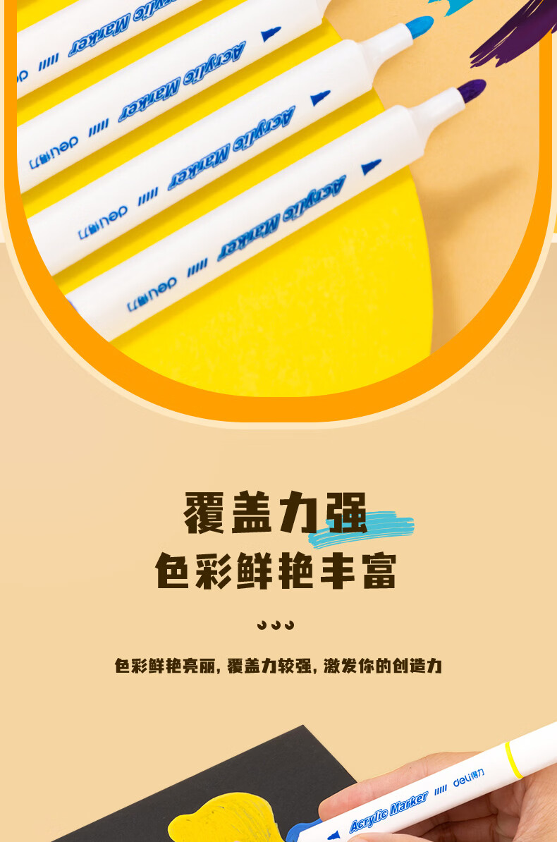 得力丙烯马克笔儿童小学生用不透色可叠色水彩笔绘画彩色笔易握三角杆PP盒装美术生涂鸦生日礼物 24色【免按压细圆杆】