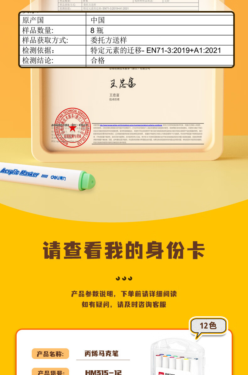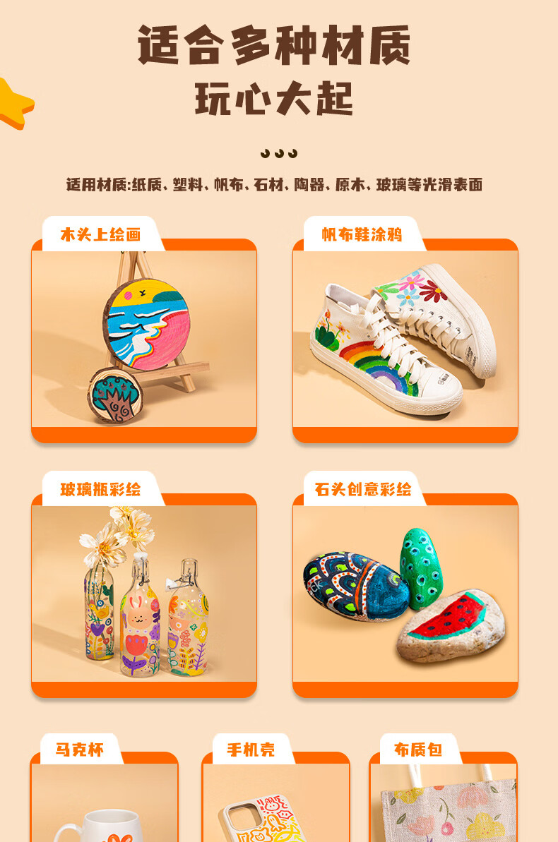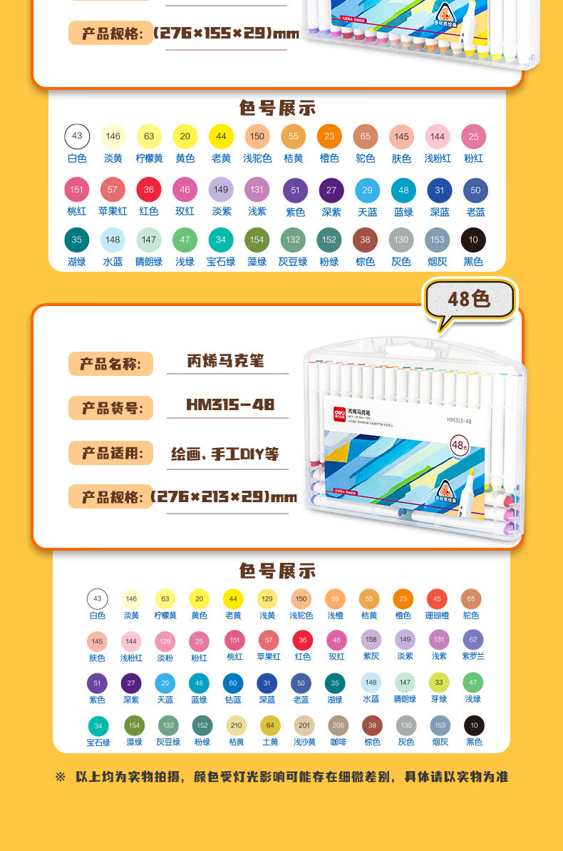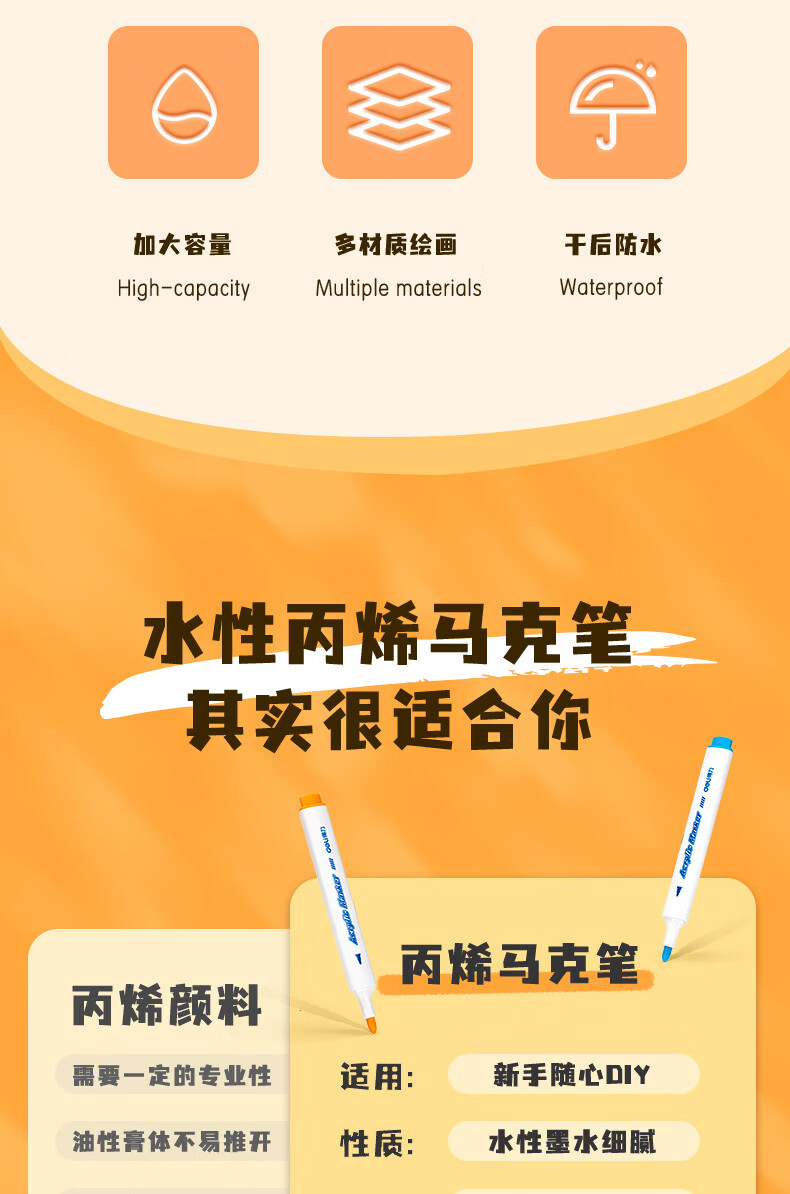 得力丙烯马克笔儿童小学生用不透色可叠色水彩笔绘画彩色笔易握三角杆PP盒装美术生涂鸦生日礼物 24色【免按压细圆杆】