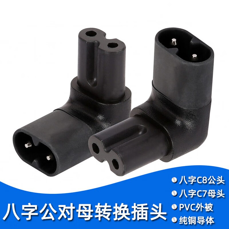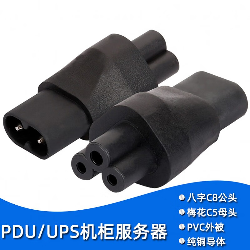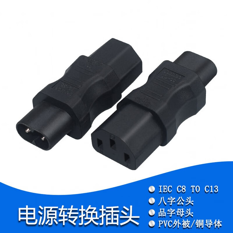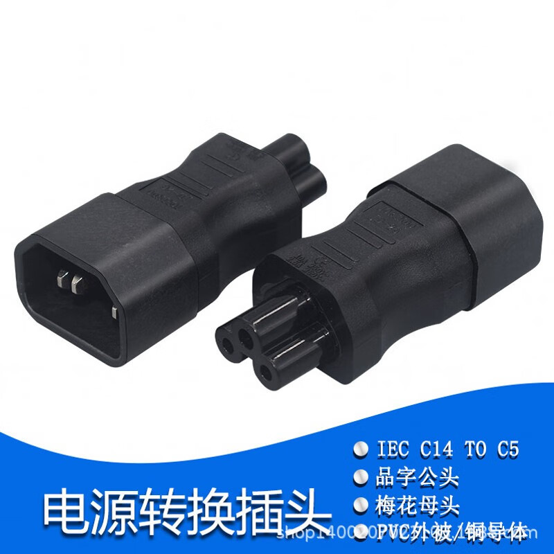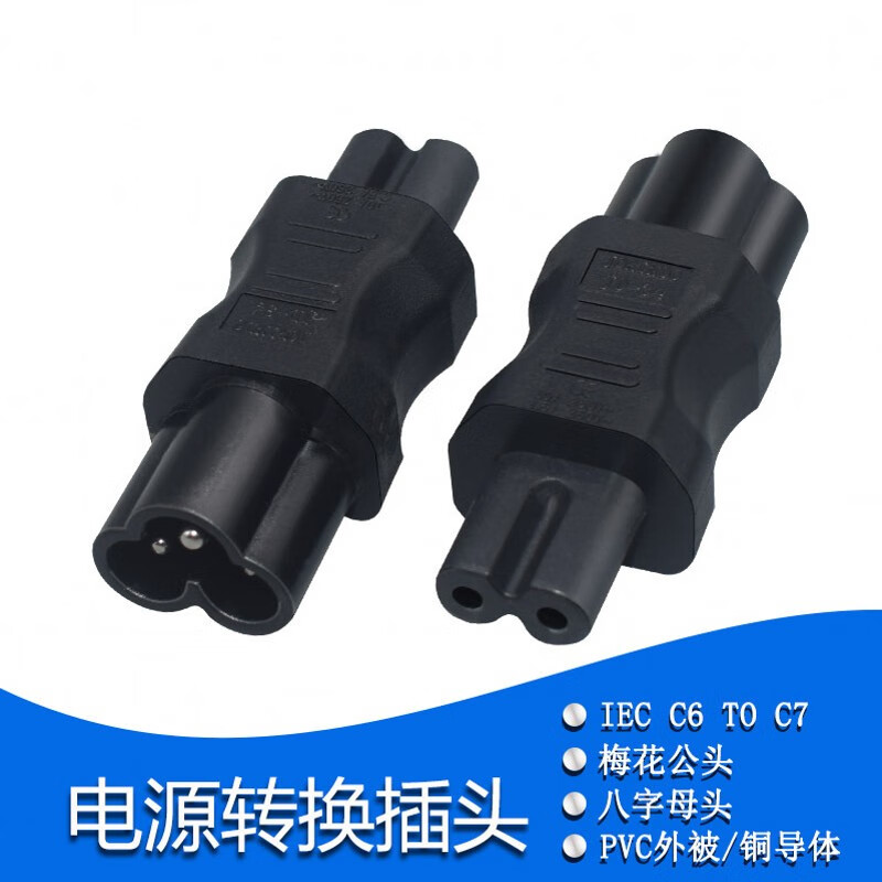 春程IEC-C14转C5电源转换插头 品字公头转梅花母头 转C7八字母头品字公母头转接头转C19母头 C5C8C6C13 C14TOC7 品公头转八字母头转换头(直头) 10A/250V