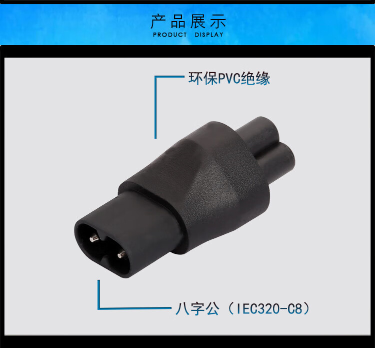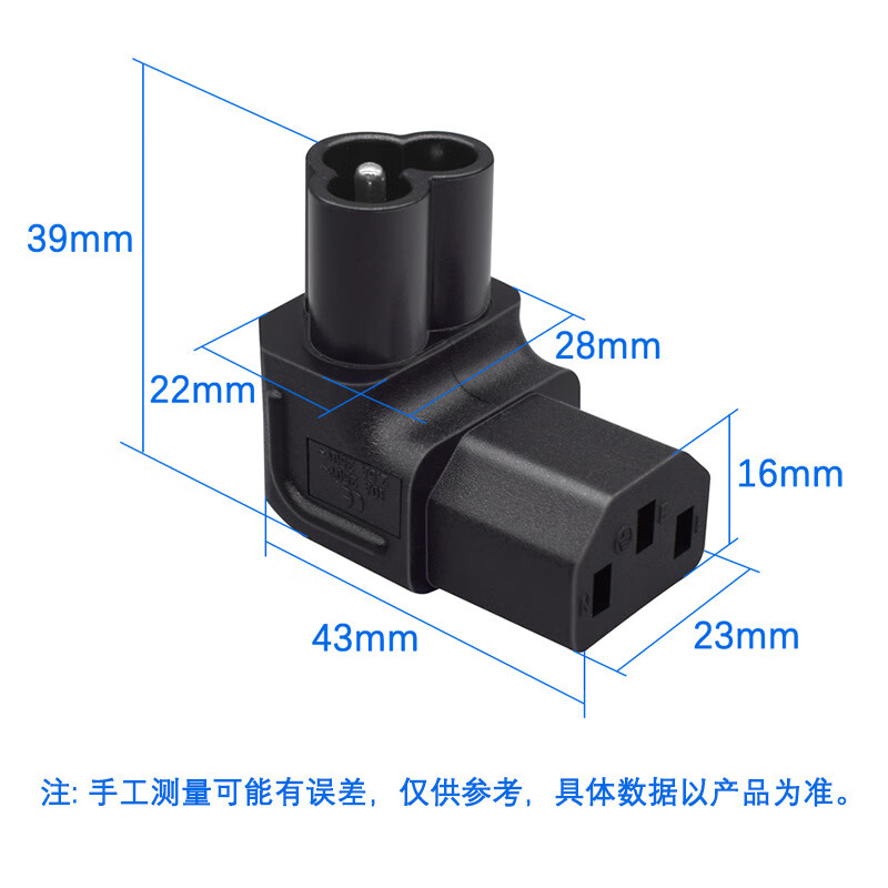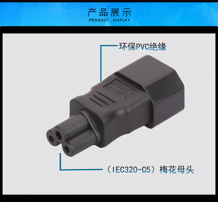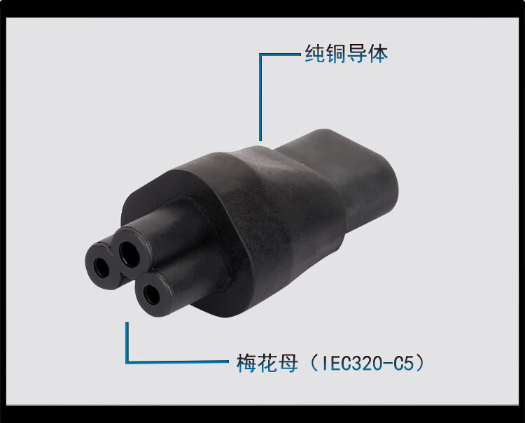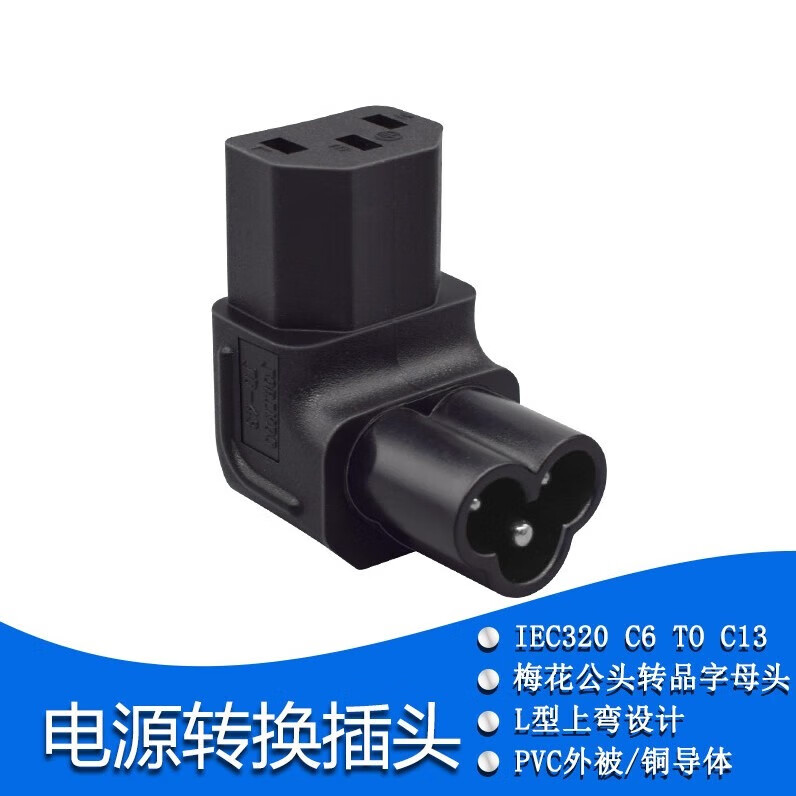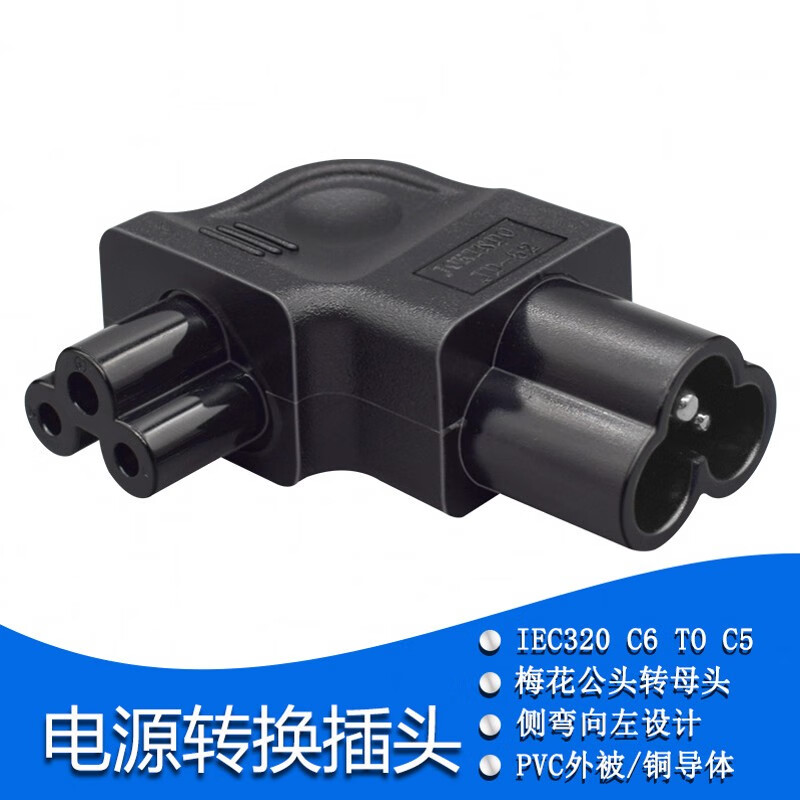 春程IEC-C14转C5电源转换插头 品字公头转梅花母头 转C7八字母头品字公母头转接头转C19母头 C5C8C6C13 C14TOC7 品公头转八字母头转换头(直头) 10A/250V