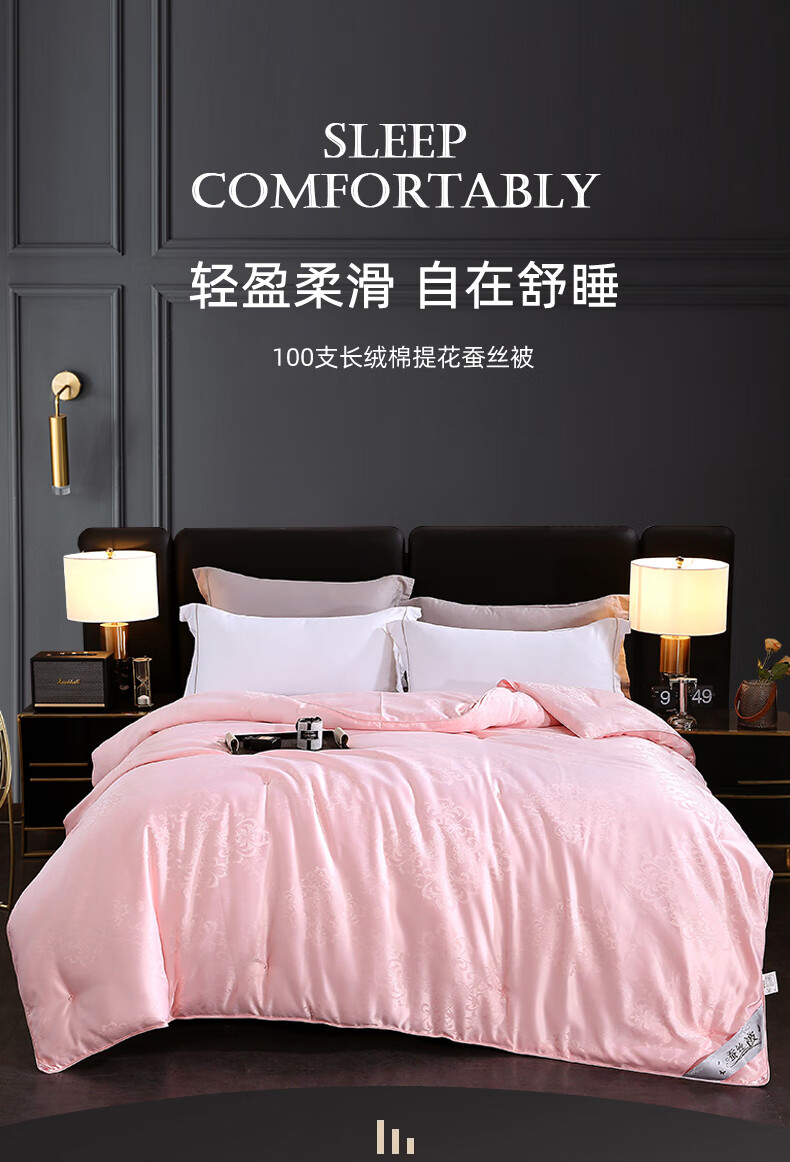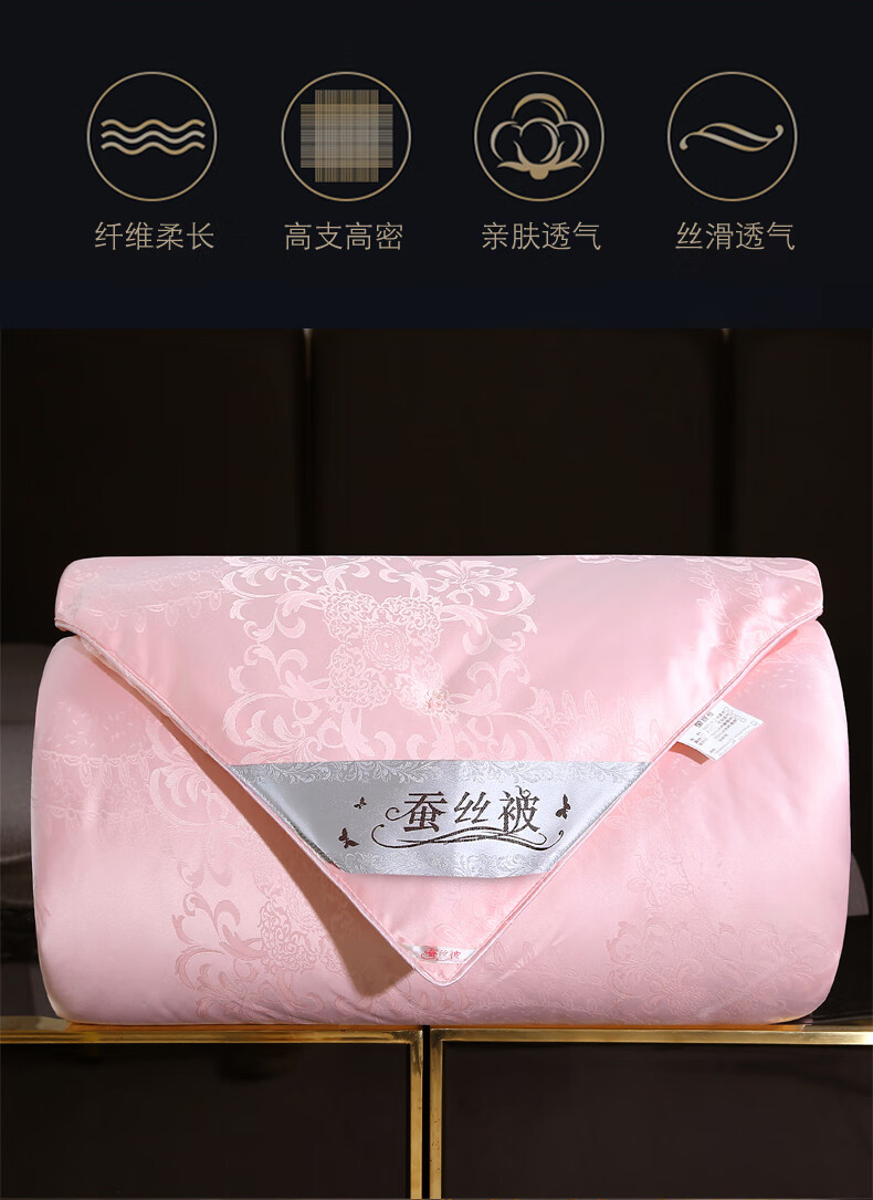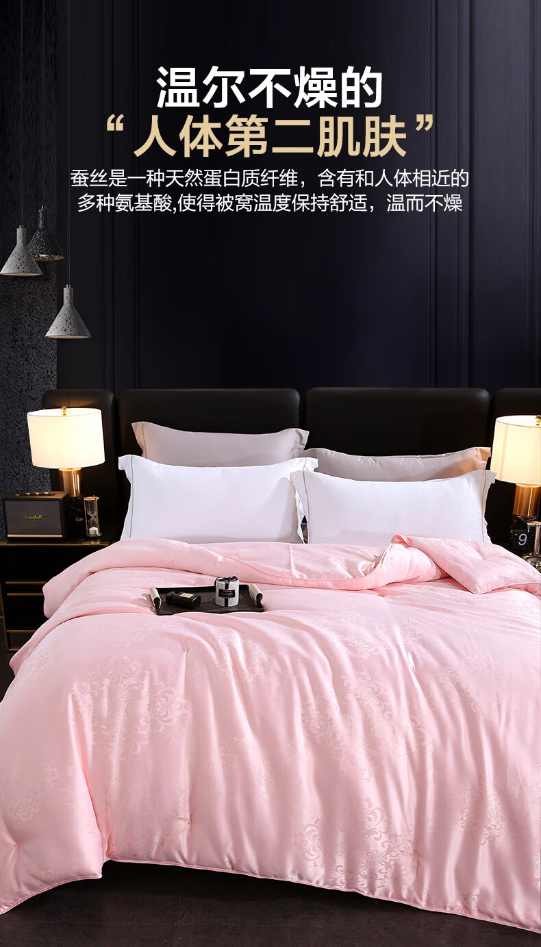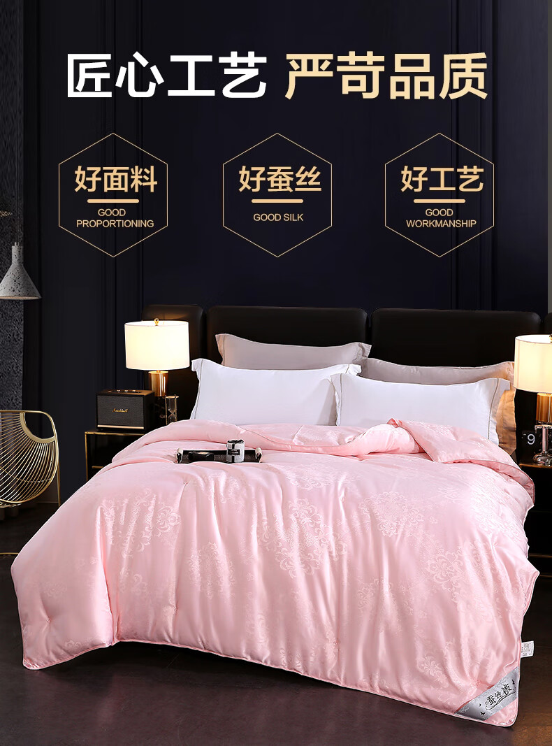 水星系列家纺正品A类母婴蚕丝被子母被100桑蚕丝春秋被芯加厚冬季被子四季通用 云端之梦-全棉- 花纹白-100%桑蚕丝 220X240CM-4斤-春秋被