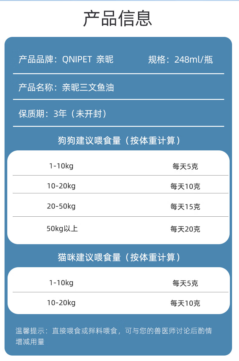 亲昵宠物鱼油狗狗猫咪三文鱼油美毛亮毛护肤宠物深海鱼油 狗狗专用鱼油 248ml