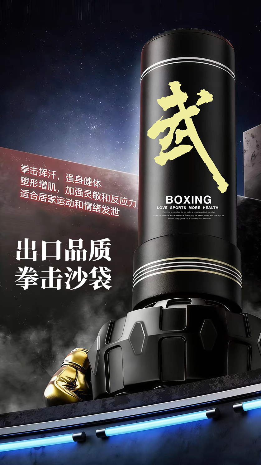 亿倍健(YIBEIJIAN)拳击沙袋立式家用散打成人不倒翁拳靶沙包健身训练器 1.85米黑武 | 新型专利款 | 增厚款踢脚区