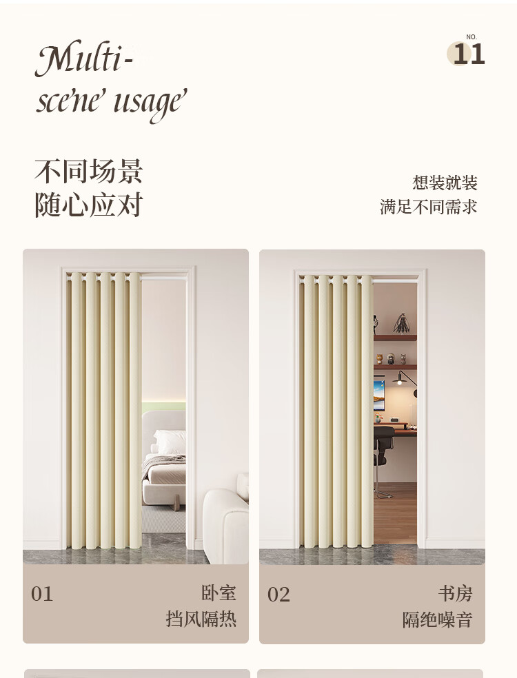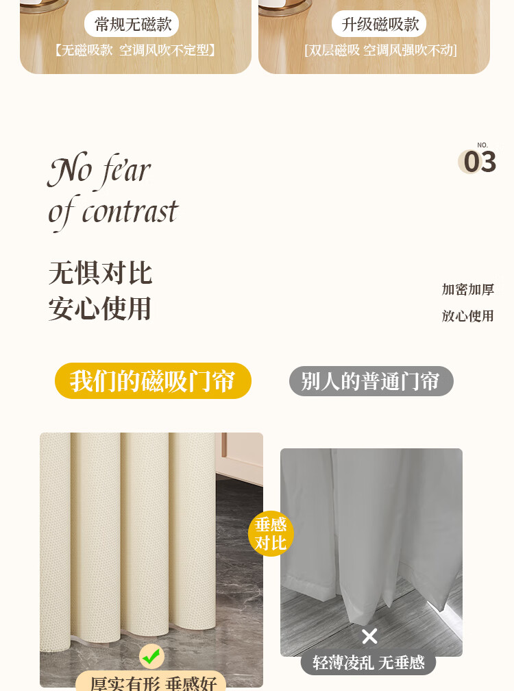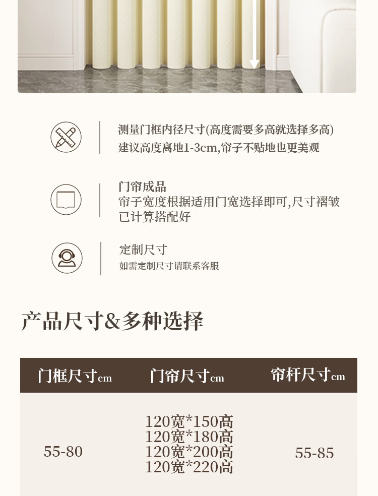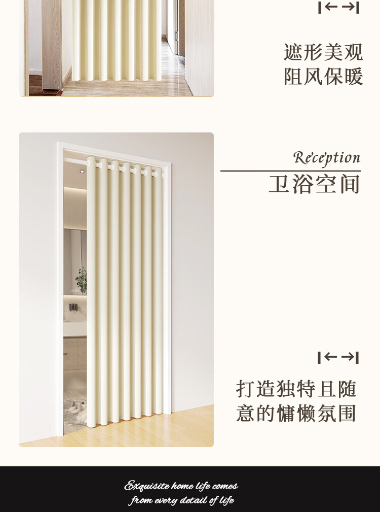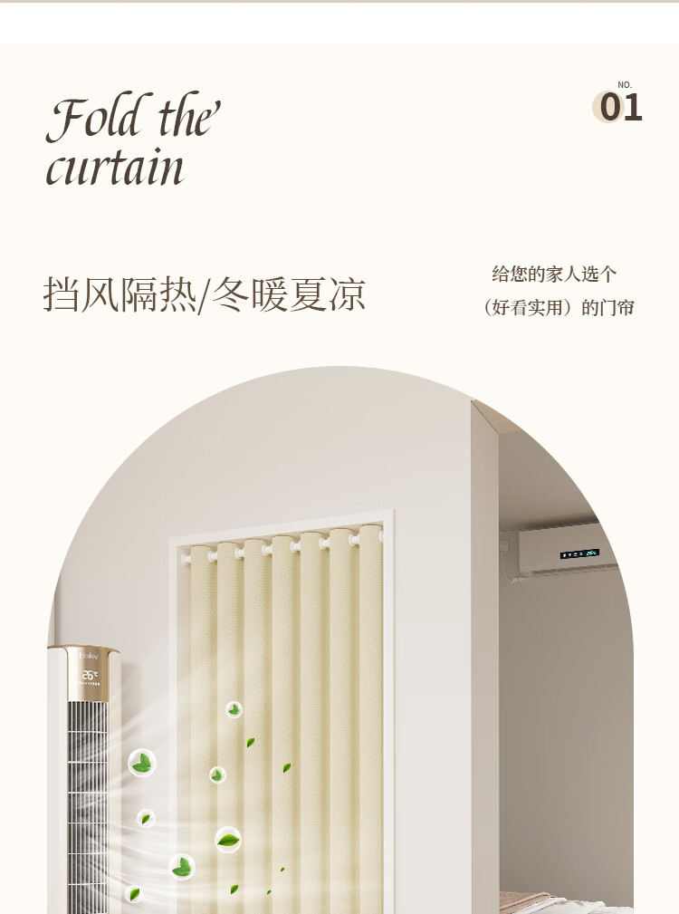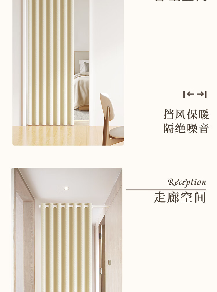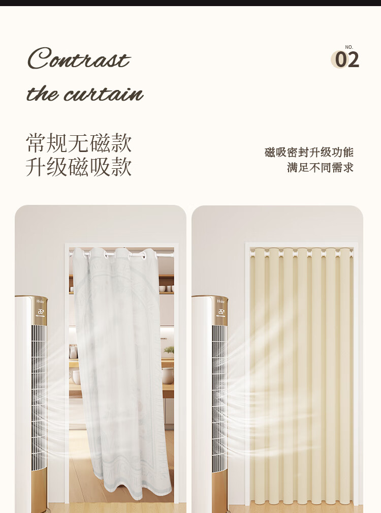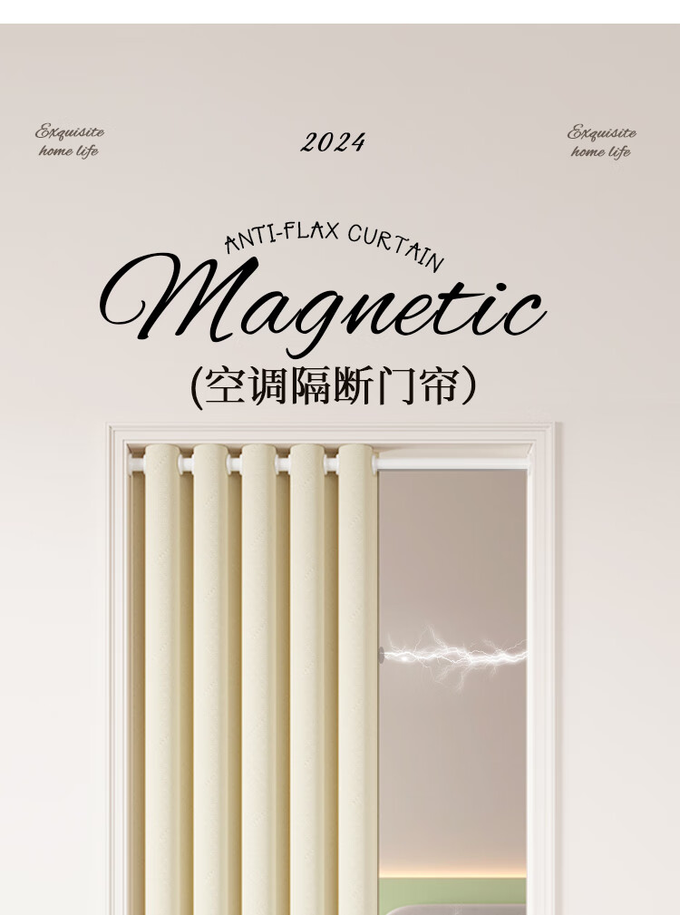 舒帘免打孔空调门帘2025新款高档防冷气隔断帘家用客厅磁吸遮挡挂帘子 米色-米拉绒【免打孔+双侧磁吸】 宽150*高220cm【适用80-100门】