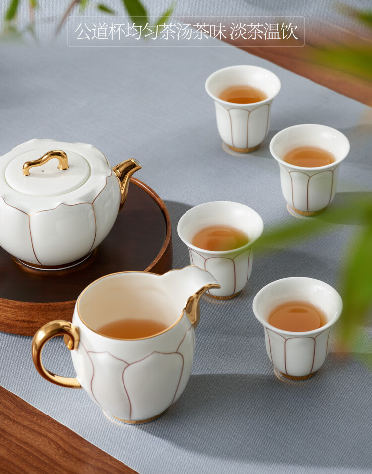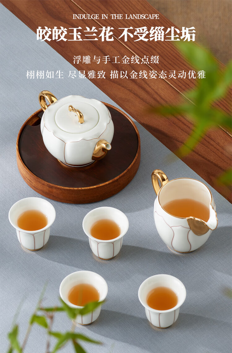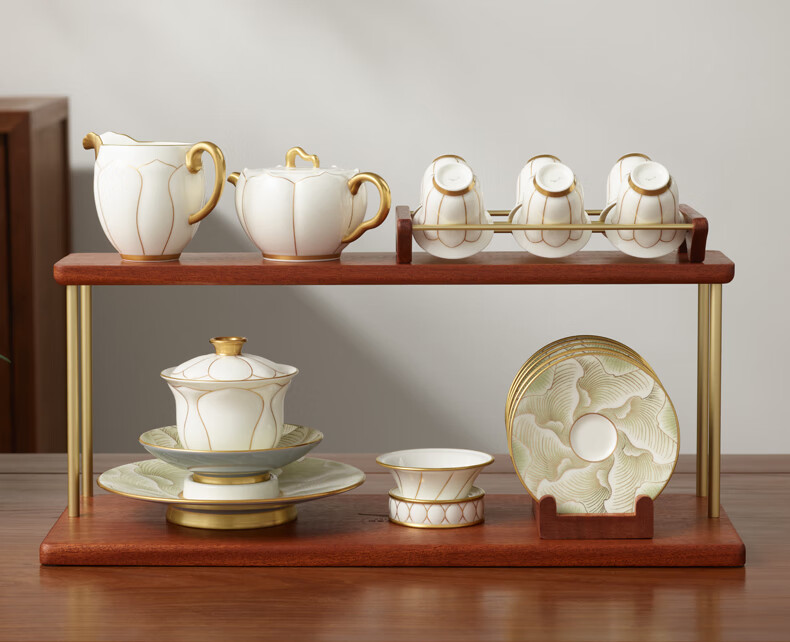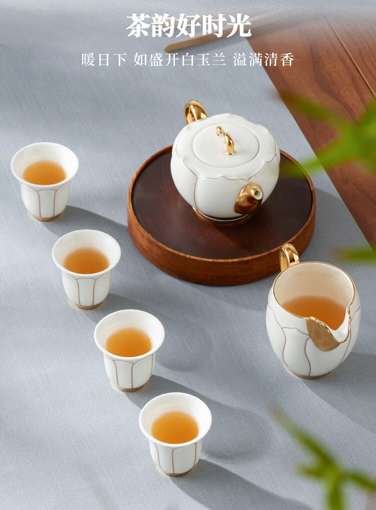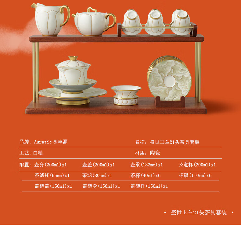 永丰源(auratic)夫人瓷盛世玉兰 7头/21头陶瓷茶具套装 简约家用 礼盒装 21头茶壶组【6人位】【含陈列架】