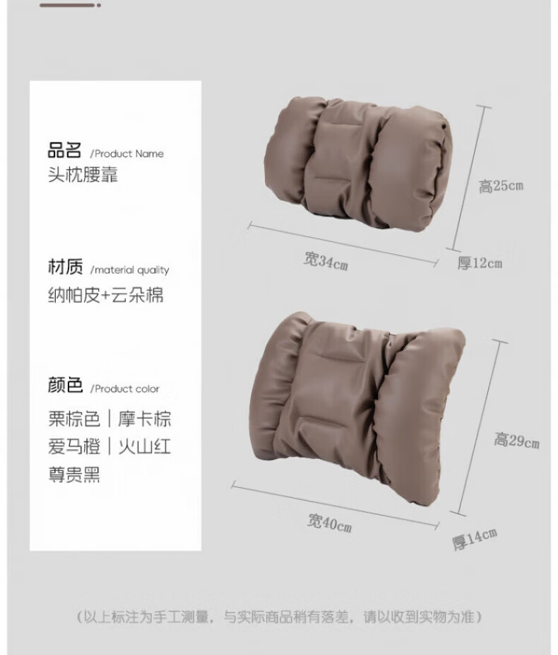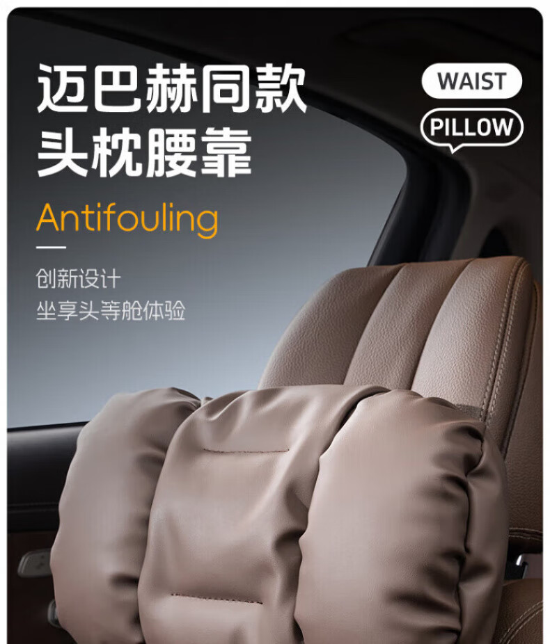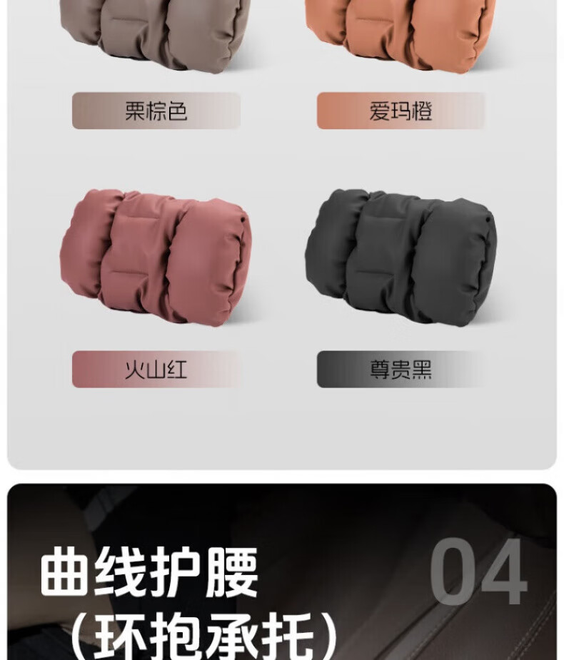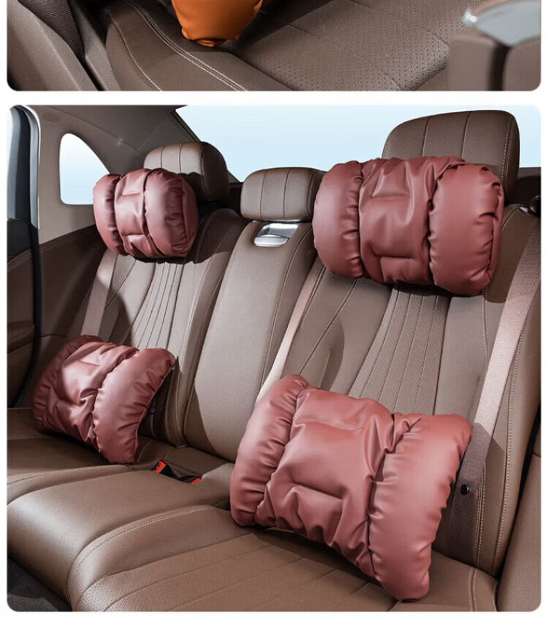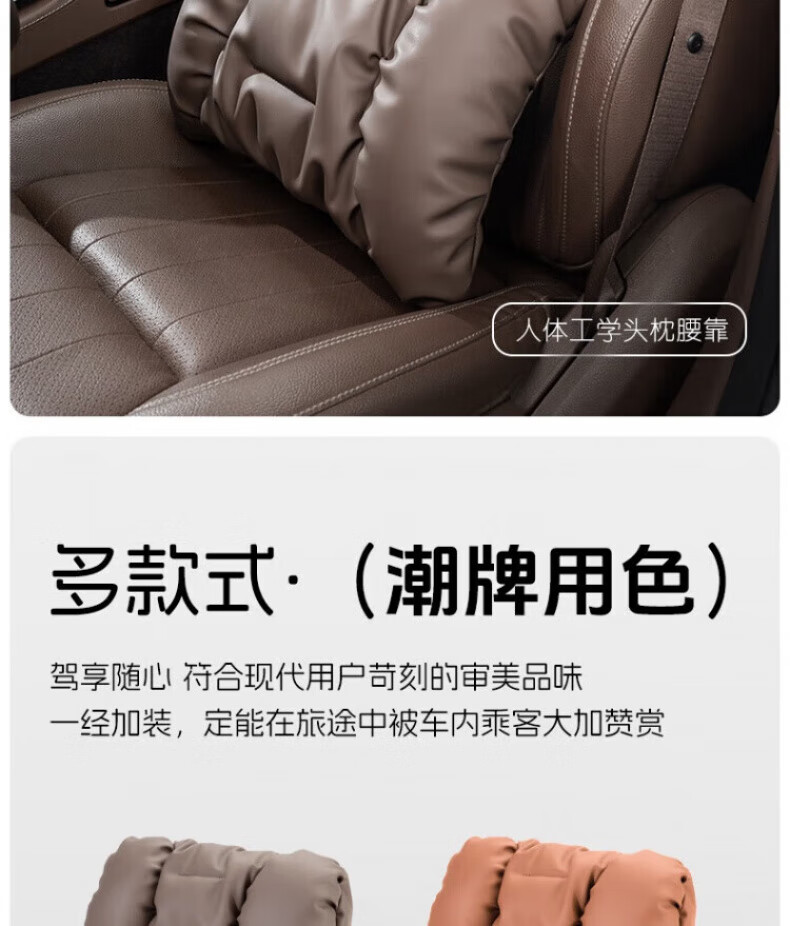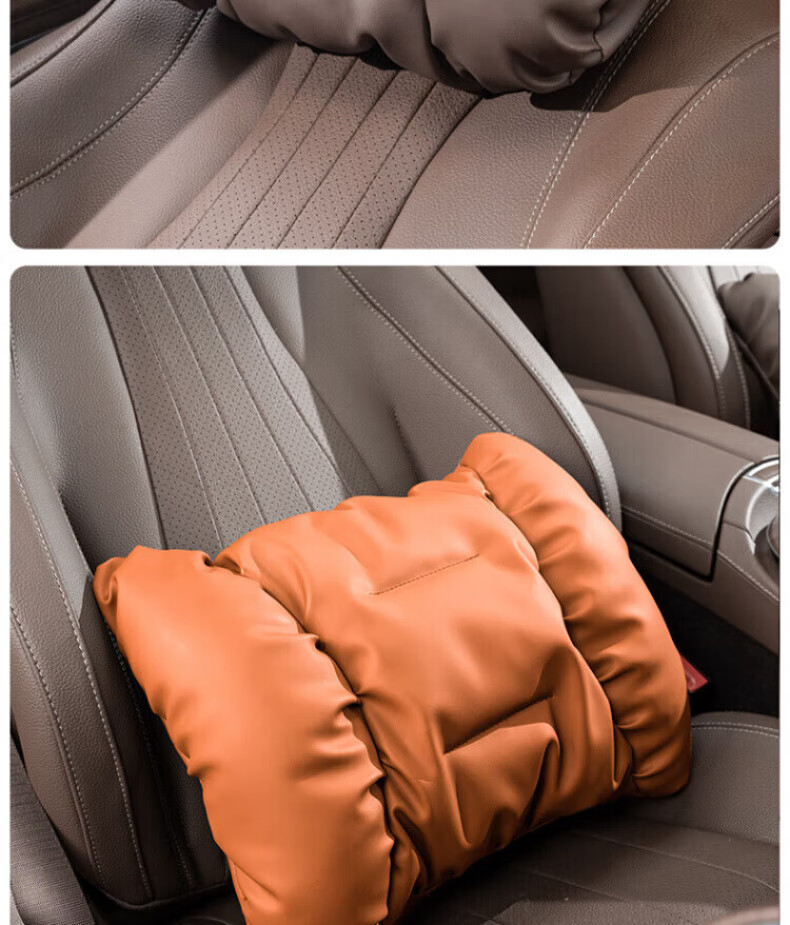 LZJV2025新款汽车头枕护颈枕奥迪奔驰大众座椅靠枕腰靠套装四季通用 优惠套餐【爱马橙(头枕+靠枕)】