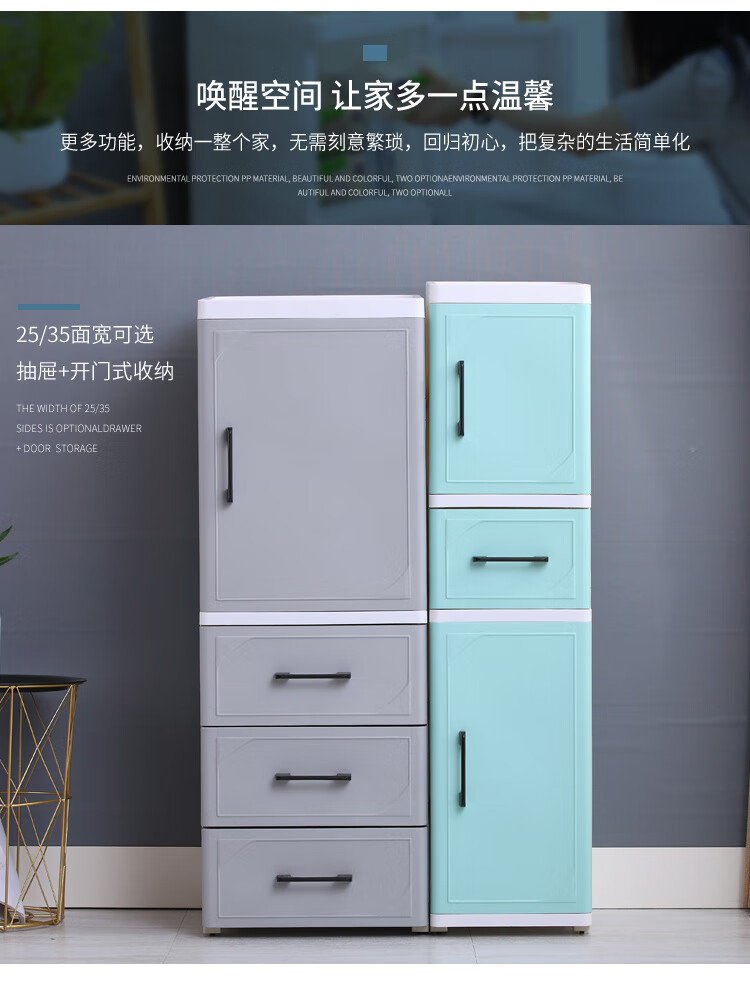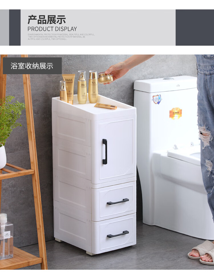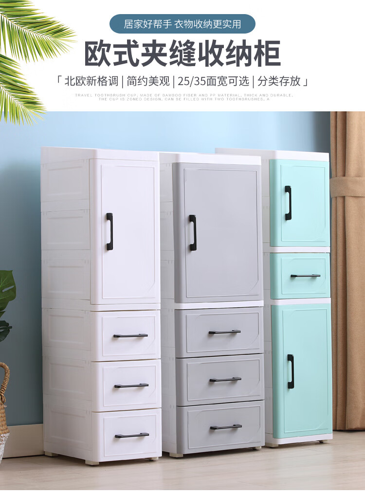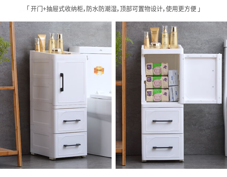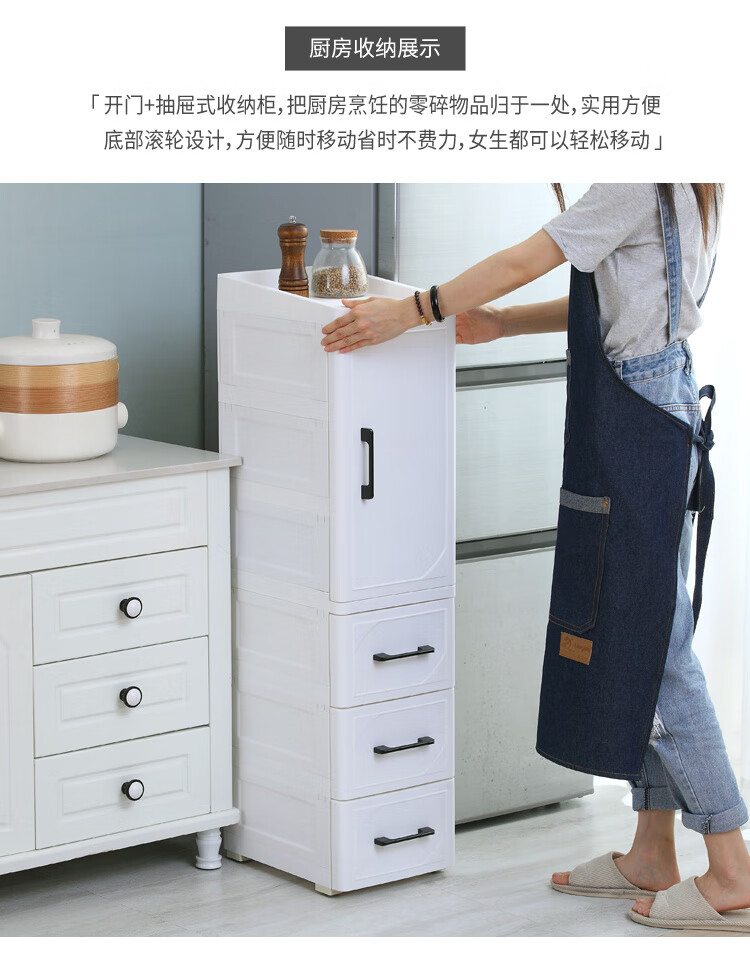 255CM夹缝收纳柜塑料床头柜开门抽屉式厨房整理柜卫生间储物柜 北欧白 25cm短门+1抽
