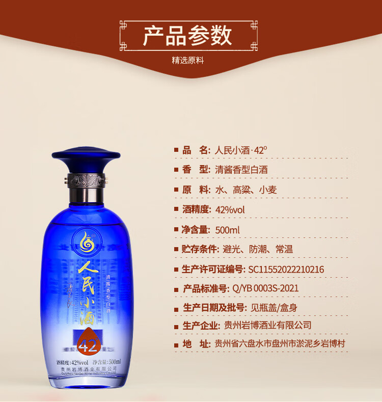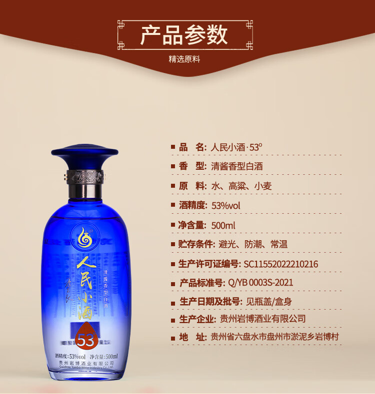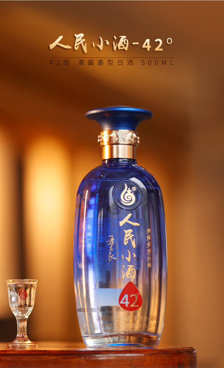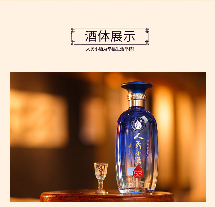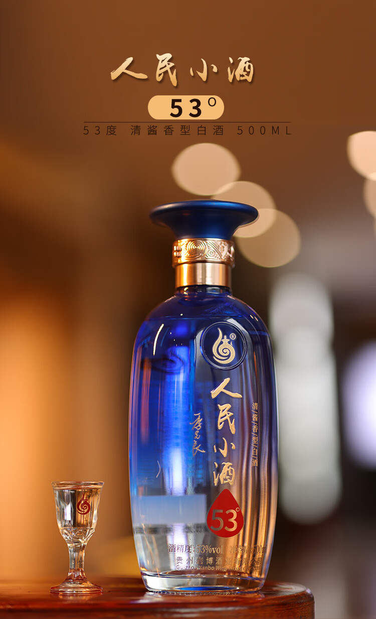人民小酒蓝瓶 清酱香型白酒 纯粮食酿造白酒 53度 500mL 1瓶 单瓶装