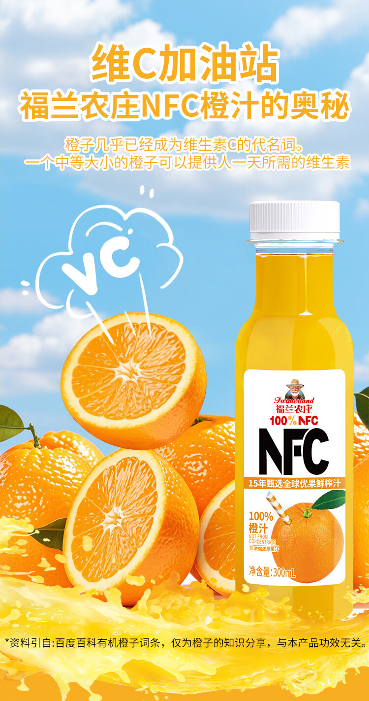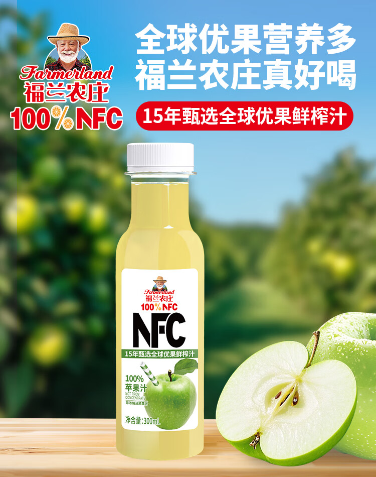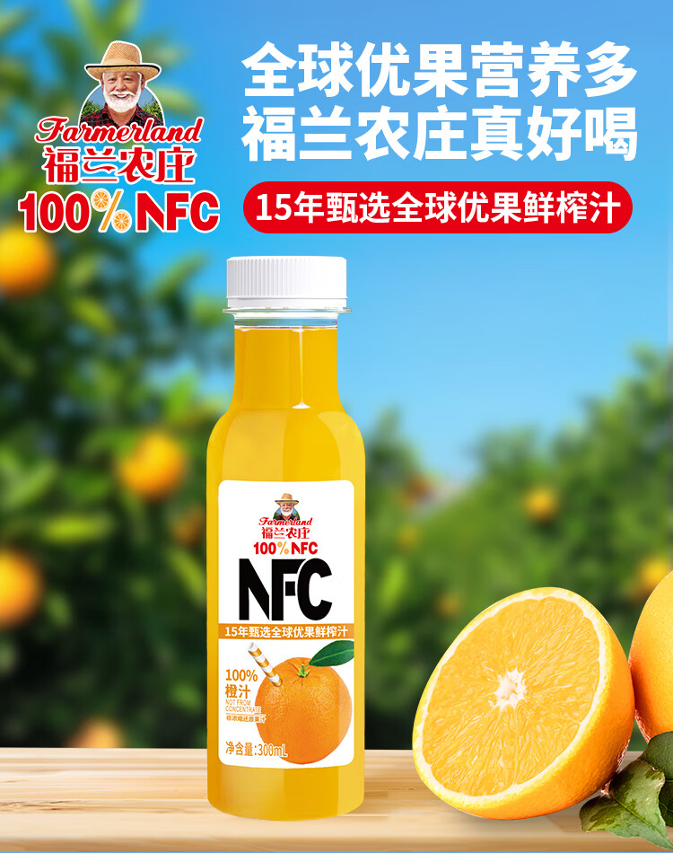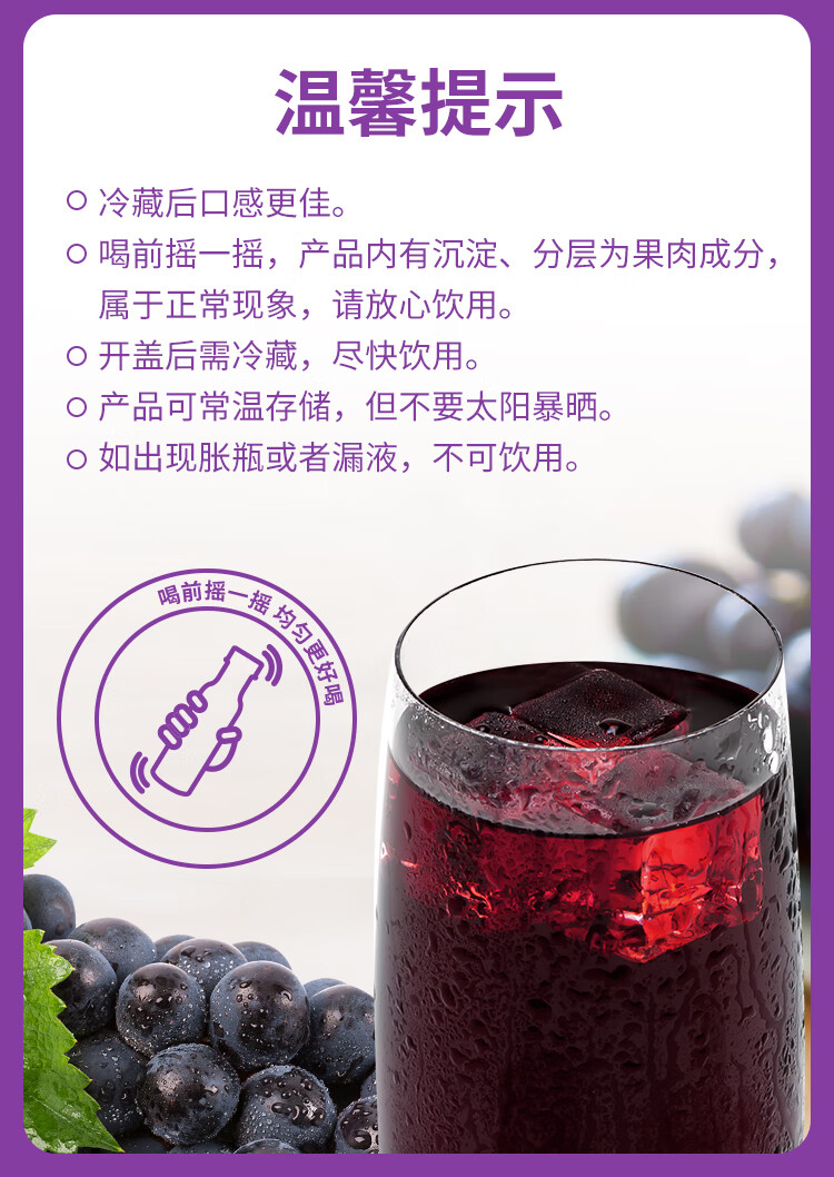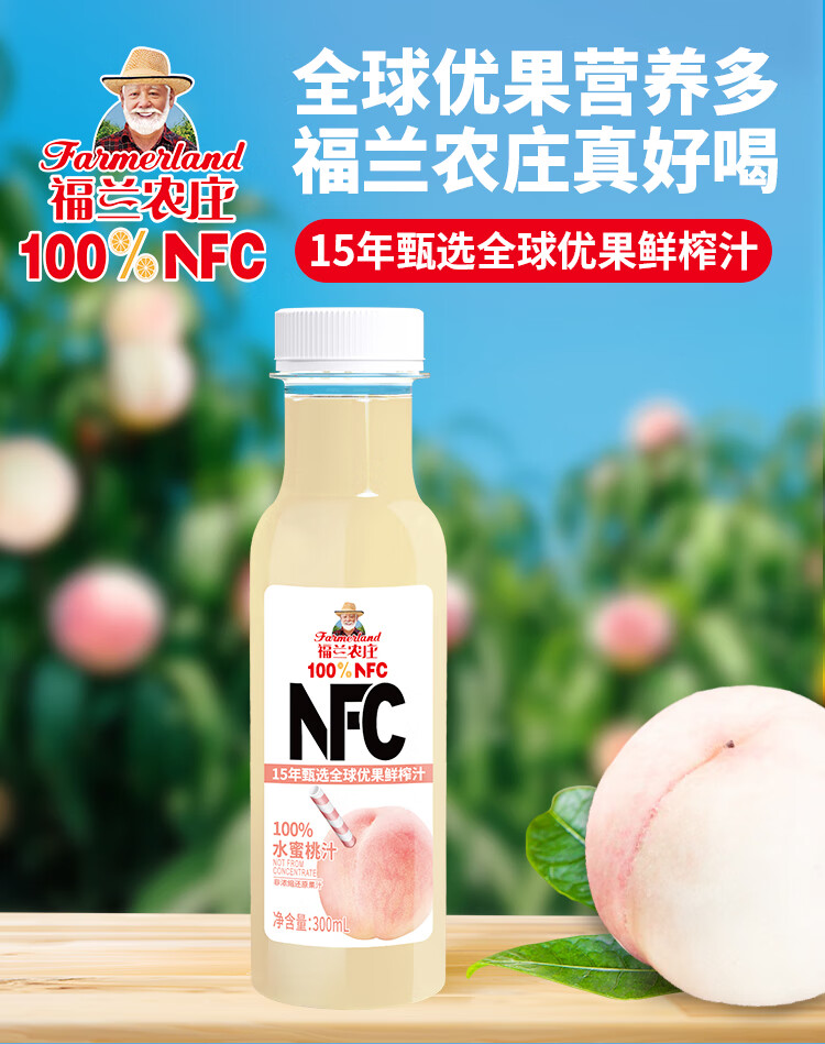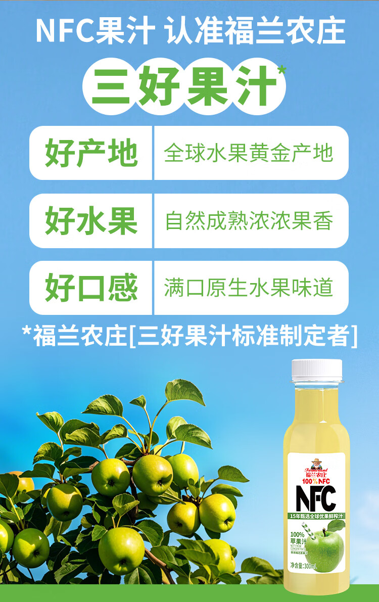 福兰农庄100%NFC鲜榨果汁配料表干净0脂肪饮料 NFC葡萄汁300ml*10瓶礼盒装