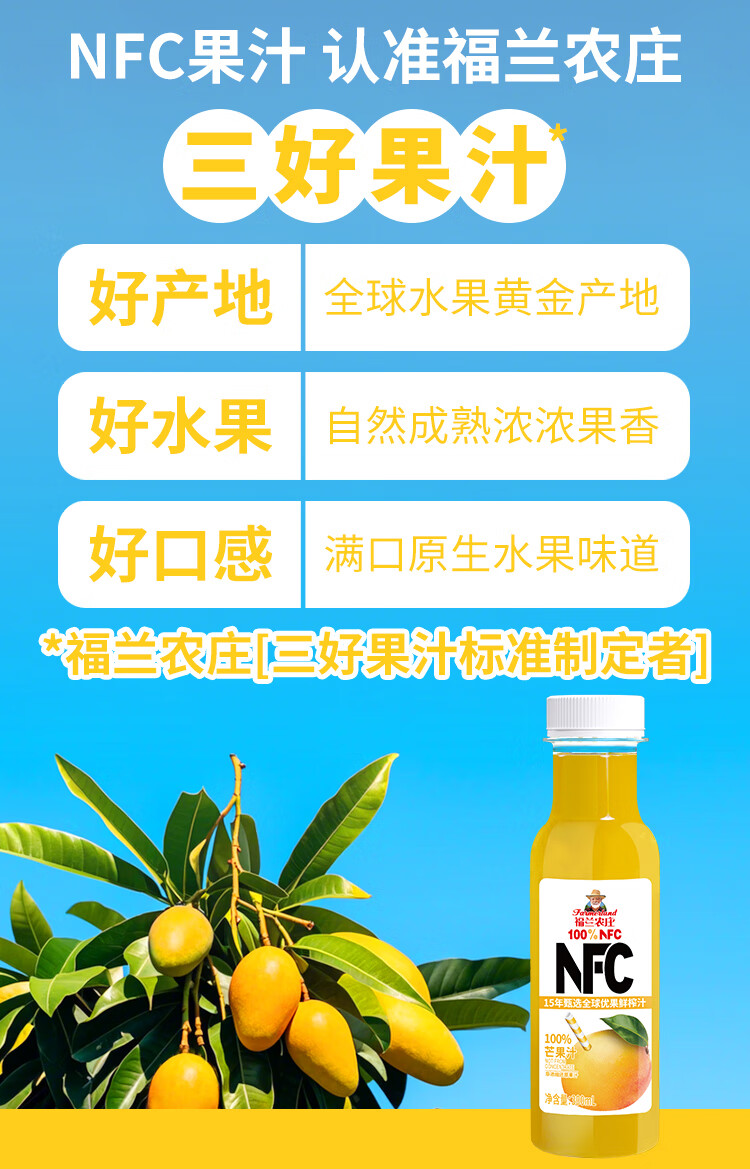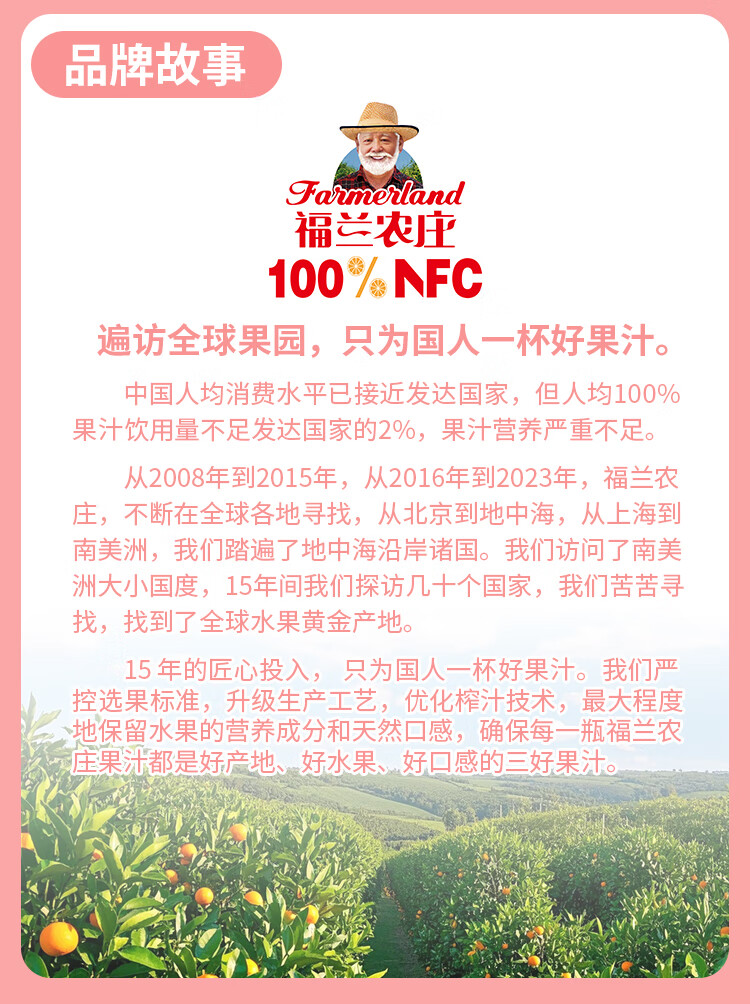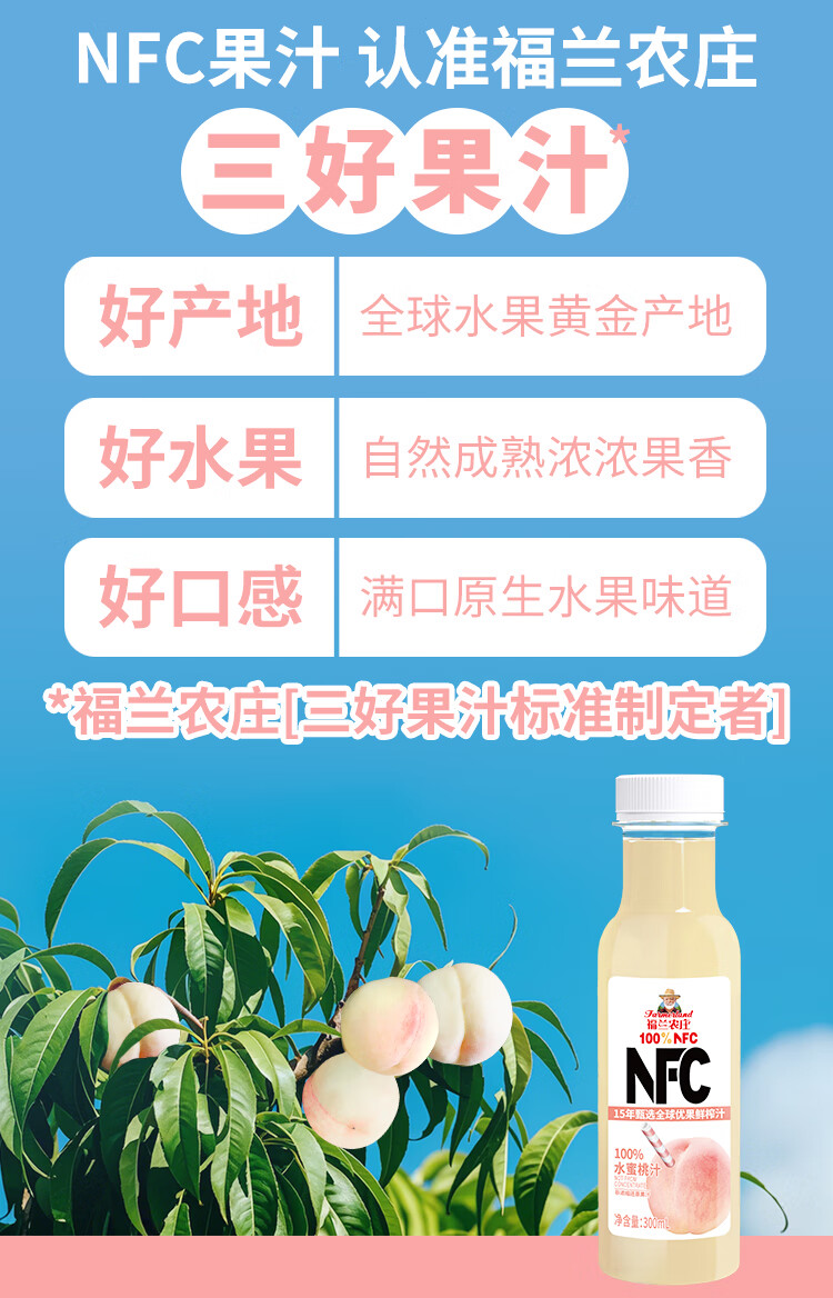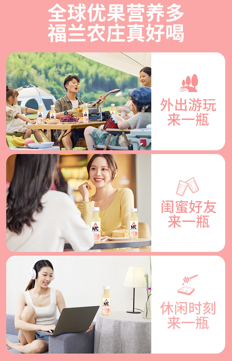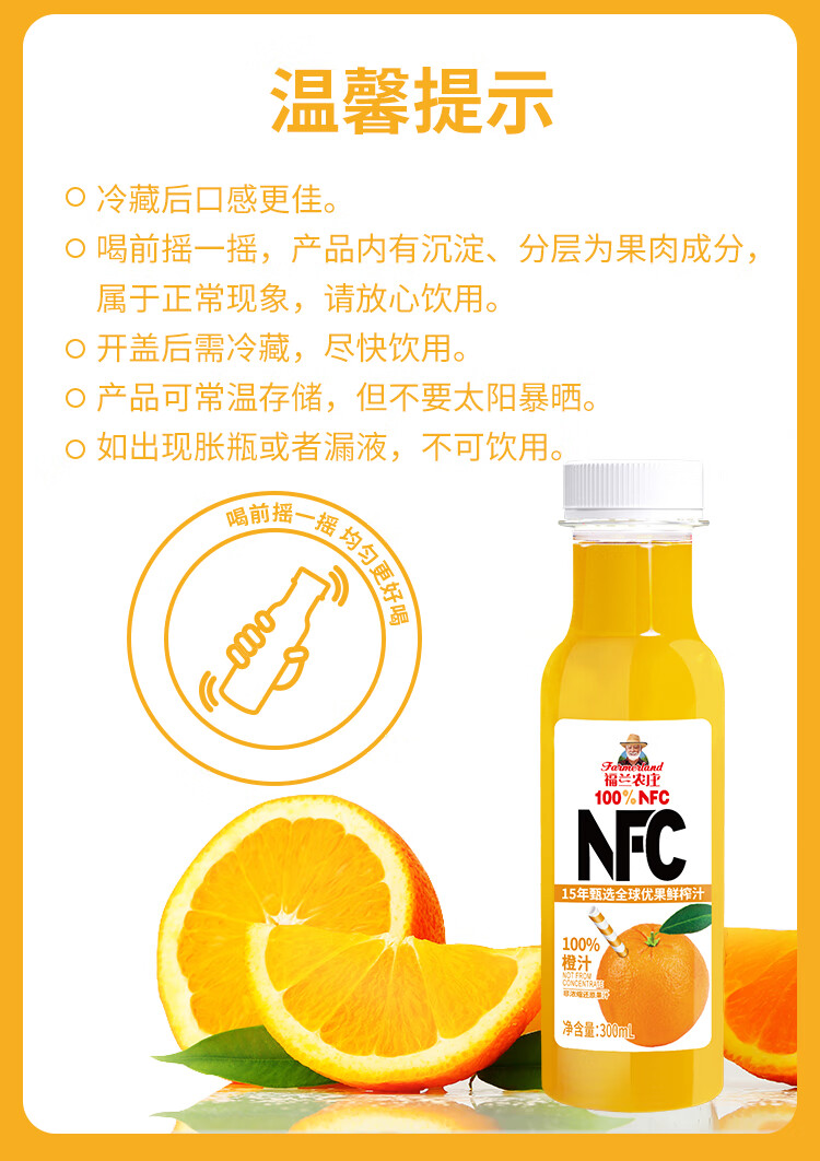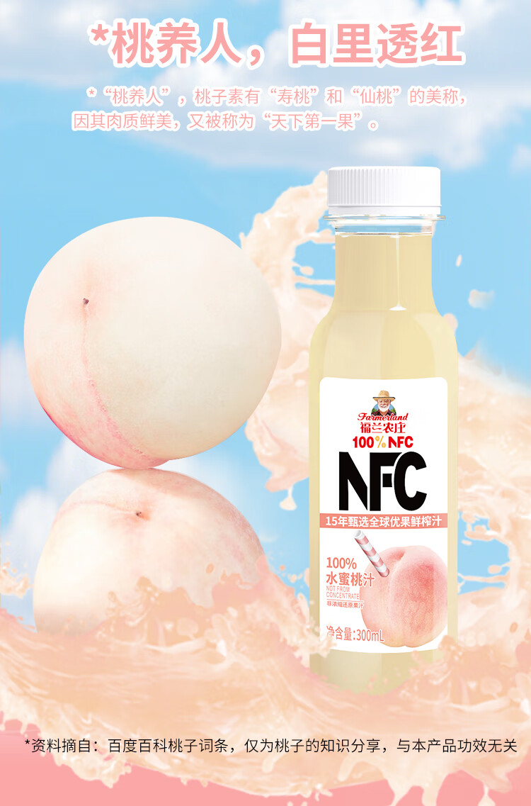 福兰农庄100%NFC鲜榨果汁配料表干净0脂肪饮料 NFC葡萄汁300ml*10瓶礼盒装