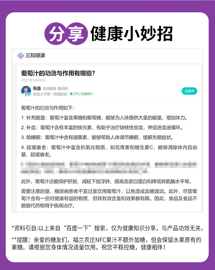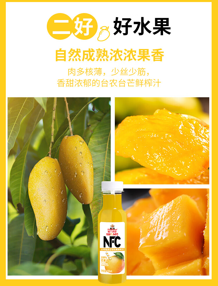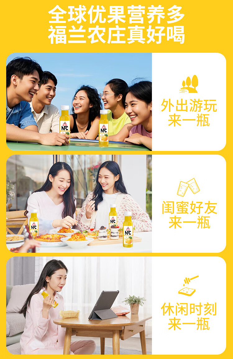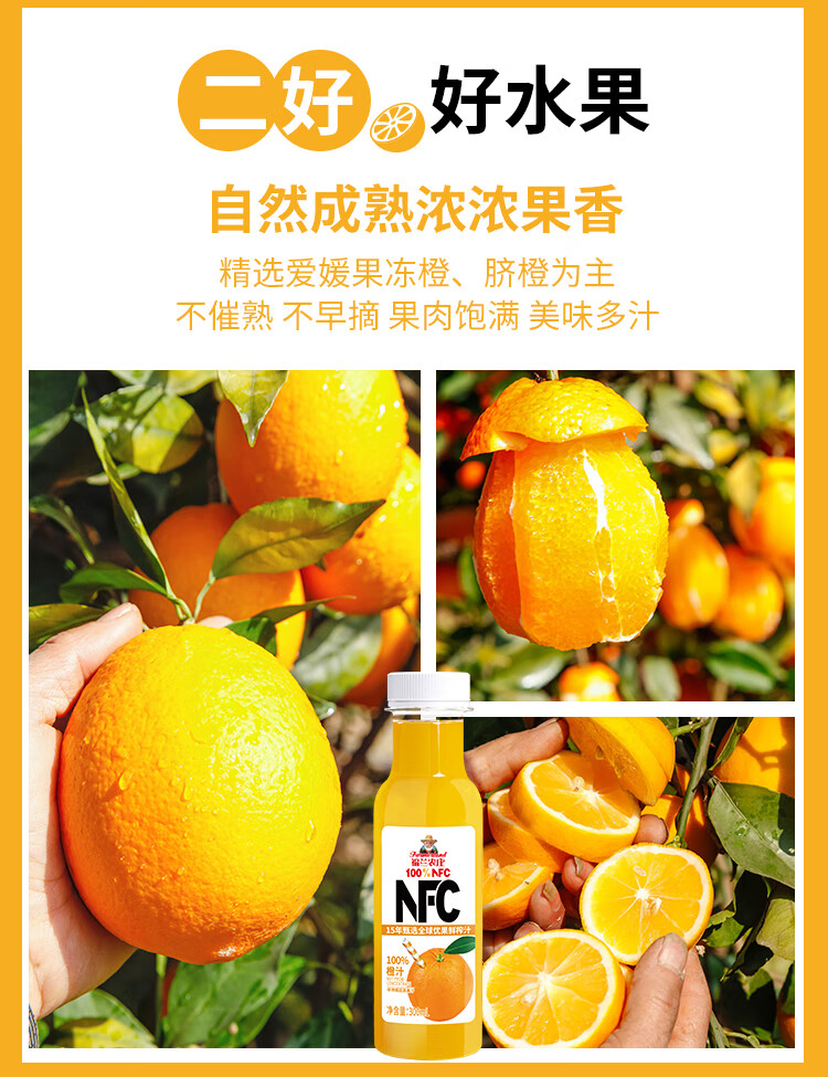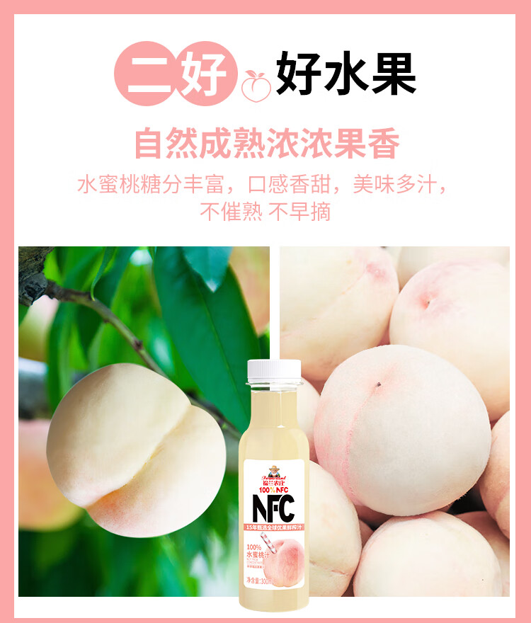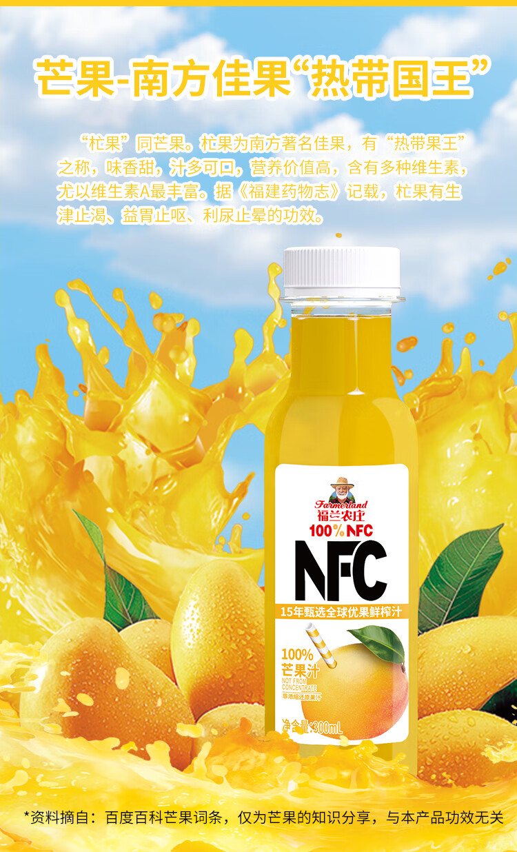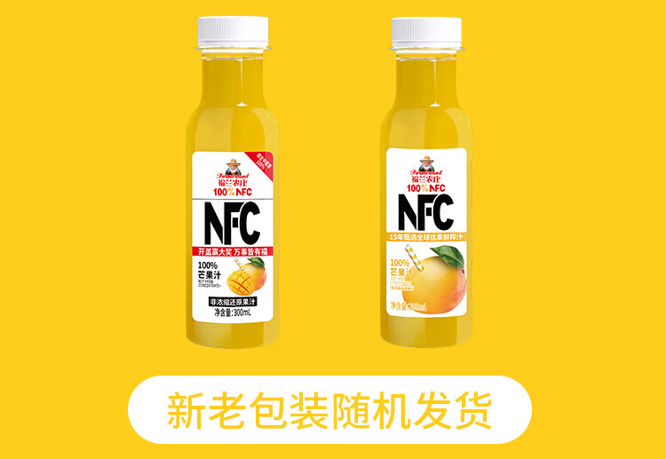 福兰农庄100%NFC鲜榨果汁配料表干净0脂肪饮料 NFC葡萄汁300ml*10瓶礼盒装