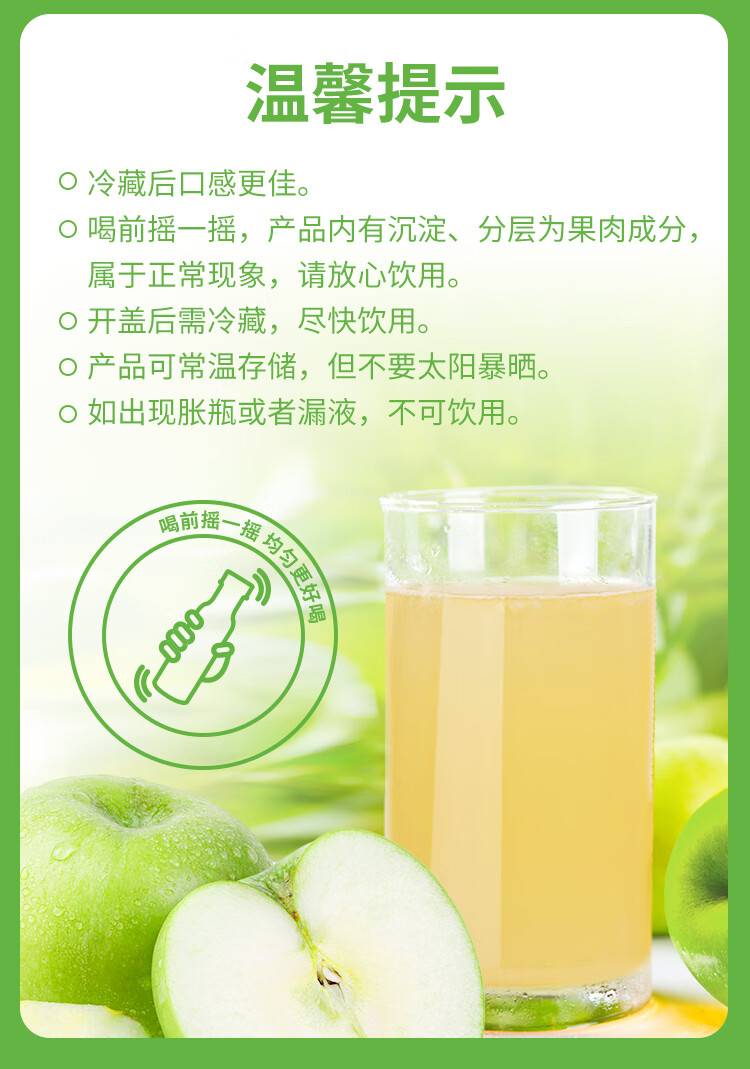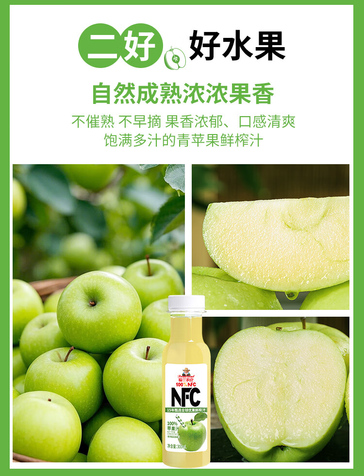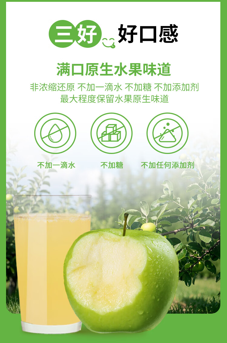 自然道夏季饮品果汁饮料 NFC100%阿克苏苹果汁258ml*6瓶