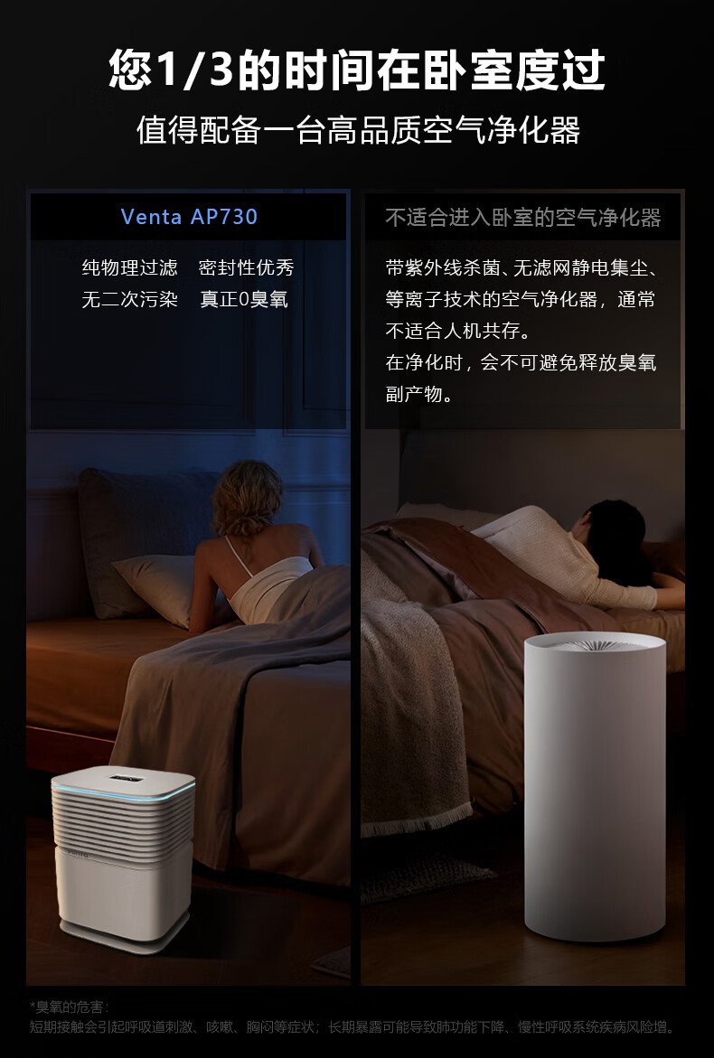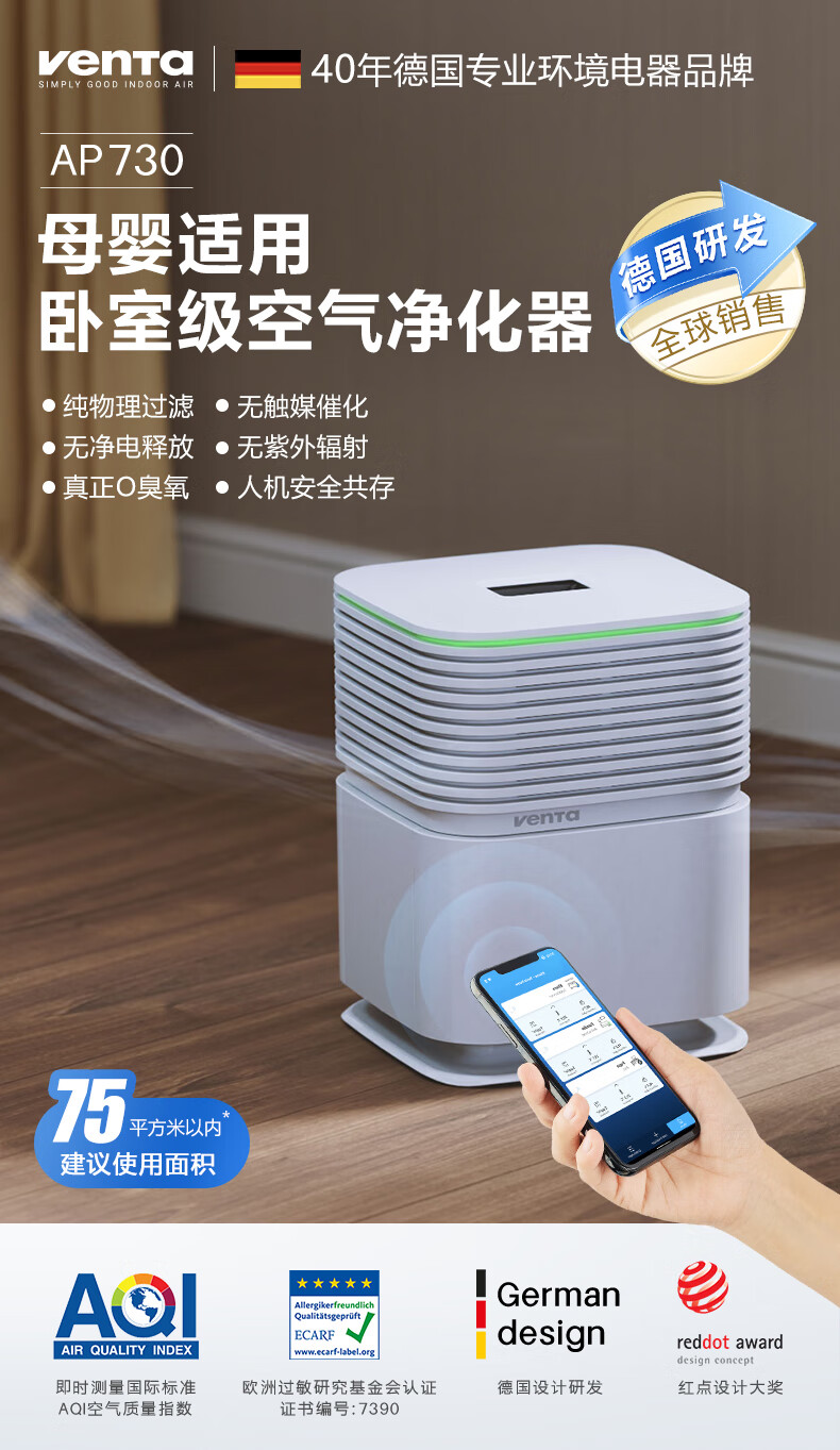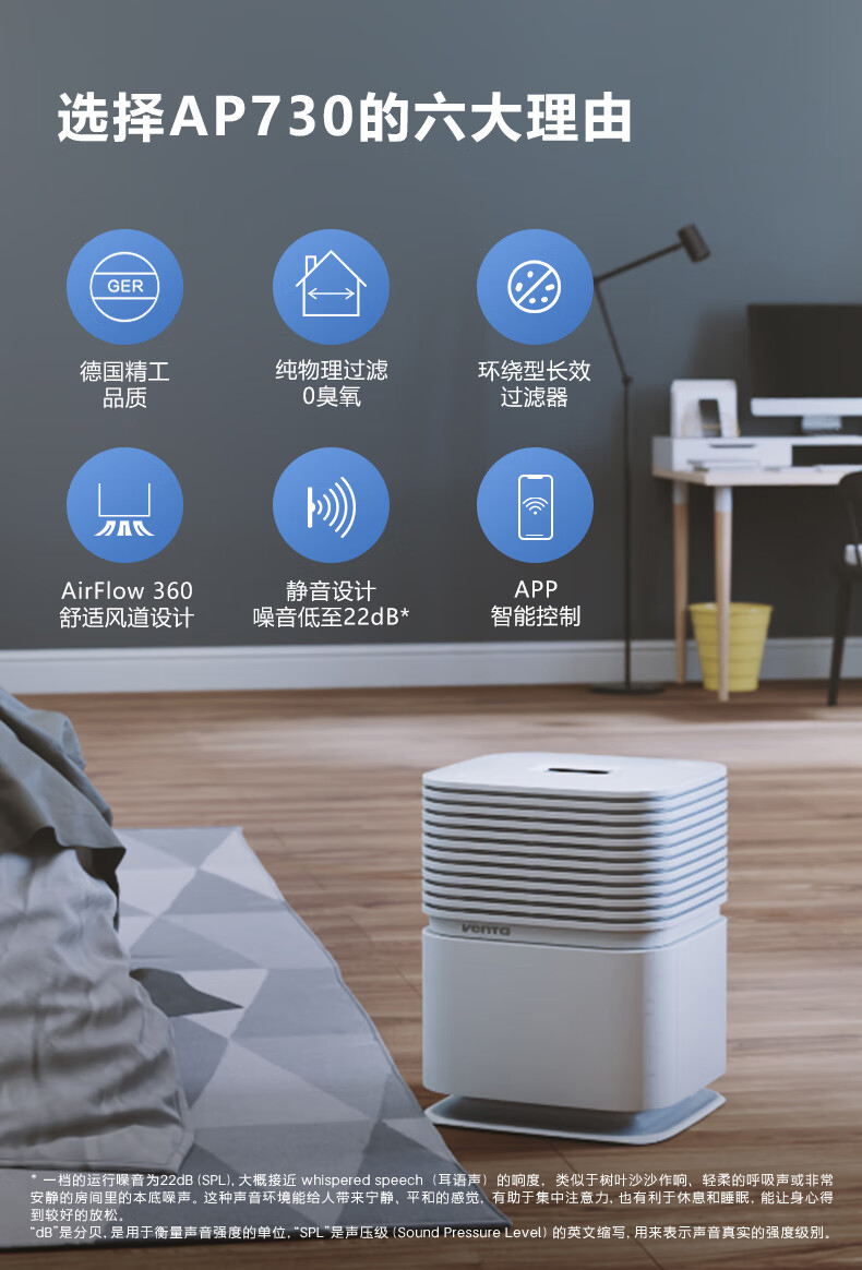 venTa【享3年滤网权益】空气净化器0臭氧母婴级卧室除甲流病毒过敏原病菌过滤花粉沙尘柳絮鼻炎家用文塔 AP730