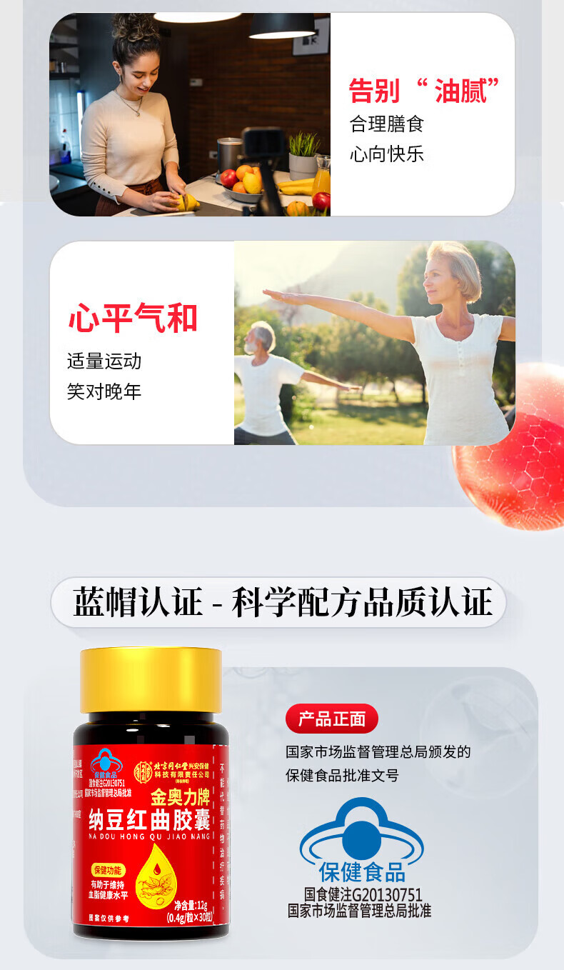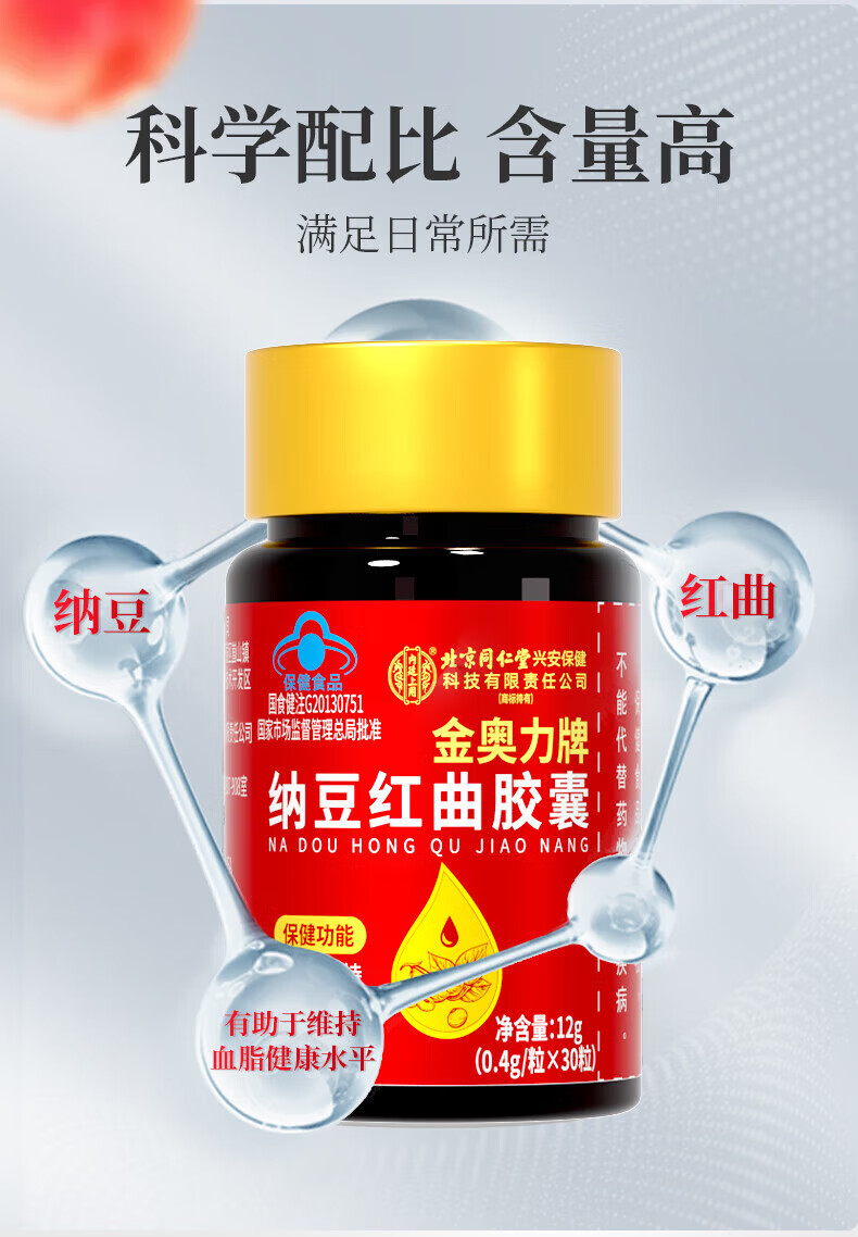 同仁堂北京同仁堂纳豆红曲胶囊辅助降血脂中老年心脑血管保健品30粒/瓶 【90粒】纳豆红曲胶囊 30粒*3瓶 特殊膳食营养食品无糖型 60片/盒