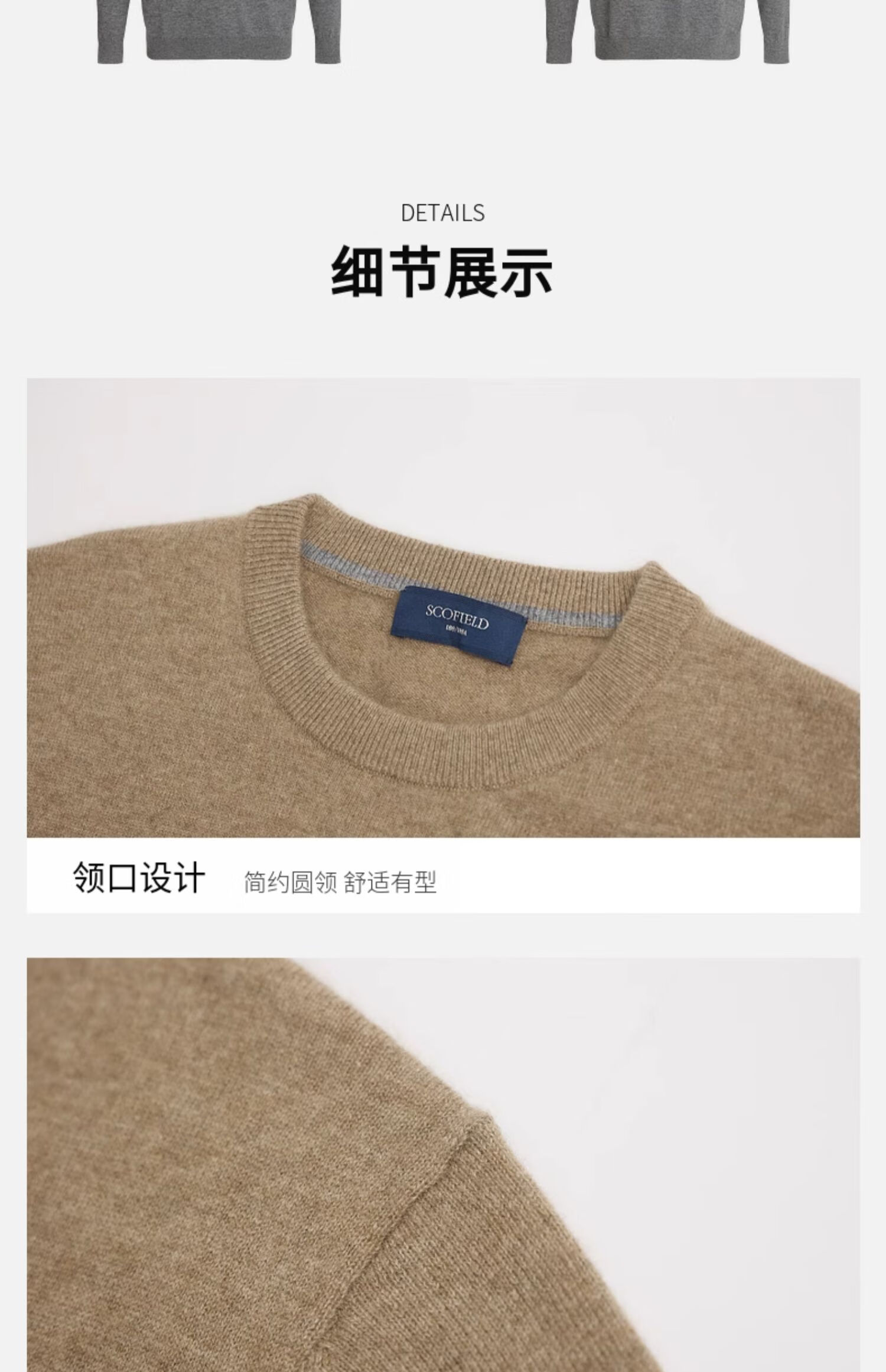 Scofield【山羊绒】SCOFIELD男装25年秋冬新品舒适柔软简约套头针织衫毛衣 灰色 M (170)