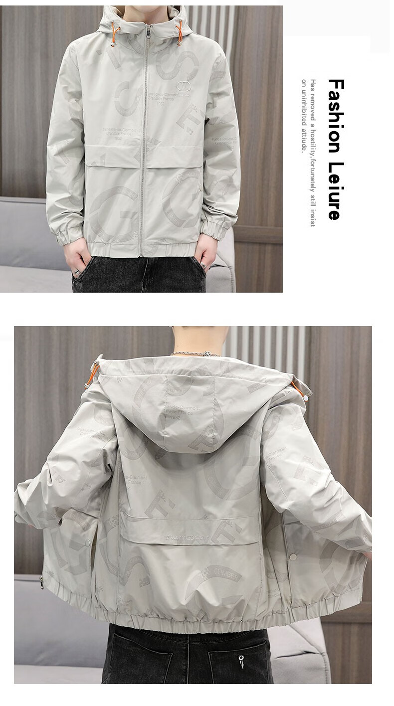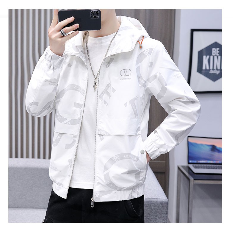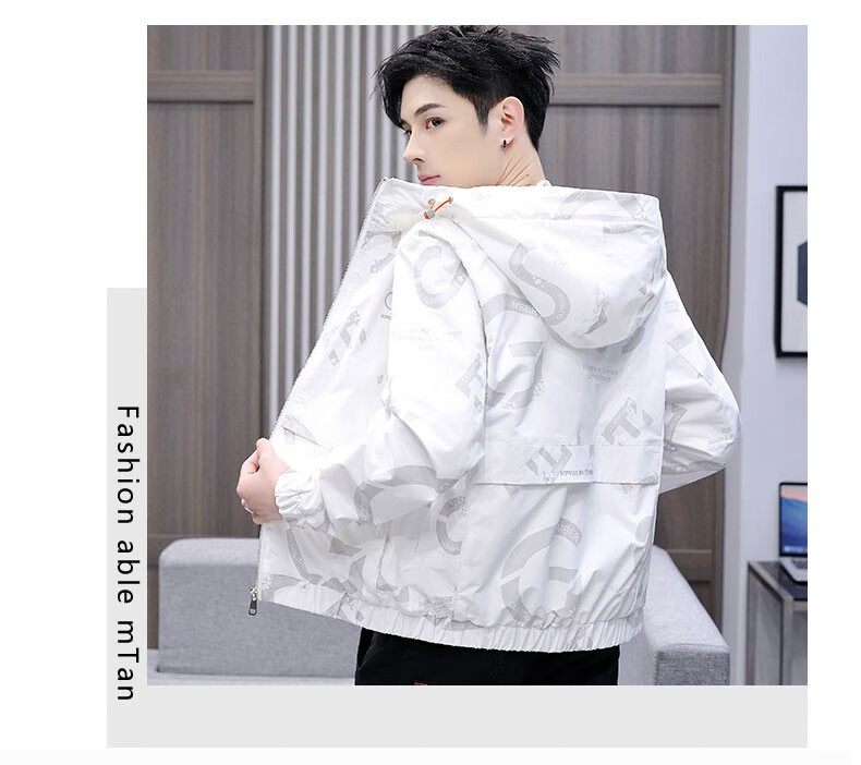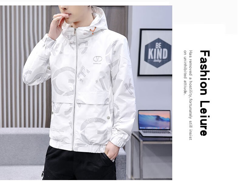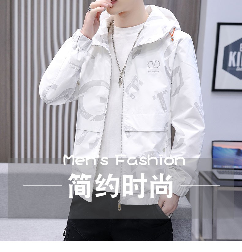酷定律外套男秋冬季加棉可选连帽夹克男时尚休闲褂子加厚可选男装上衣服 5877白色 常规 L