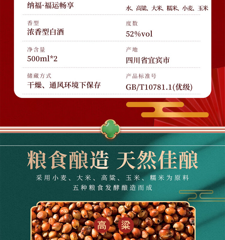 纳福 五粮液股份公司 福运畅享 52度 500mL 2瓶 礼盒装
