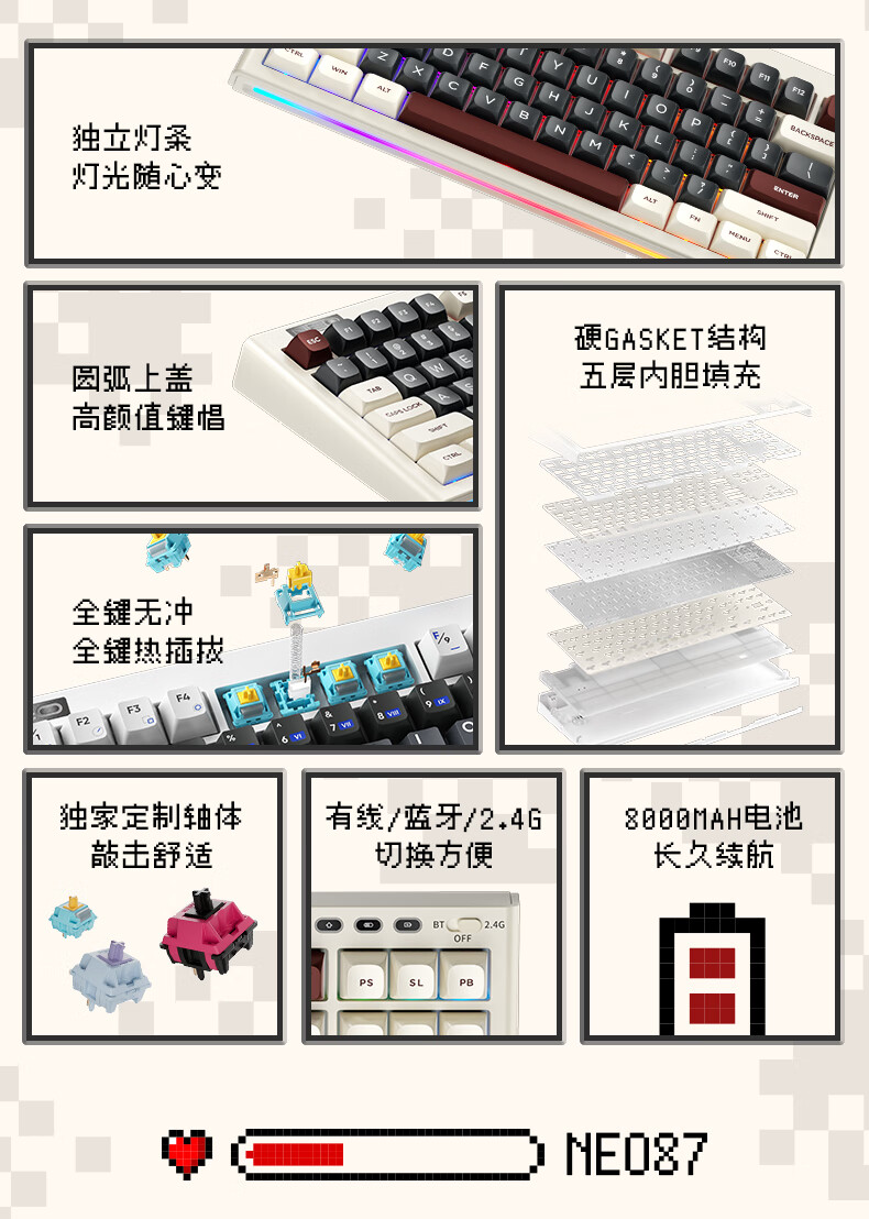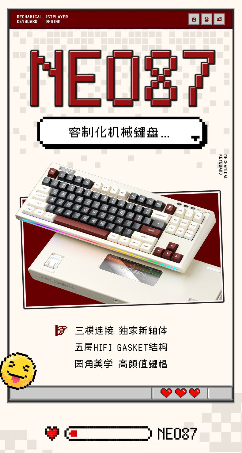 首席玩家(1st player)NEO三模客制化机械键盘无线蓝牙Gasket结构全键热插拔办公电竞专用键盘RGB自定义驱动 星际迷航 三模 88键