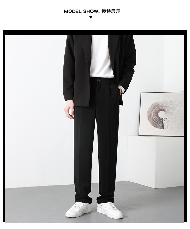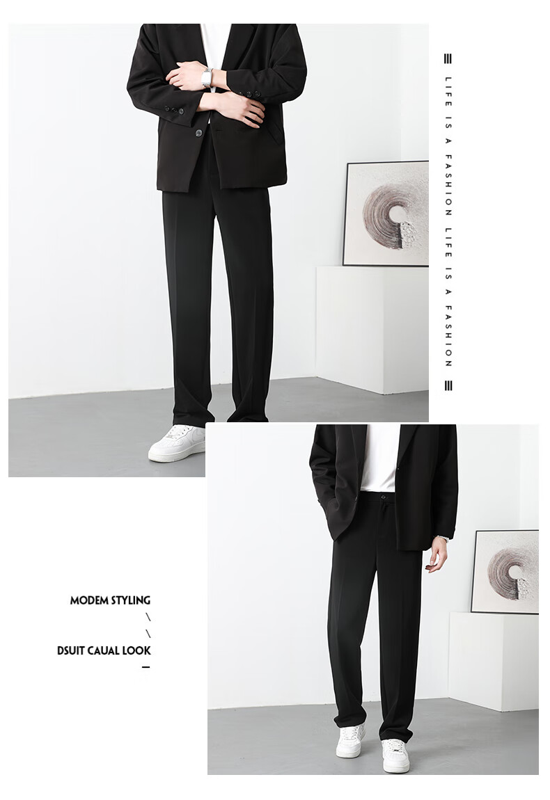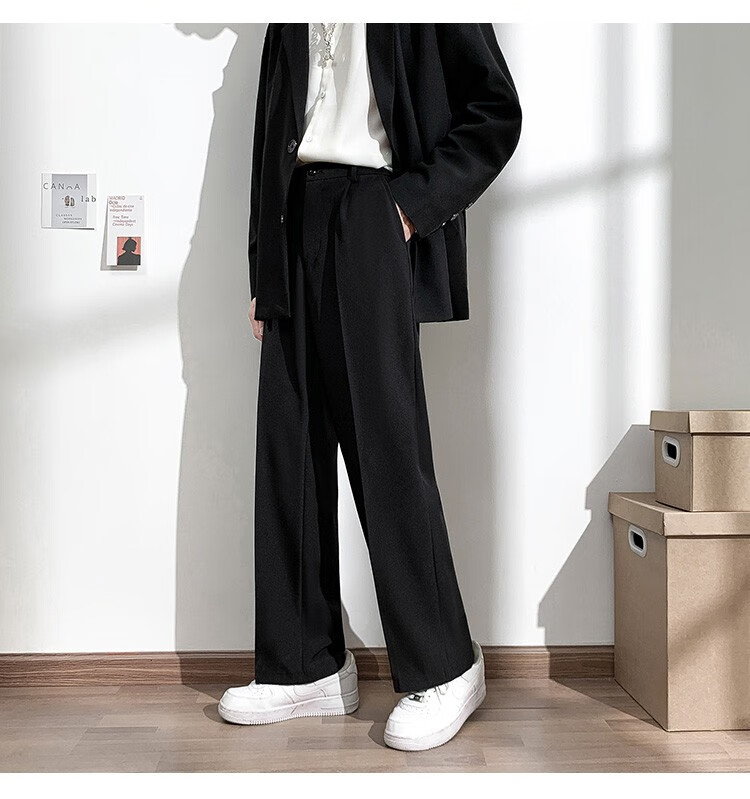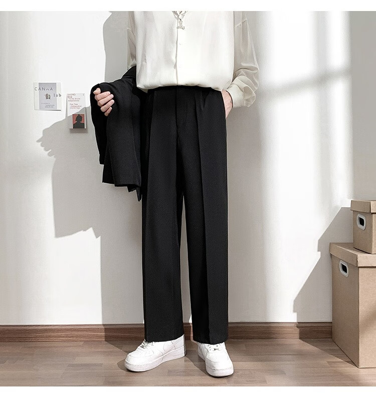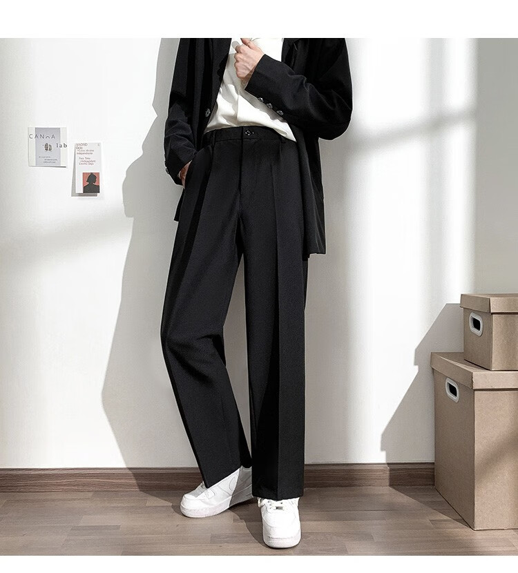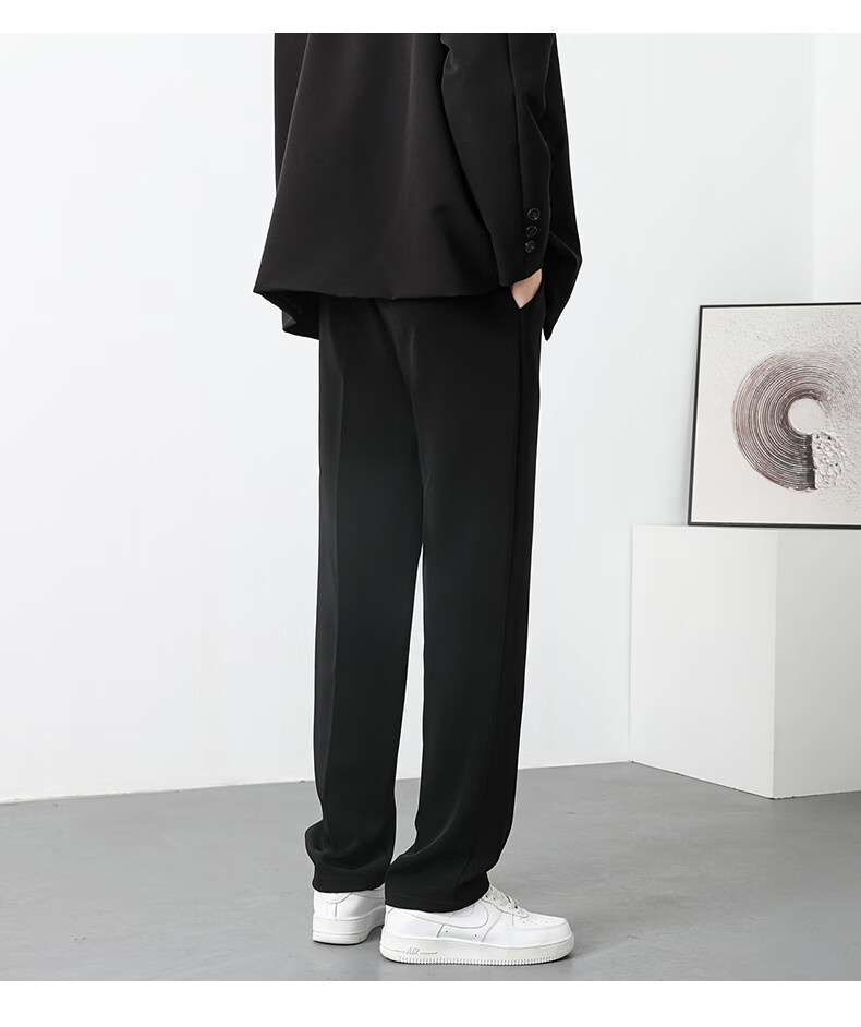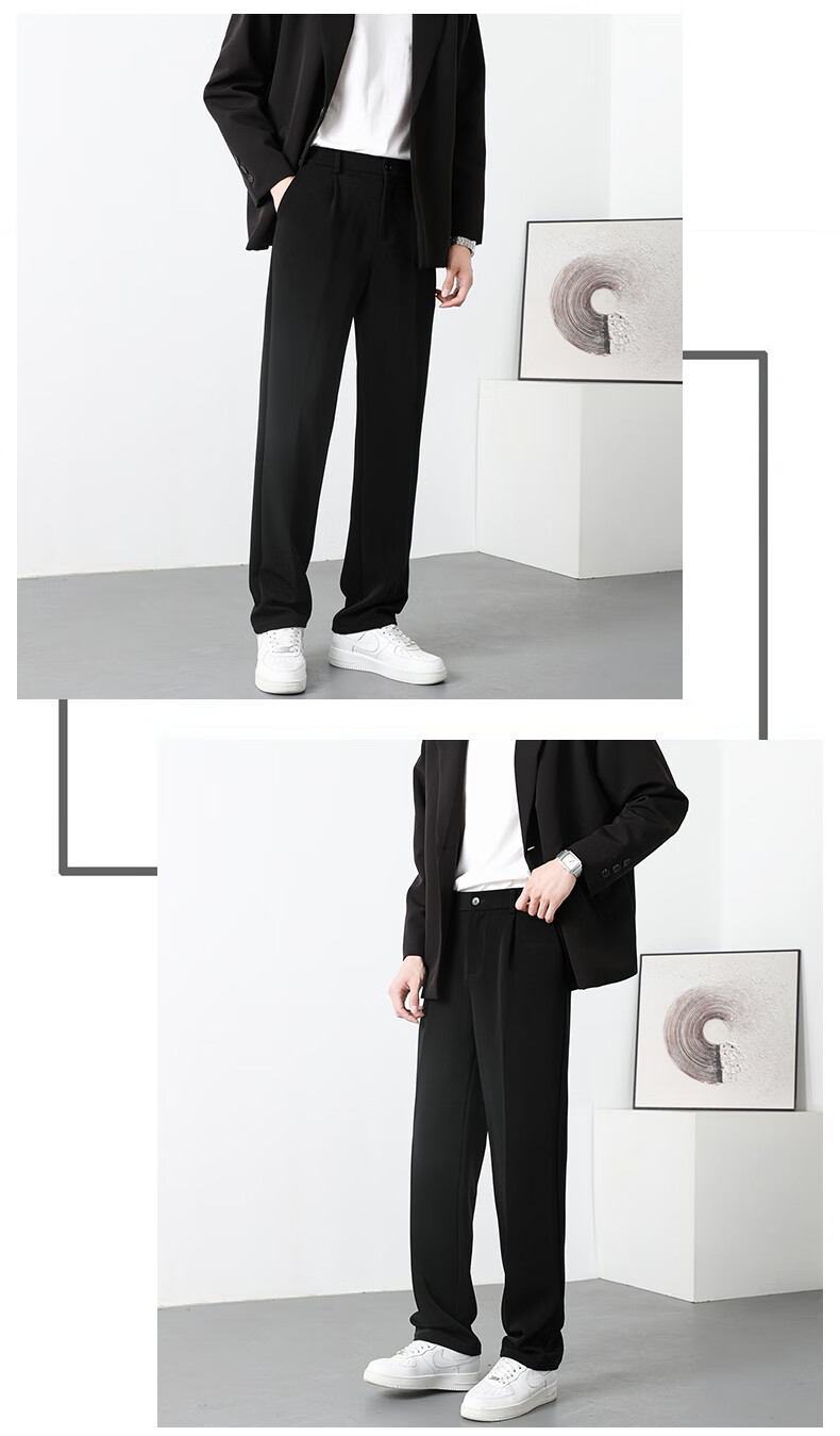 PBOA宽松西裤男学生垂感松紧腰夏季薄基础款商务休闲直筒阔腿长西装裤 黑色【长裤】 3XL (建议165-180斤)
