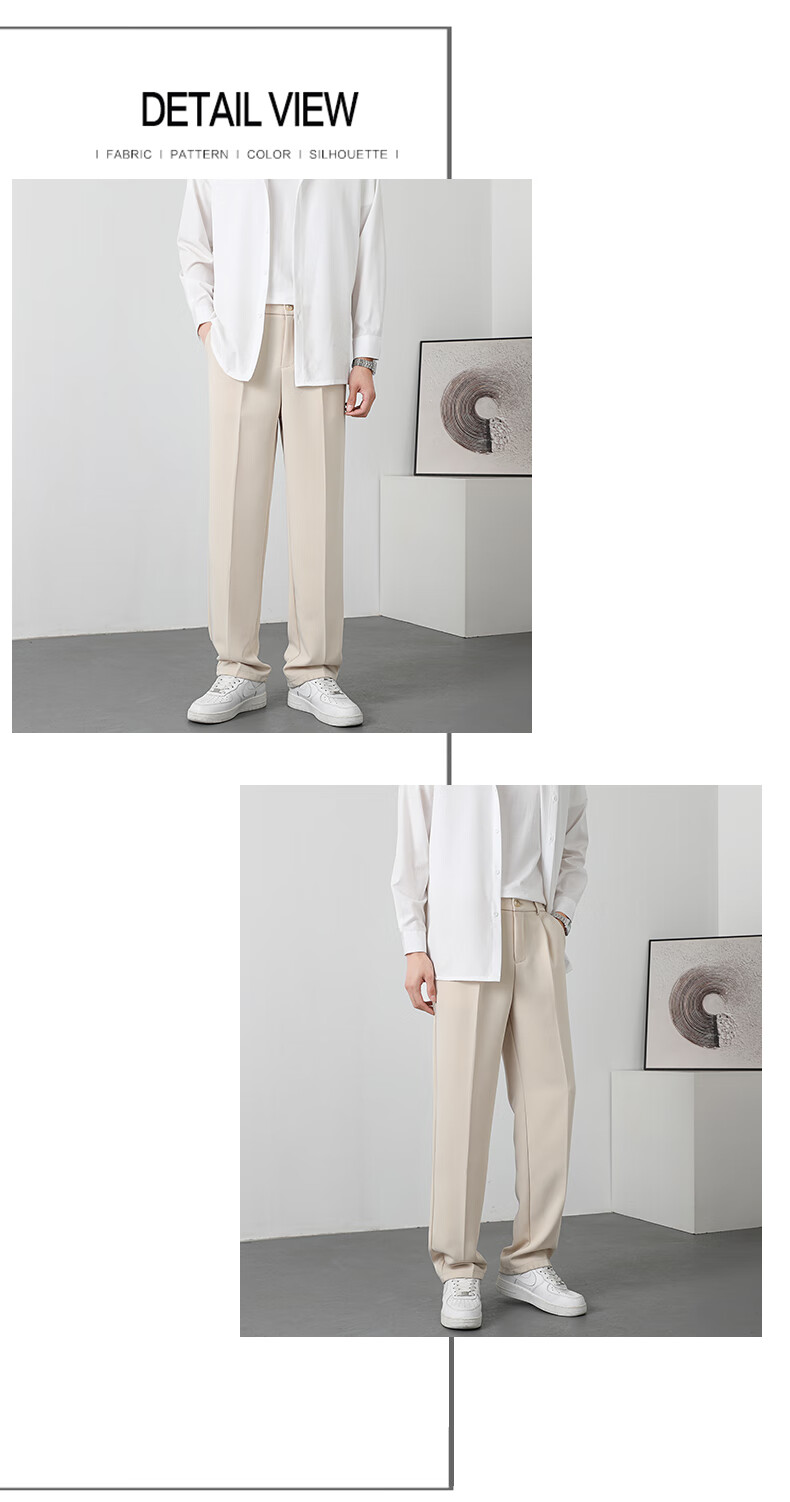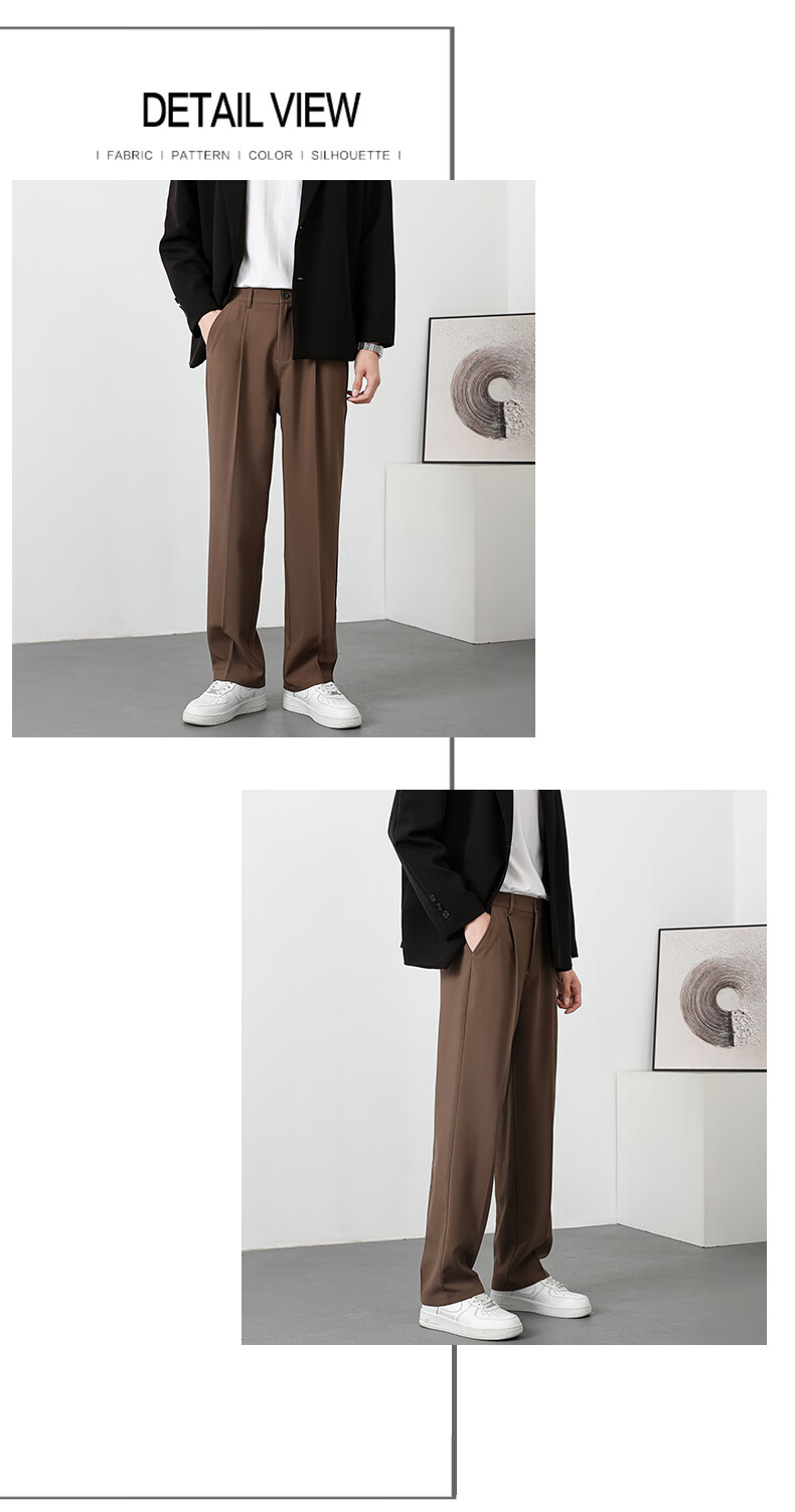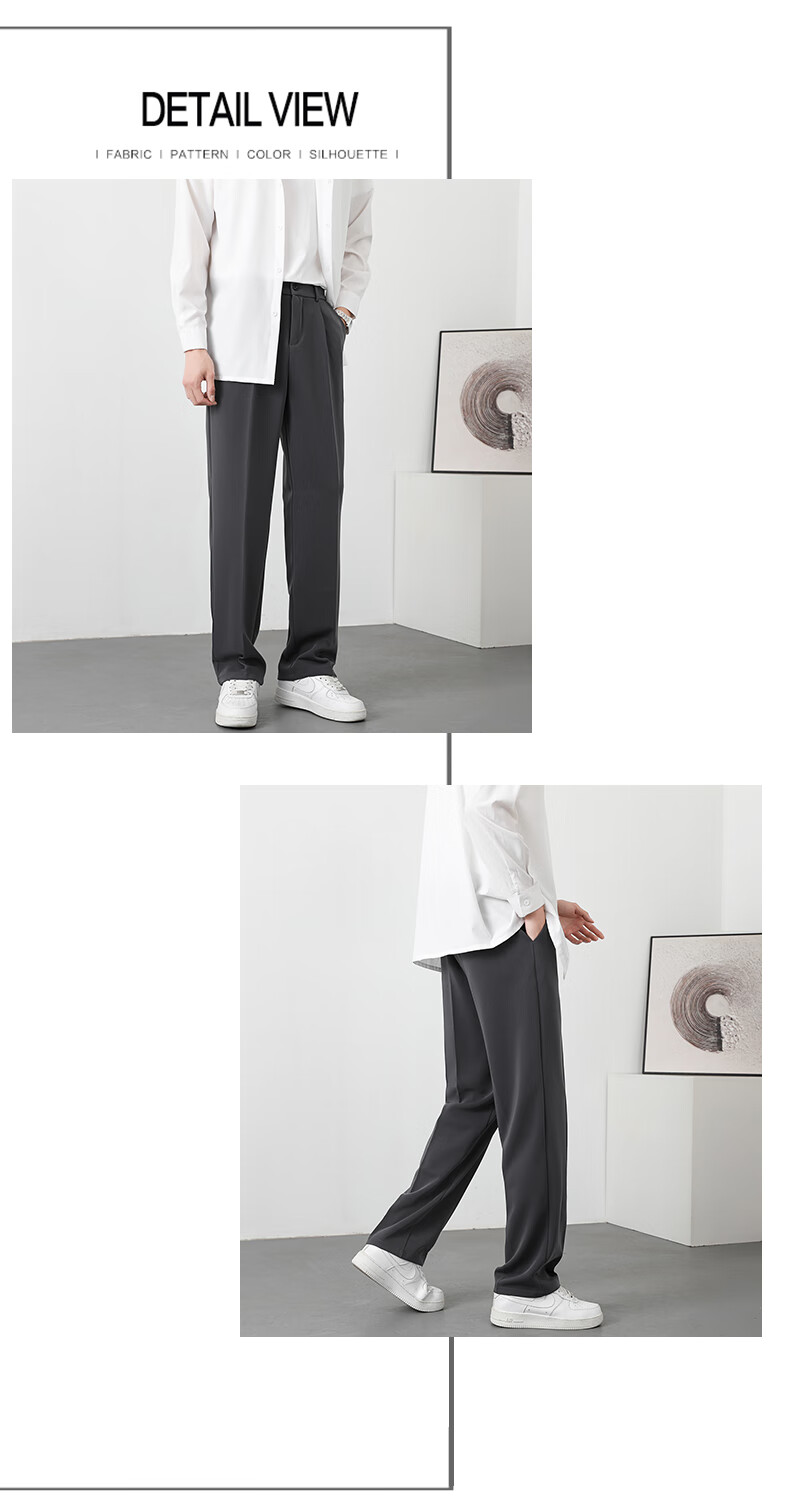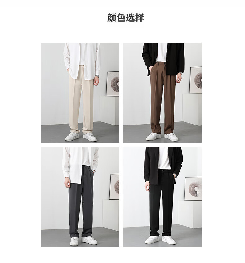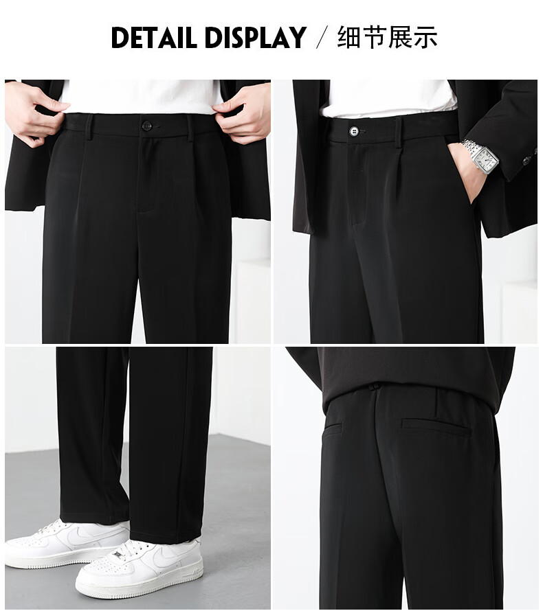 PBOA宽松西裤男学生垂感松紧腰夏季薄基础款商务休闲直筒阔腿长西装裤 黑色【长裤】 3XL (建议165-180斤)