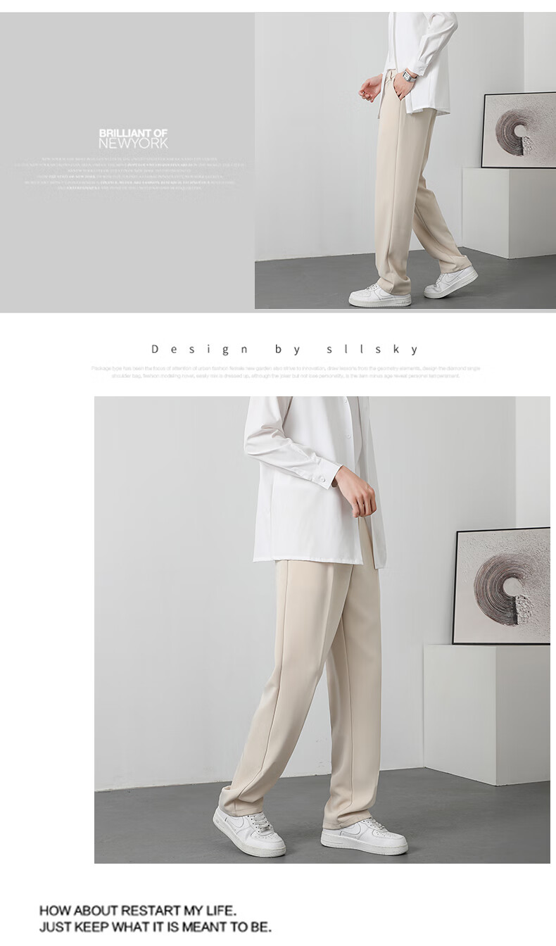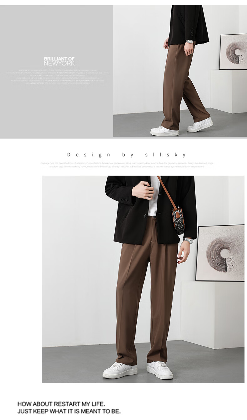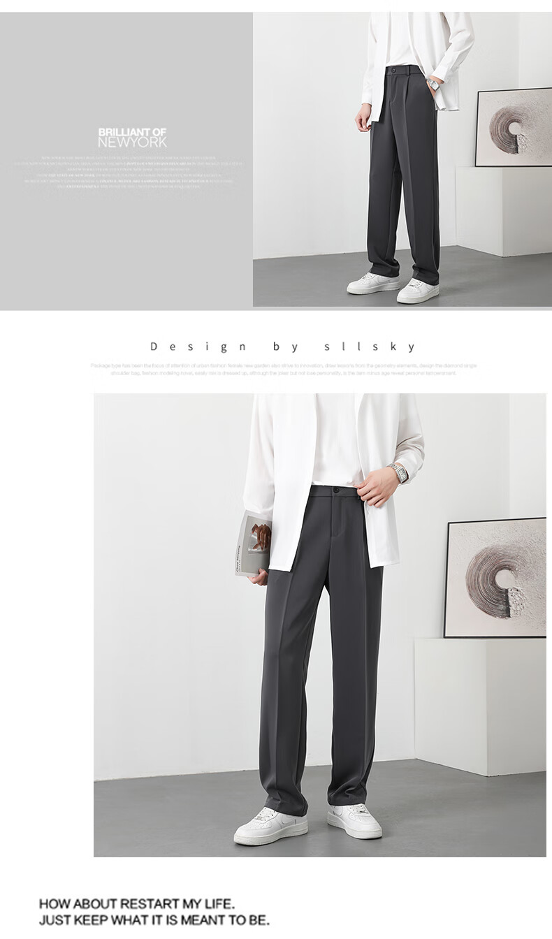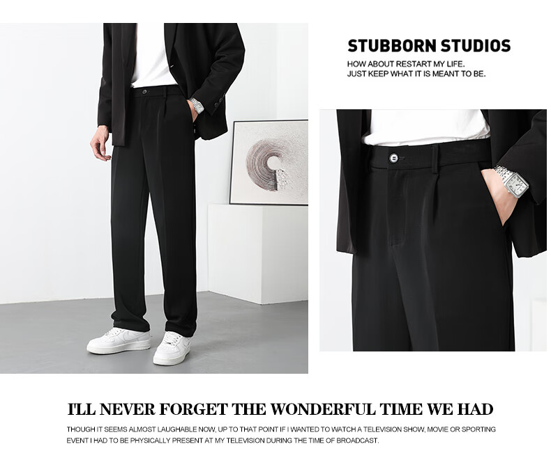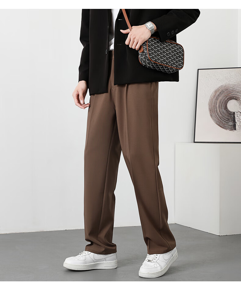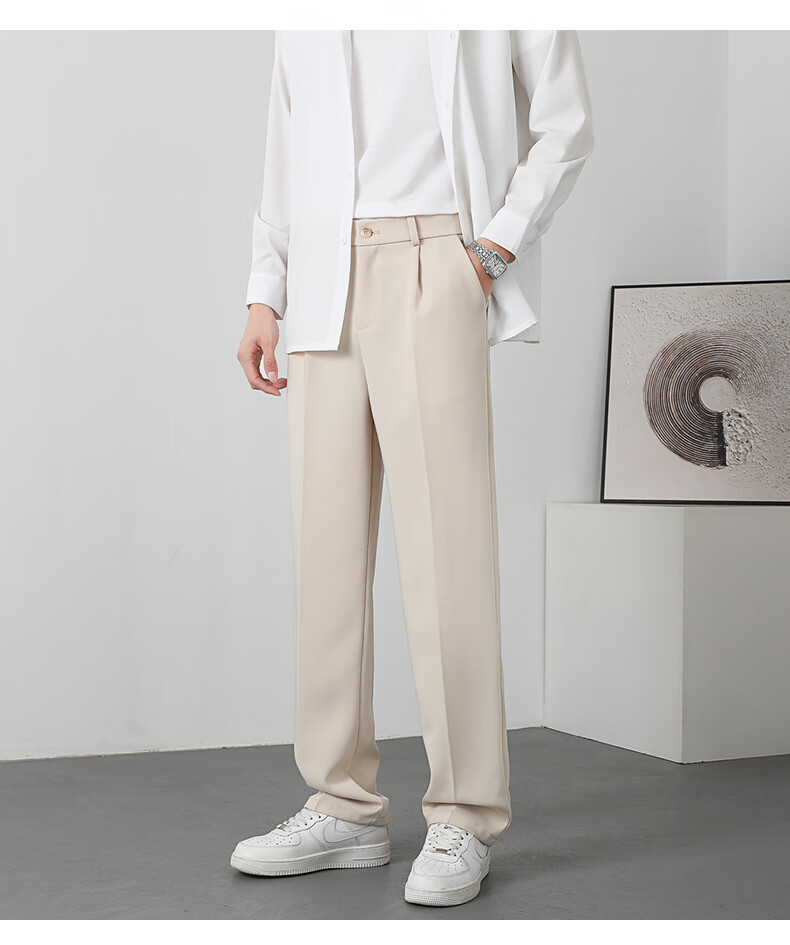 PBOA宽松西裤男学生垂感松紧腰夏季薄基础款商务休闲直筒阔腿长西装裤 黑色【长裤】 3XL (建议165-180斤)
