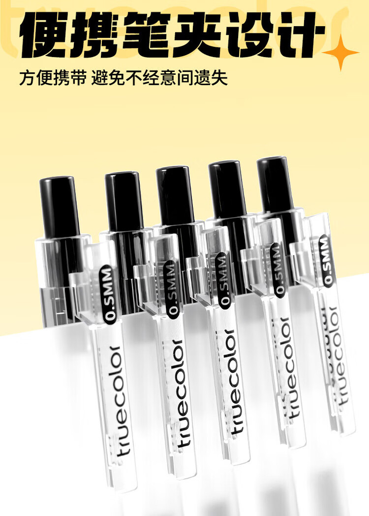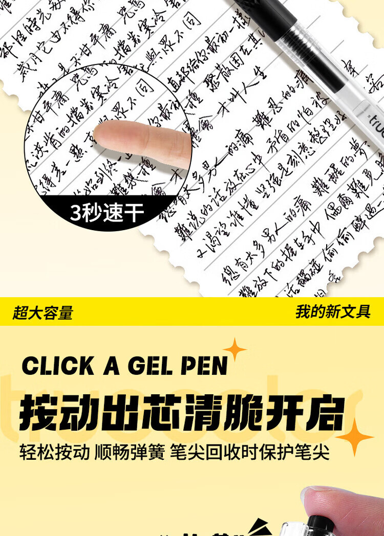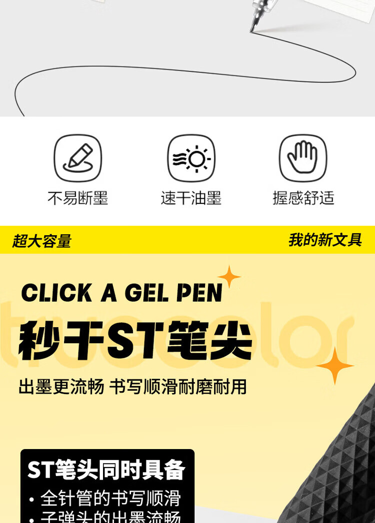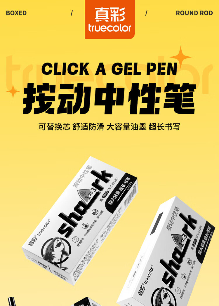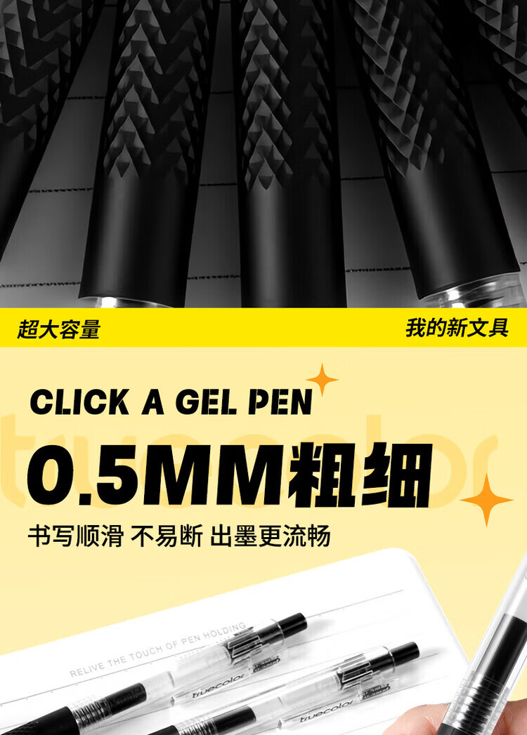 真彩(TRUECOLOR)超长书写按动中性笔速干0.5mm高颜值st笔头初高中生用刷题笔大容量黑笔顺滑学生用黑色学生考试笔 【超大容量大鲨鱼】6支装/1支顶3支