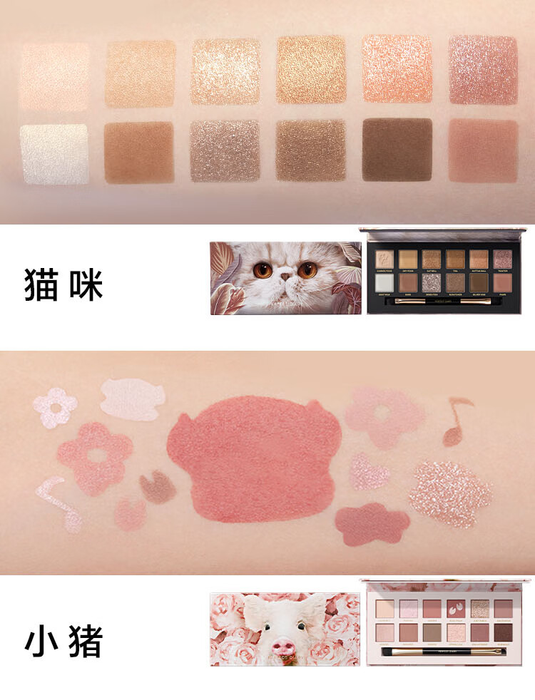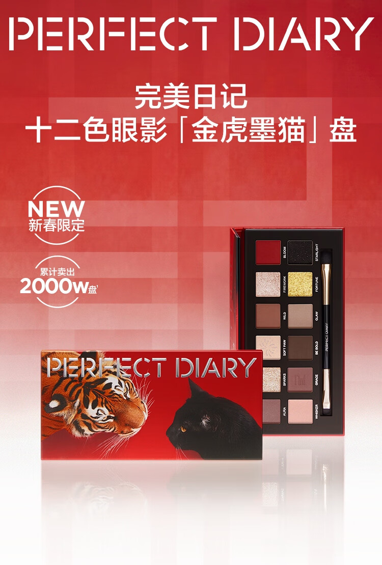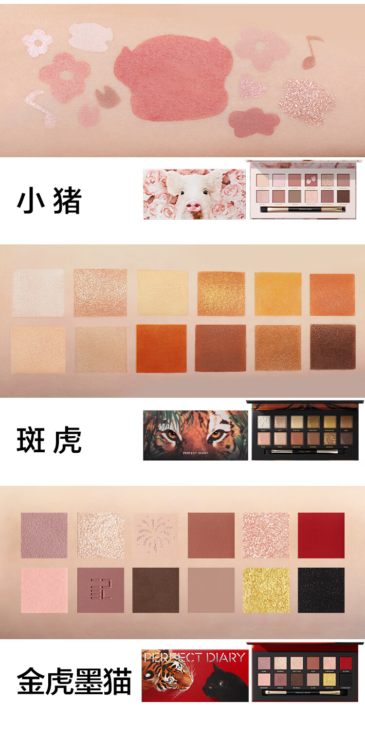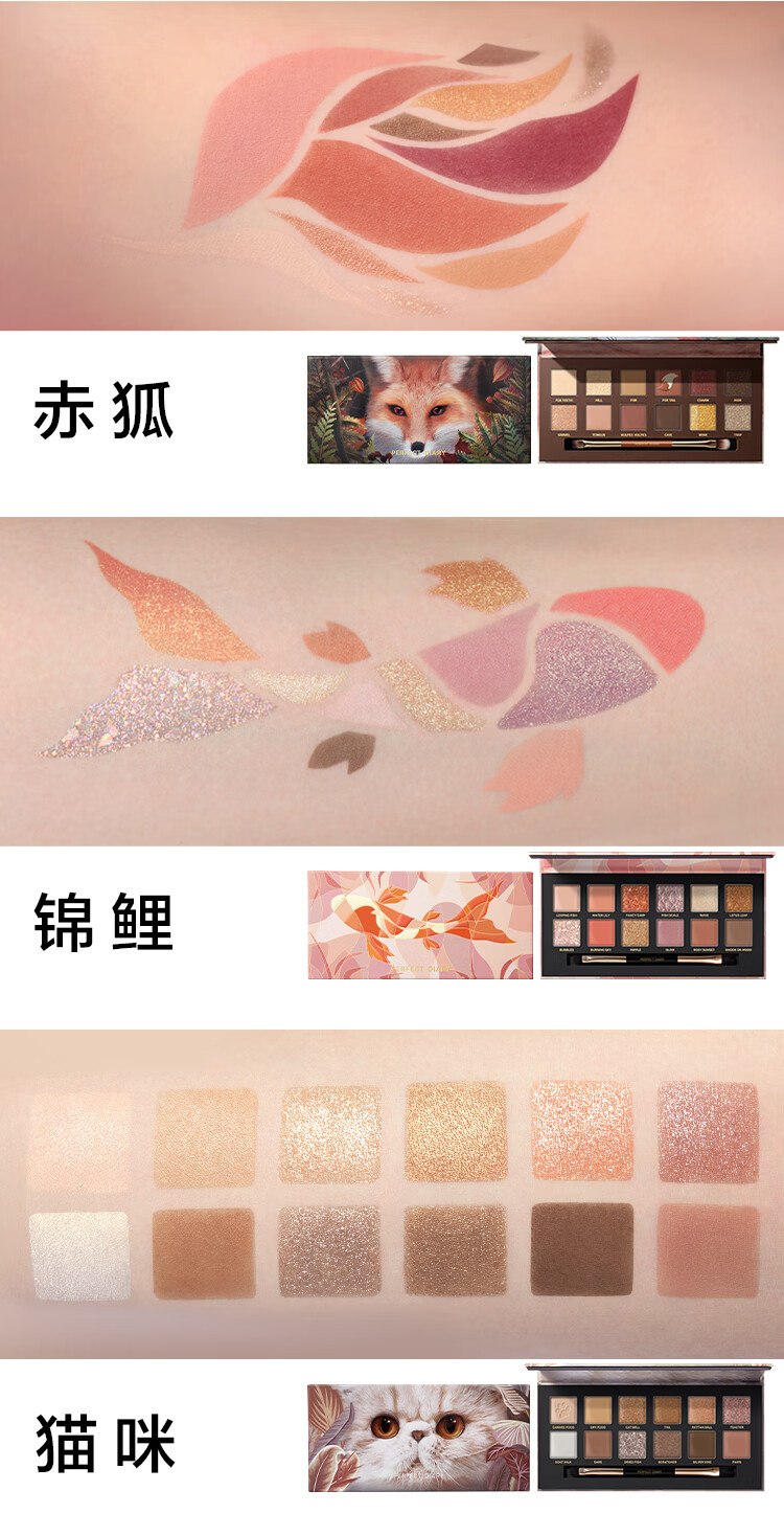 完美日记(PERFECT DIARY)探险家十二色动物眼影盘猫咪小猪百搭生日礼物送女友 锦鲤(蜜桃橘)