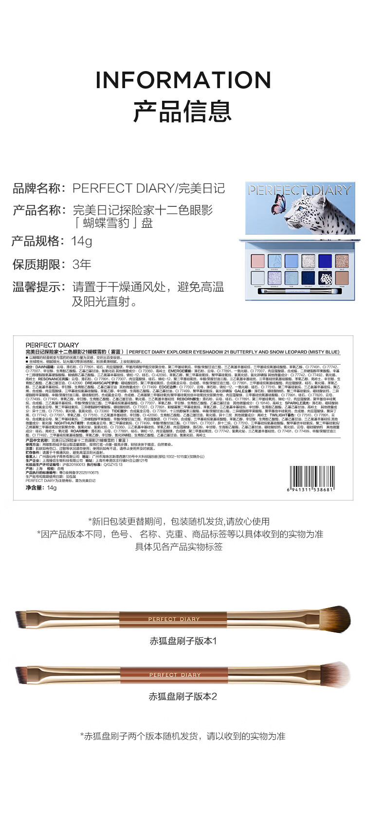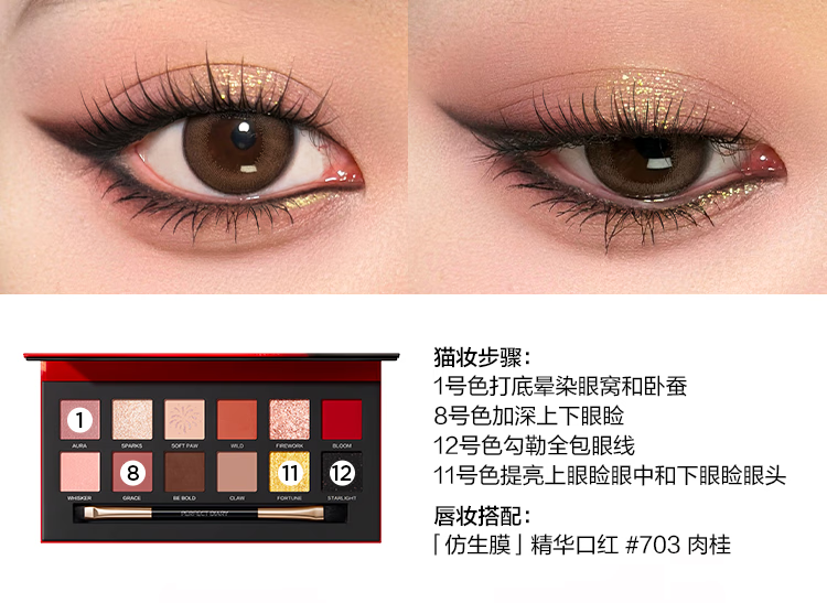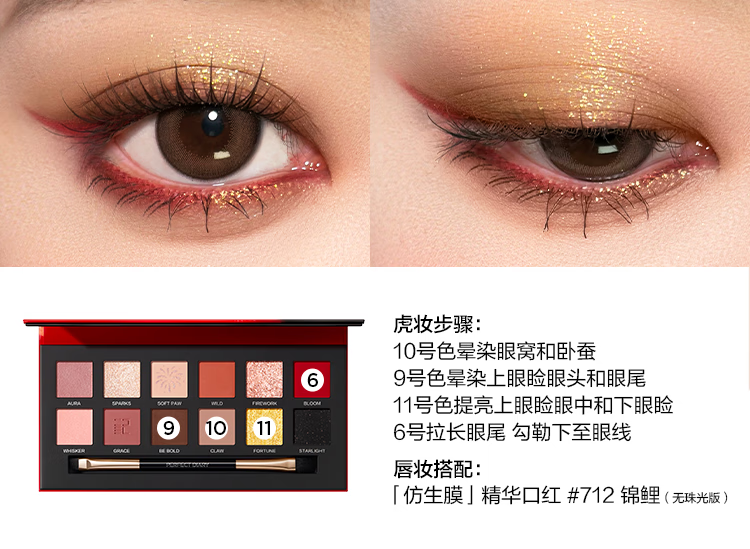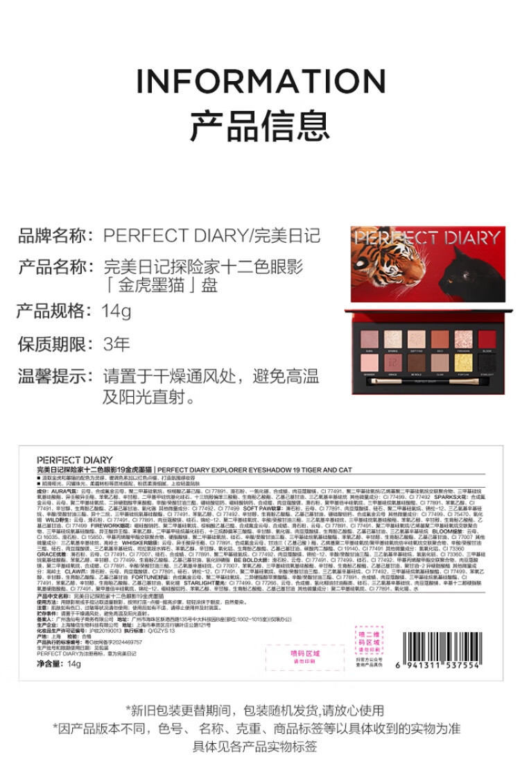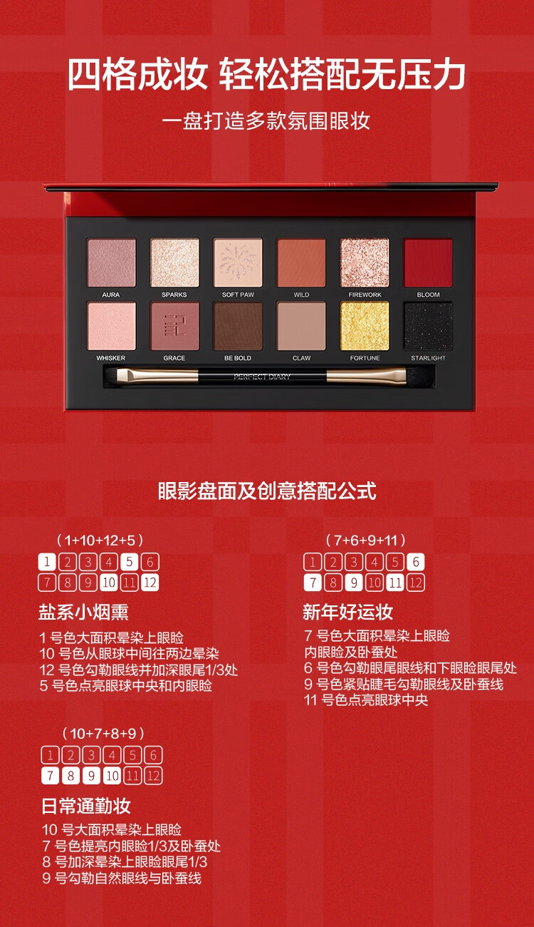 完美日记(PERFECT DIARY)探险家十二色动物眼影盘猫咪小猪百搭生日礼物送女友 锦鲤(蜜桃橘)