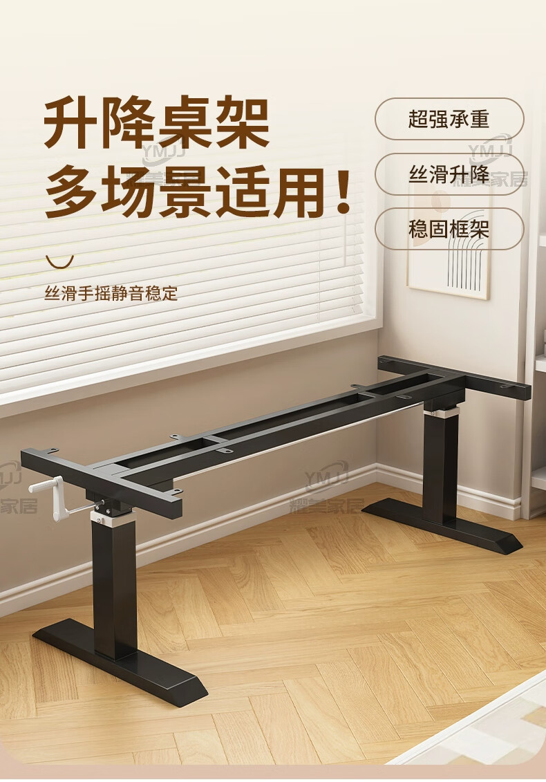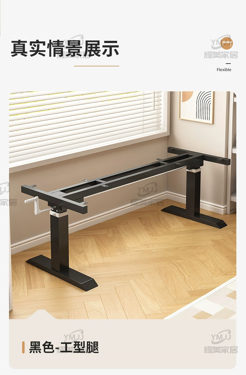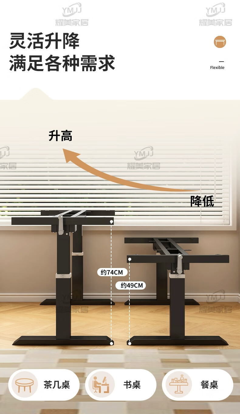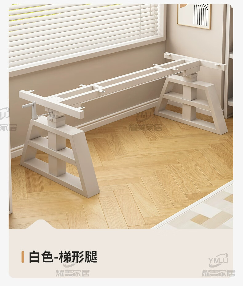 月康曼升降桌腿岩板茶几餐桌脚架支撑底座钢架书桌电脑桌可调节桌腿架子 169*49*高49-74 适用桌面180*60 梯形腿(白色)