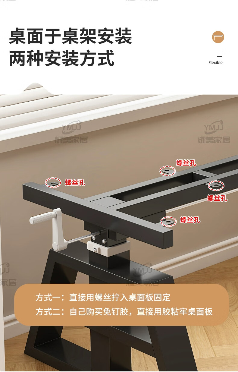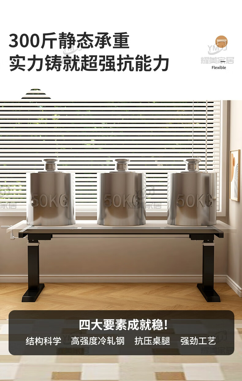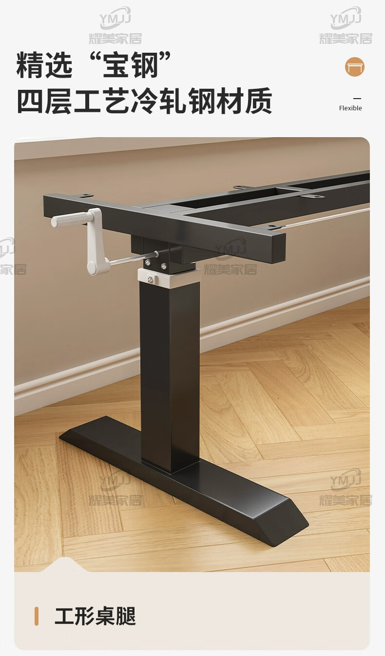 月康曼升降桌腿岩板茶几餐桌脚架支撑底座钢架书桌电脑桌可调节桌腿架子 169*49*高49-74 适用桌面180*60 梯形腿(白色)