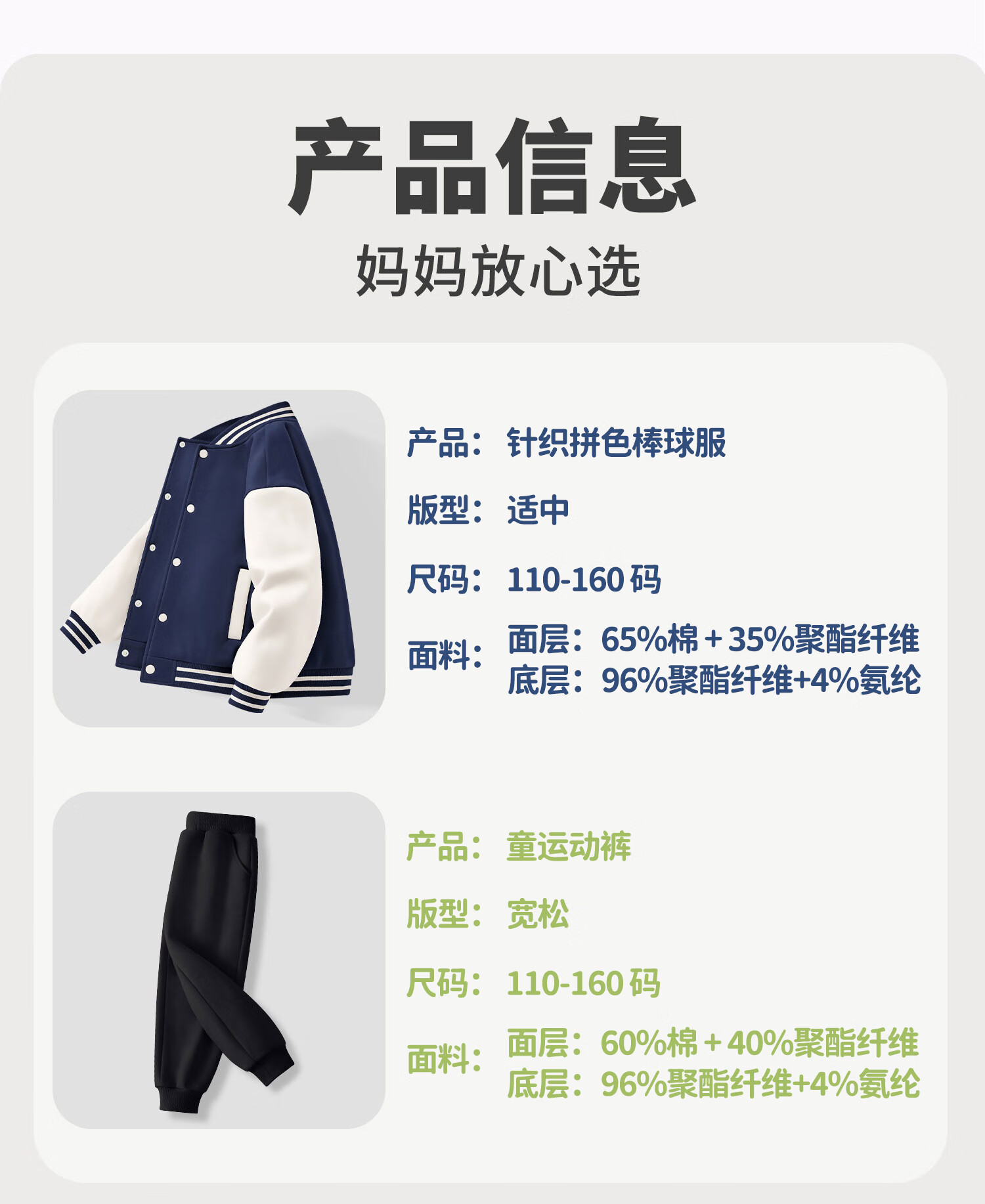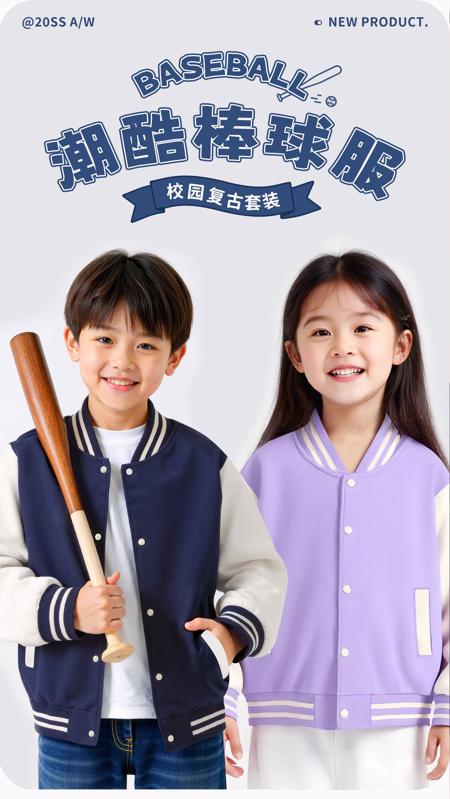 马克华菲男童棒球服套装春秋2025秋季新款儿童炸街潮两件套 m漫游K_m漫游_背藏青+m漫游K藏青 130