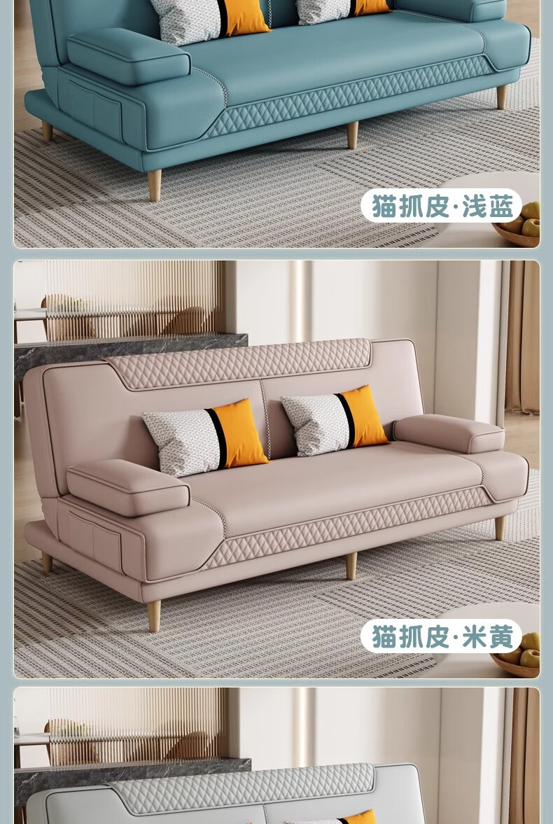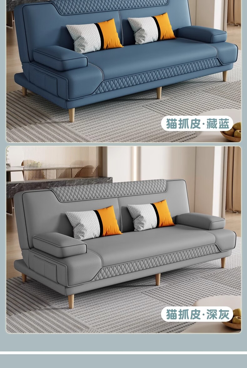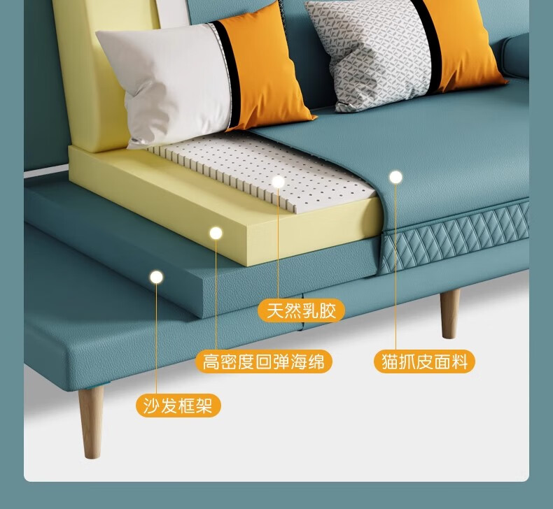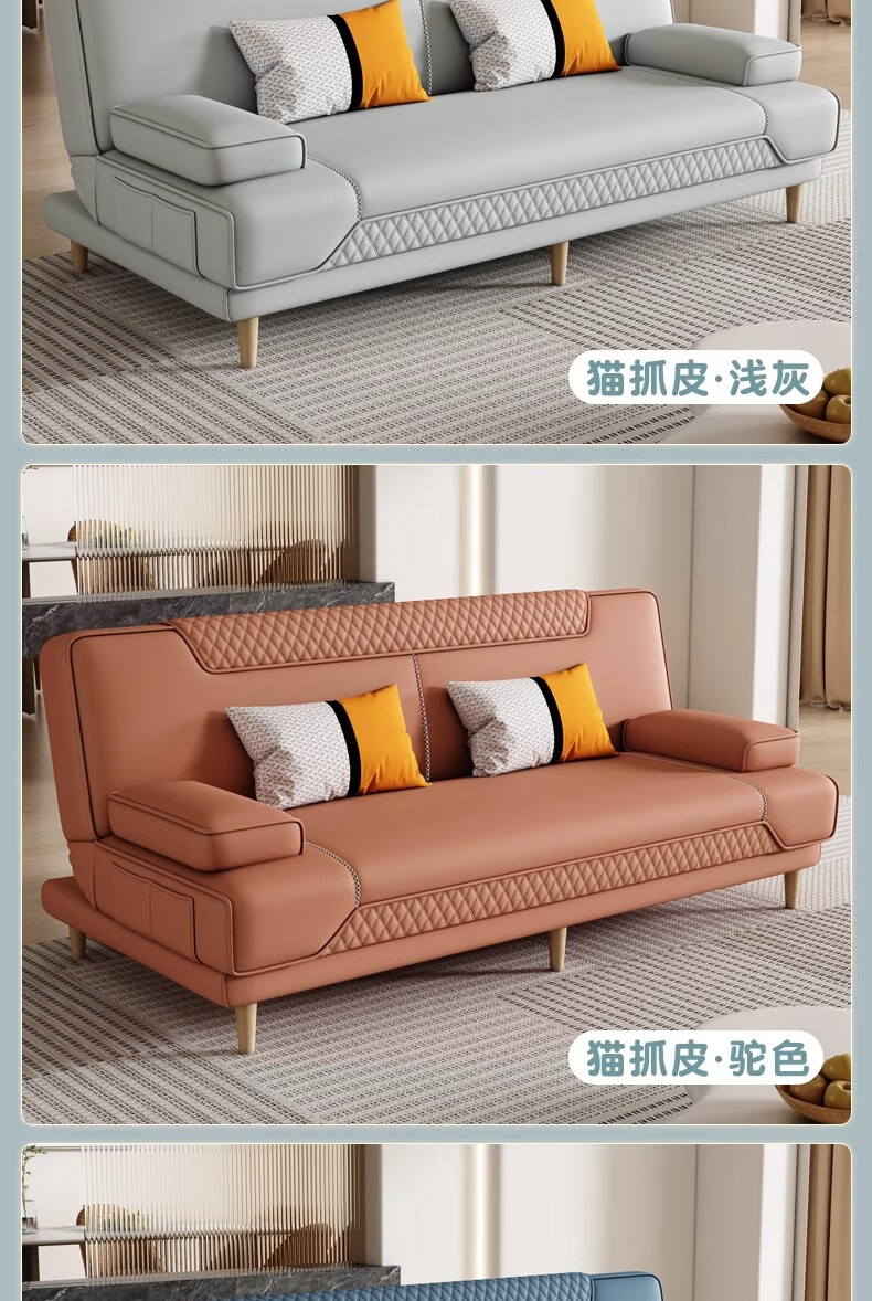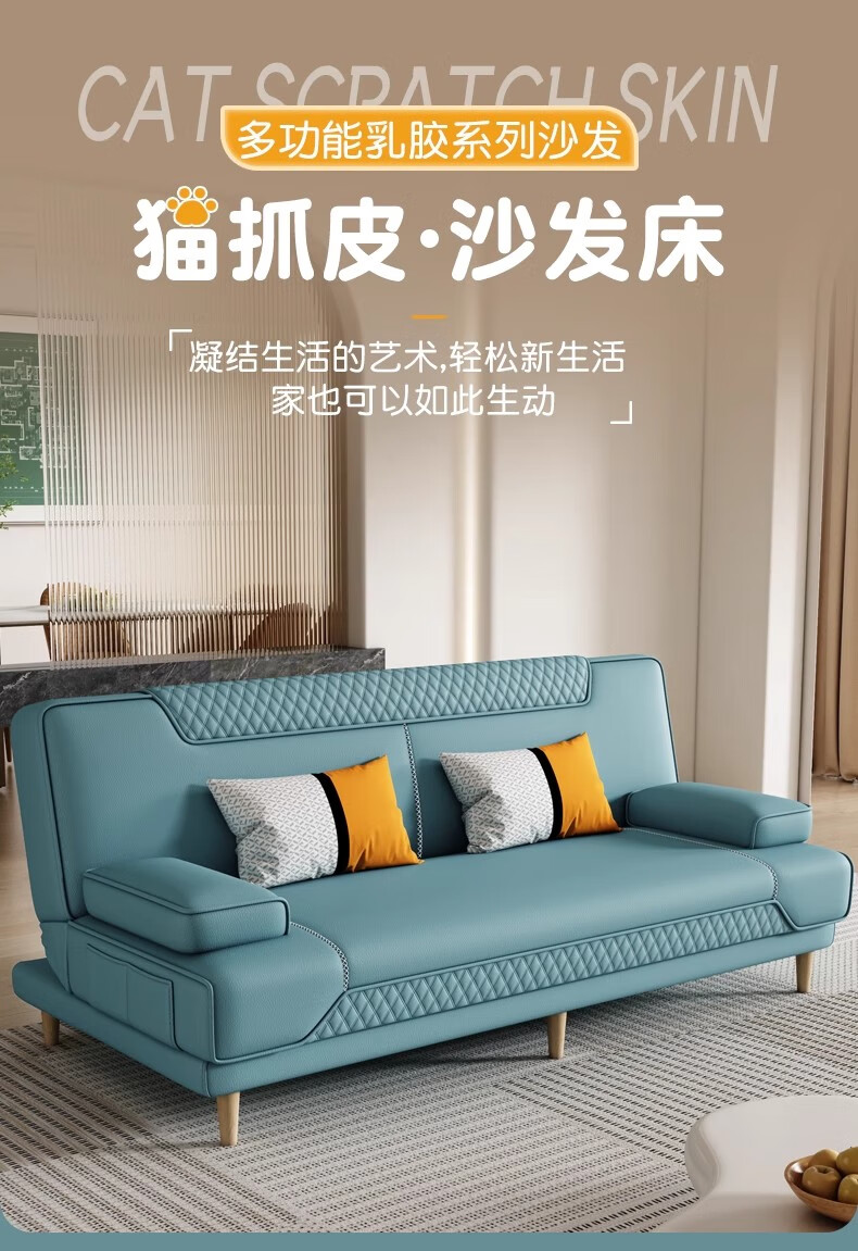 清茵阁2025新款现代简约多功能折叠沙发床一体两用客厅小户型懒人沙发 【新款猫爪皮+实木脚】米黄 【抑菌乳胶款】升级款2*1.2米(2腰枕2扶手)