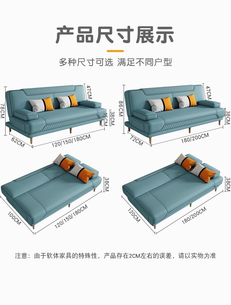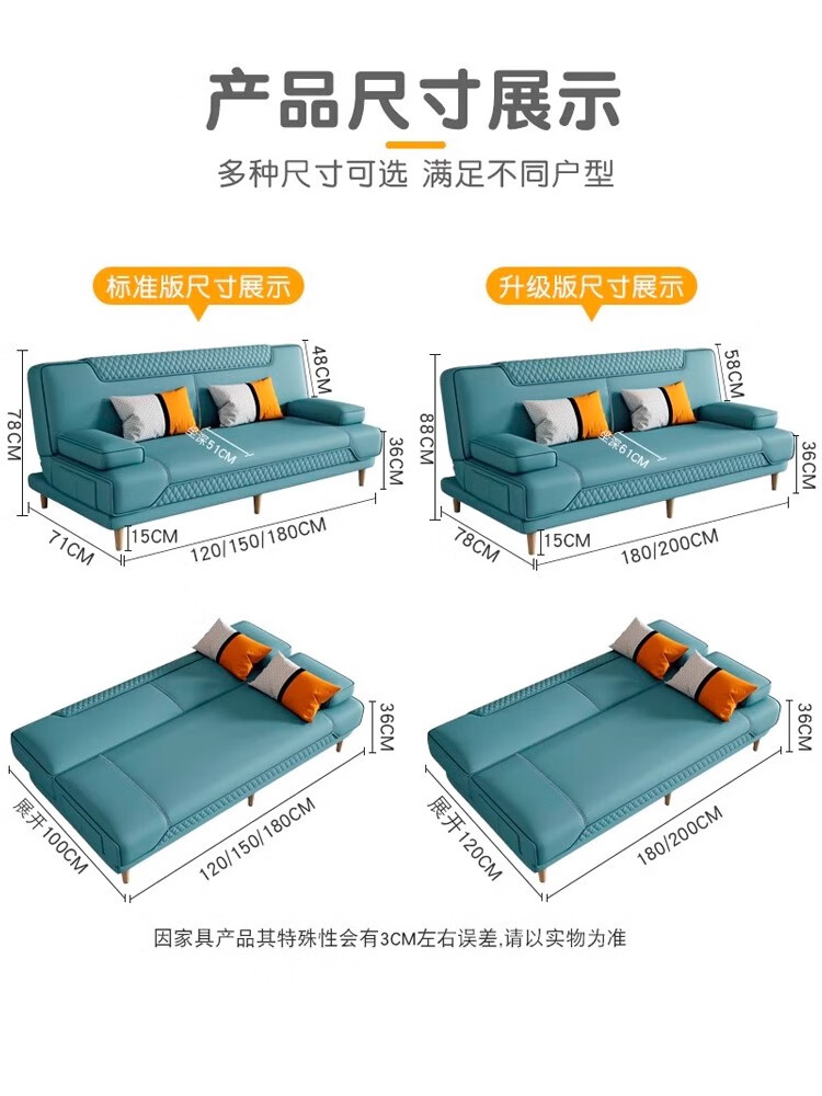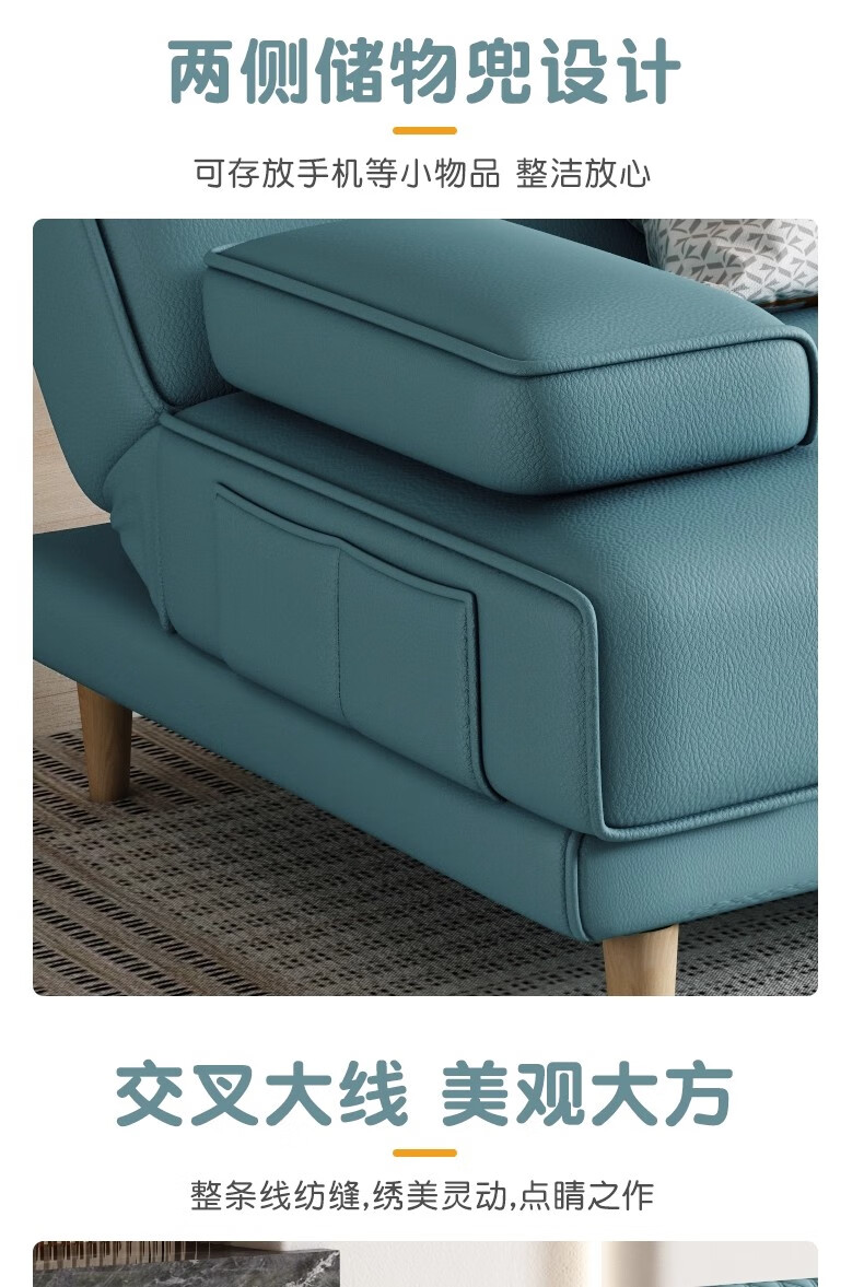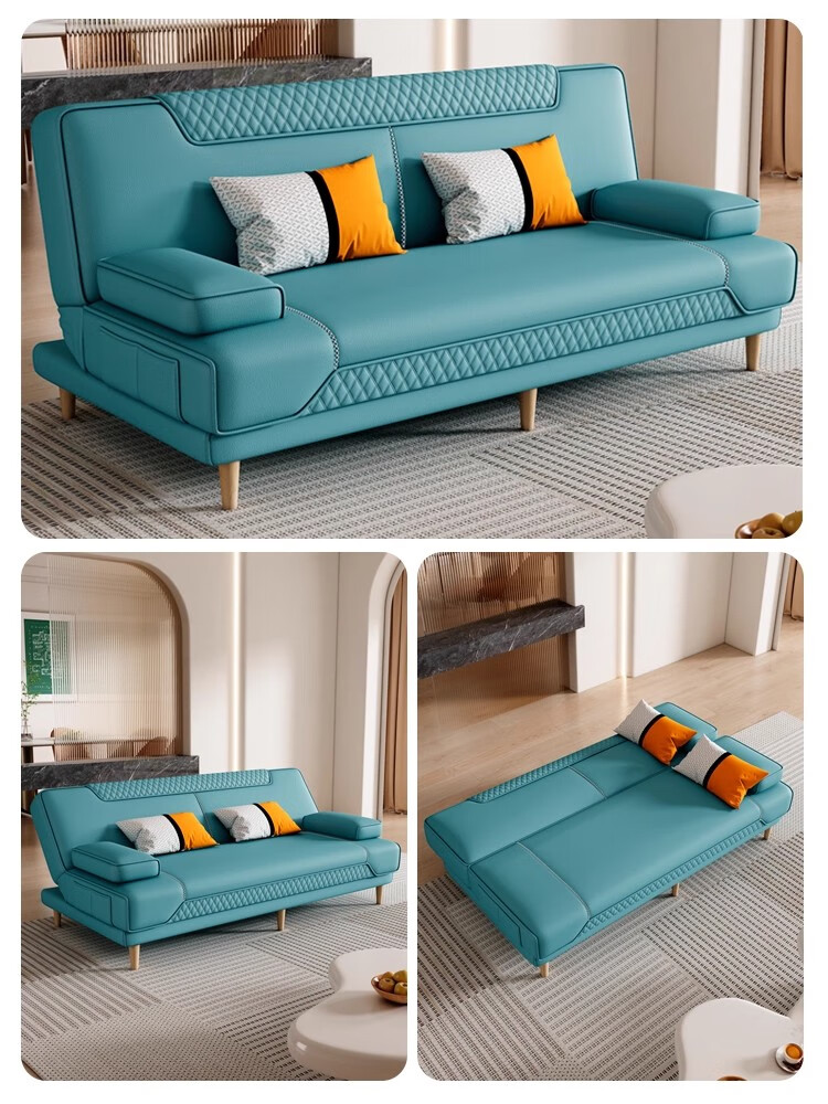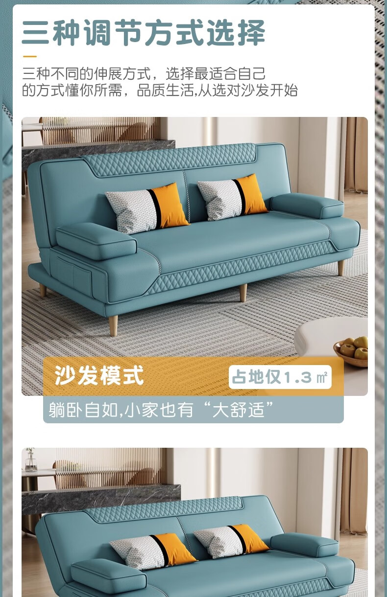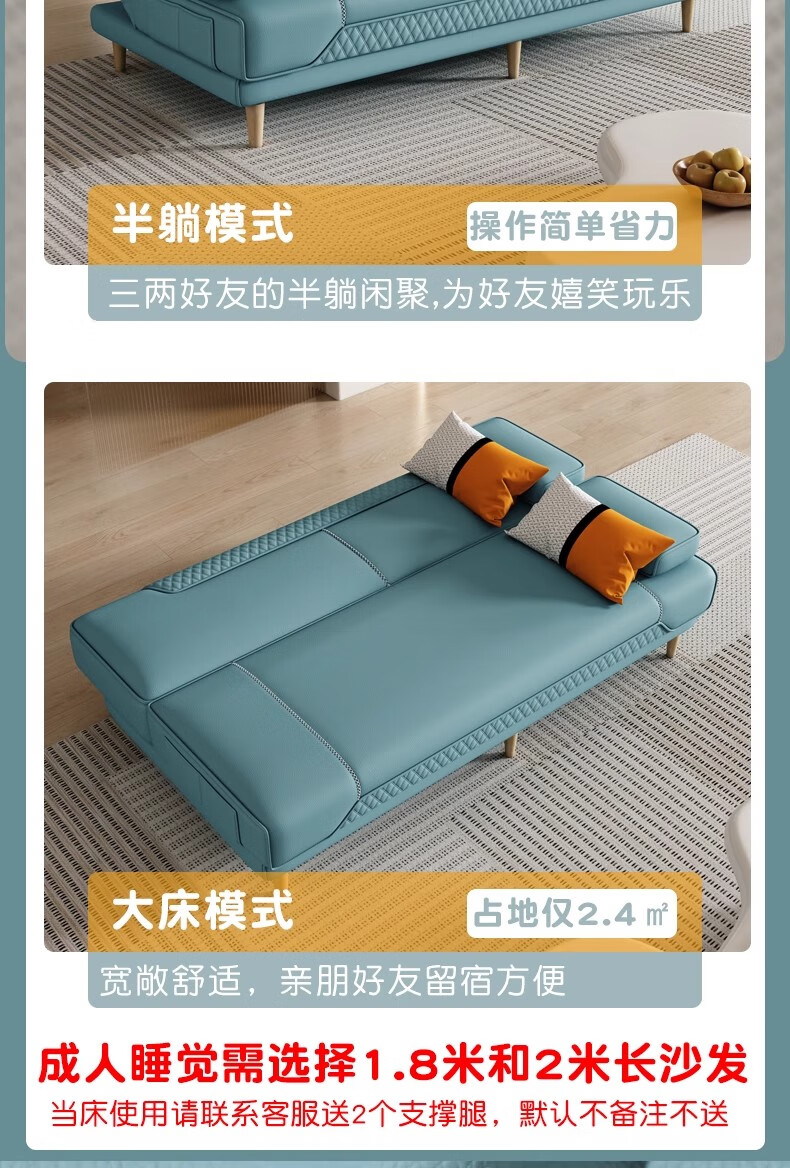 清茵阁2025新款现代简约多功能折叠沙发床一体两用客厅小户型懒人沙发 【新款猫爪皮+实木脚】米黄 【抑菌乳胶款】升级款2*1.2米(2腰枕2扶手)
