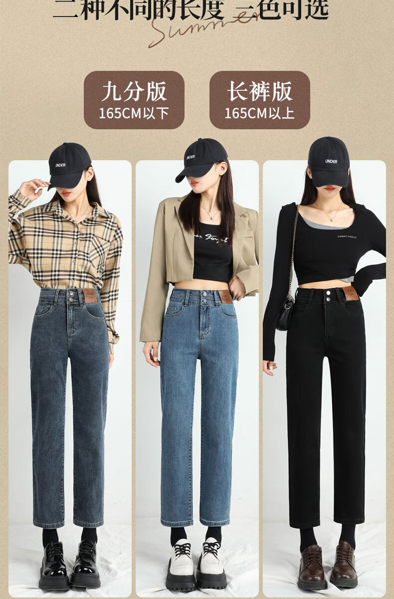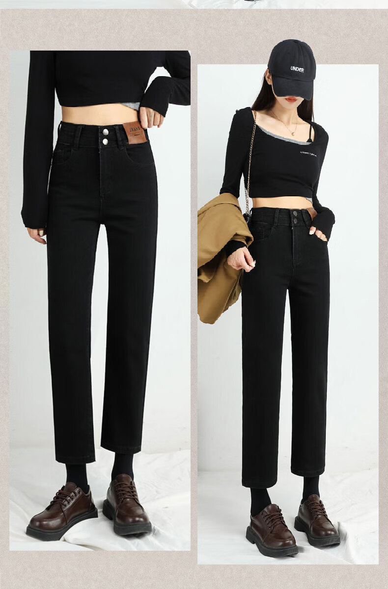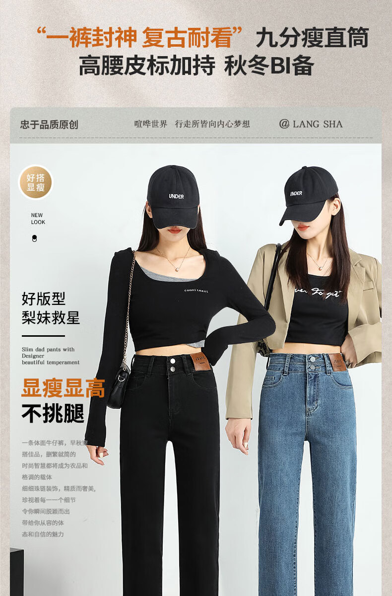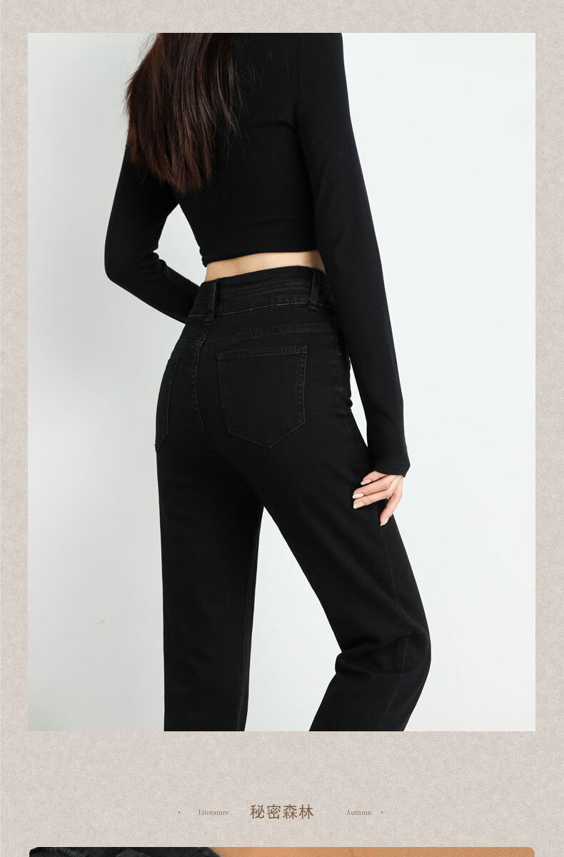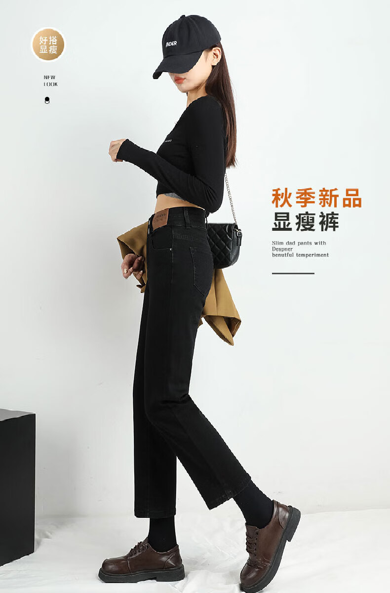 浪莎牛仔裤女春秋季高腰宽松垂感直筒裤女九分窄版烟管裤子女士牛仔裤 黑色 -春秋款 L (推荐110-125斤)